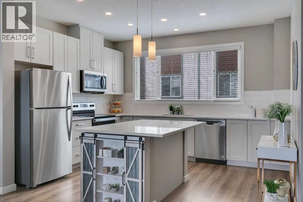DOUBLE ATTACHED GARAGE | OVER 1600 SQFT | FRONTING ONTO A PARK | IDEAL TOWNHOME LAYOUT | Welcome to 113 Copperstone Park SE, a beautiful 3 bedroom 2.5 bathroom townhome located in the quiet Copperfield Chalet complex, perfectly positioned fronting onto a park and just steps from Copperfieldâs walking trails and the Alkali wetlands, ideal for walking the dog or enjoying an evening stroll this summer. The main floor offers a bright open concept layout filled with natural light, featuring a spacious living room, a generous dining area, and a convenient 2pc bathroom. The large kitchen is designed for both everyday living and entertaining, complete with quartz countertops, stainless steel appliances, a large walk in pantry, and a central kitchen island with built in storage. The living area is centred around a beautiful electric fireplace and looks directly out to the park in front, creating a comfortable space for relaxing, movie nights, or spending time with friends and family. Upstairs you will find a large primary bedroom with a massive walk in closet and a 4pc ensuite, again overlooking the greenspace out front. This level also features 2 additional well sized bedrooms that work perfectly for kids, guests, or a home office, along with another full 4pc bathroom. The lower level includes the laundry and mechanical room, as well as a large unfinished space with a big window that offers plenty of storage or potential for future development, along with direct access to the double attached garage which completes this ideal townhome layout. Out front you will also find a private patio equipped with a gas line and fronting onto the greenspace, a perfect spot for summer barbecues and relaxing outdoors. Located in the heart of Copperfield, you are within walking distance to schools, parks, and playgrounds, with shopping, groceries, and transit just minutes away. This immaculate townhome is a perfect option for first time buyers, young professionals, investors, or anyone looki ng for low maintenance living in a great location. Please book your private showing today. (id:27476)