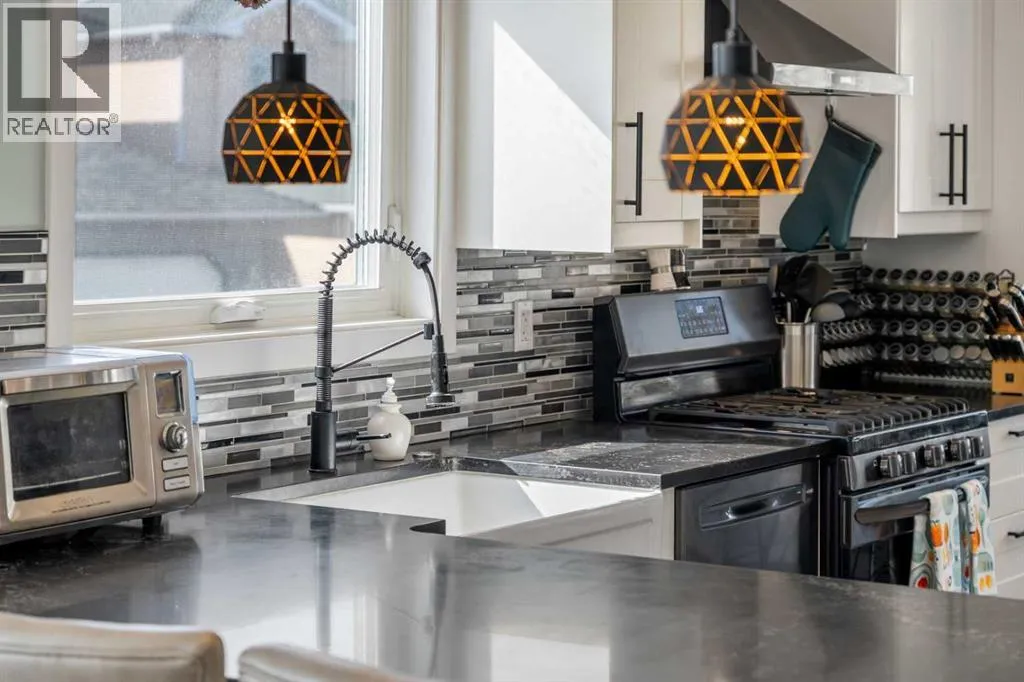 Directly across the street from Carburn ParkâCalgaryâs standout riverfront escape with instant access to the Bow Riverâthis is where everyday life feels like a weekend getaway. Bring the fishing rods, pack a picnic and step into the outdoors whenever you feel like it. Set on a large corner lot in a quiet, established cul-de-sac, this recently updated, fully-developed bilevel offers 4 bedrooms + den, 3 bathrooms, and a double attached garageâwith upgrades that make it truly move-in ready. Highlights include new windows (98%) and shingles (2025), new siding (2017), plus a new furnace (2017) and A/C (2016). The main floor has been transformed into a bright open-concept layout with an updated kitchen, countertops, backsplash, appliances, and flooringâplus plenty more. The spacious primary suite features a 4-piece en-suite, walk-in closet, and a built-in vanity desk. Downstairs, the fun continues with a welcoming recreation space complete with a 100â theatre screen and surround sound, ready for movie marathons and game nights. Youâll also find two large bedrooms and a den thatâs ideal for a home office or flex space. Outside, the backyard is your personal retreatâenjoy the large deck with glass railing, then unwind in your own private spa setup with a hot tub inside a private gazebo. Perfectly located close to schools, parks and all your everyday conveniencesâenjoy quick access to shopping, great restaurants, and everything you need just minutes from home. View today, as special properties like this do go quickly! (id:27476)
