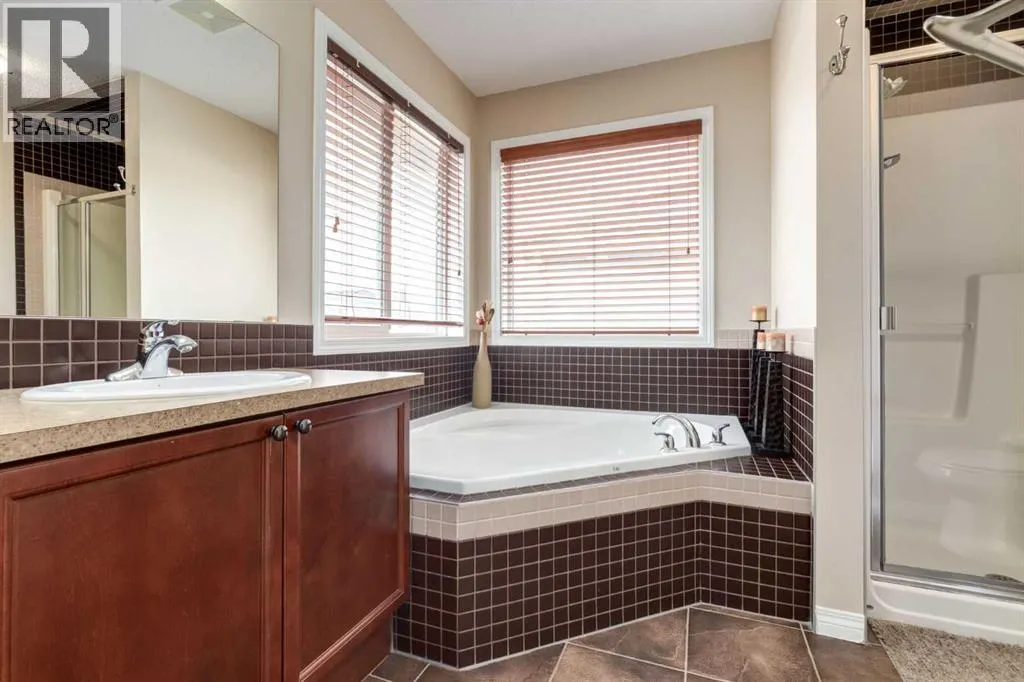 Beautiful 2 Storey with Bonus Room and fully developed basement. Gorgeous kitchen has granite countertops with raised breakfast bar, loads of stained maple cabinets, a corner pantry with upgraded wire shelving, sleek tile backsplash and black appliances. Upgraded Tiger hardwood flooring throughout the main floor. Complimenting the flooring and cabinets are Hunter Douglas wood blinds on the main floor and upstairs. The sunroom overlooks the big fenced back yard with huge composite deck to watch the sun go down. Upstairs is a fantastic bonus room flooded in light, built-in wall unit and TV space. The Master retreat has a large walk-in closet and the ensuite boasts a separate shower with custom tiling to the ceiling and soaker tub. Two more generous sized bedrooms with an upstairs laundry room and a place to watch your children work on the computer. The basement has extra soundproofing, 2 more bedrooms and a walk-in shower bathroom, family room and flex/hobby room. Original Owner is selling this beautiful home in a whisper quiet location. (id:27476)