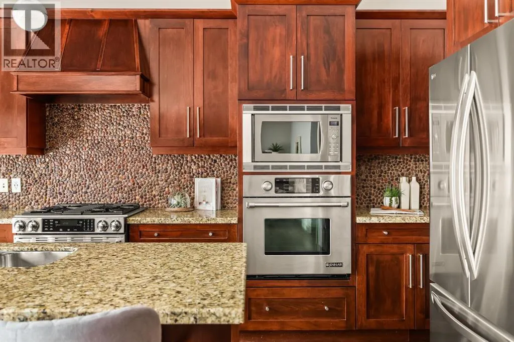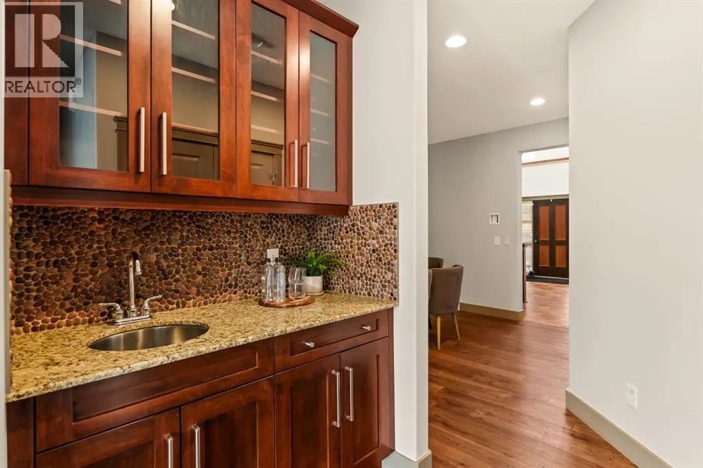 Ideally located on a CUL DE SAC, an enclave of luxury homes, tucked away on the east side of West Springs â PRIVATE & QUIET. Follow the path system directly to St Joan of Arc School, a short walk to Calgary French Intâl, 85th Street West and its growing variety of shops and restaurants⦠WEST SPRINGS IS THE CHARM! This two storey presents 4480 sq ft of living space over three levels, 3 beds and a Bonus Room up, a fully developed basement with 2 additional beds, 3.5 baths AND⦠an OVER-SIZED, HEATED 3 car garage. This home sits on a 6300 sq ft lot, with a SUNNY & BRIGHT western exposure in back â FANTASTIC! On arrival you will be struck by the stone façade and aggregate drive â STRIKING. Upon entering you will enjoy the wide plank hardwoods running through the main, 9 foot ceilings, 18 feet at the entrance, extensive millwork and stone accents throughout. The Great Room in back, with its warm western exposure draws you through. The kitchen features granite counters, a large center island/breakfast bar, a Jenn-Air appliance package including gas range and wall oven and walk-through Butlerâs pantry leading to a proper Dining Room. You will also find a private home office tucked away with a custom desk and shelving, striking millwork and a double sided fireplace. Upstairs, the Bonus Room is a welcome sight⦠a large open space where the family will gather, a gas fireplace and the beautiful millwork continues here. The Primary Retreat enjoys a 5pc en suite with heated floors, a steam shower, jetted tub and large walk-in closet. The two additional beds up share a 5pc Jack & Jill en suite, each with walk-in closets. The lower level has been fully developed offering an open Family/Rec Room, another fireplace, wet bar and two additional beds, sharing a full bath. This home offers a wide variety of inviting spaces, inside & out, a home family and friends will feel welcome. PLUSâ¦. a generous west face rear yard, expansive deck & patio and wired for your future hot tub! (id:27476)
