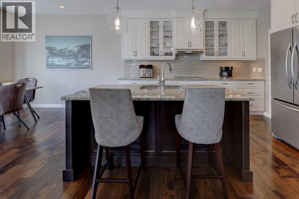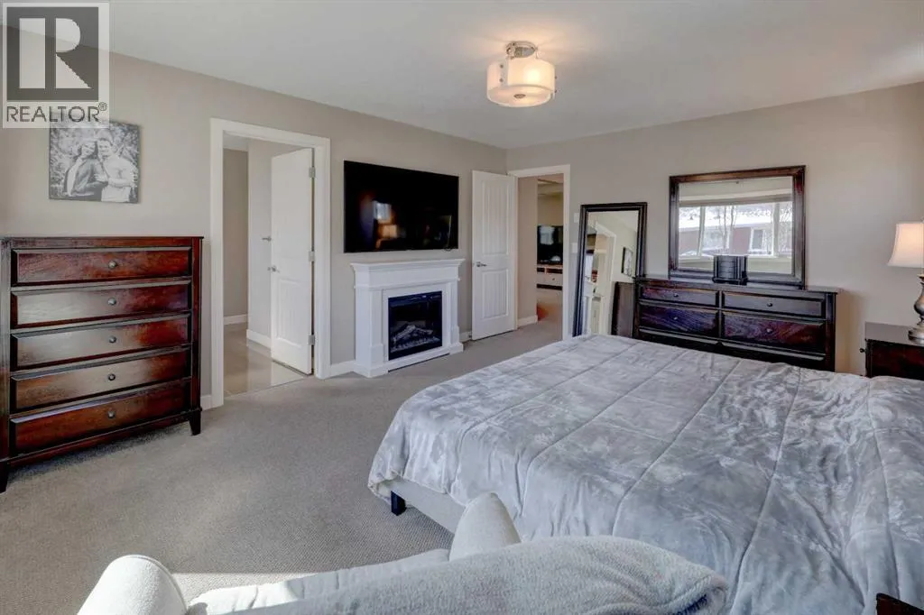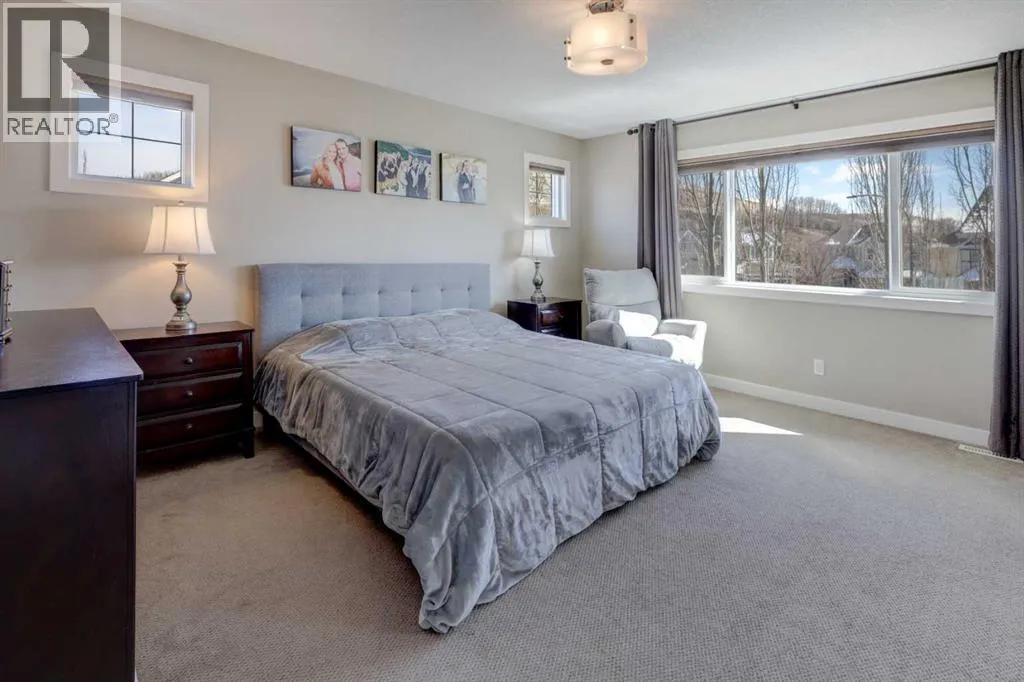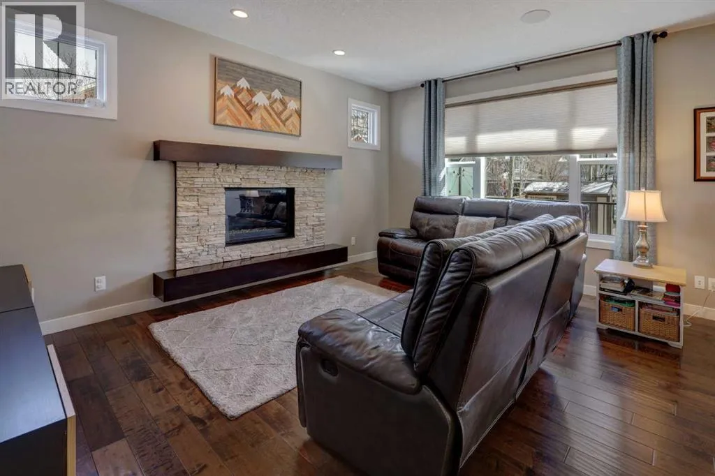 Beautiful Cedarglen-built home perfectly situated on a corner lot in sought-after Cranston Riverstone. From the moment you step inside, youâre welcomed by a spacious entry, 9-foot ceilings, & rich hardwood flooring that flows throughout the main level. The stylish kitchen is designed for both everyday living & entertaining, featuring two-tone cabinetry, granite countertops, a massive island with eating bar, & a walk-through pantry leading to the mudroom. Imagine family dinners & fun dinner parties in the dining area! The bright & inviting living room is anchored by a cozy gas fireplace, while the main floor office with double French doors & built-in workspace makes working from home effortless. Upstairs, the impressive bonus room with coved ceiling offers the perfect place to unwind. The primary suite is a true retreat, complete with a dream ensuite & a large walk-in closet, while two additional bedrooms provide plenty of space for family or guests & the upper laundry is very efficient. The fully finished basement adds incredible versatility with a large open area ideal for a rec room, gym, or games space, plus a bathroom rough-in & 2 large egress windows for future development. Step outside to your private backyard oasis, featuring mature trees, a large deck with privacy glass, retractable awning, gas BBQ hookup, & a spacious shedâperfect for relaxing or entertaining all summer long. All this just steps to a beautiful network of nature walking paths!! Welcome home!!! (id:27476)