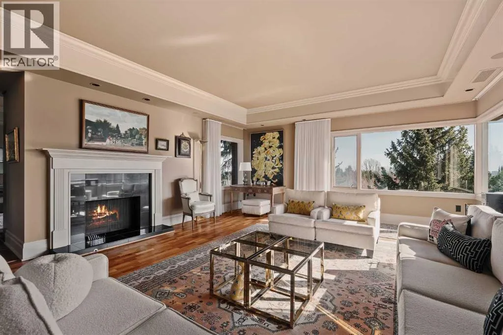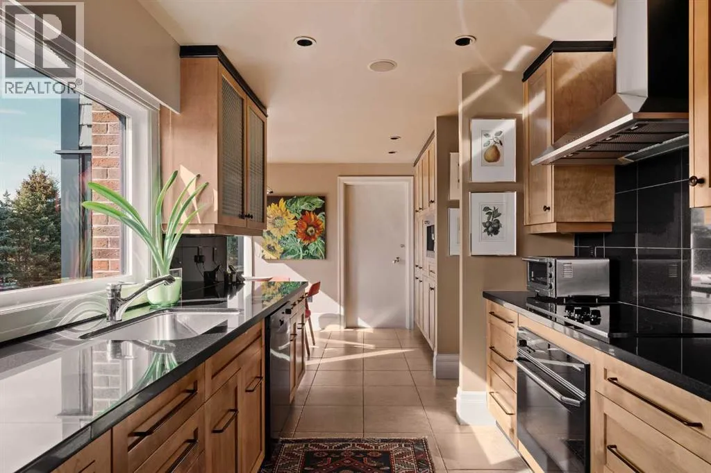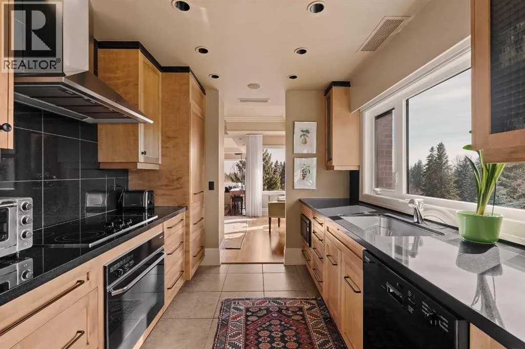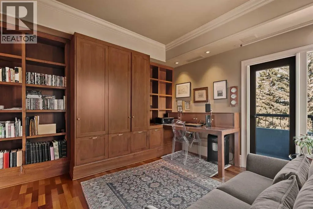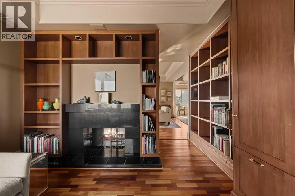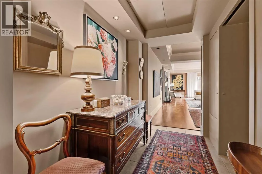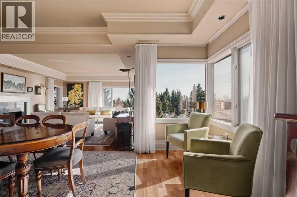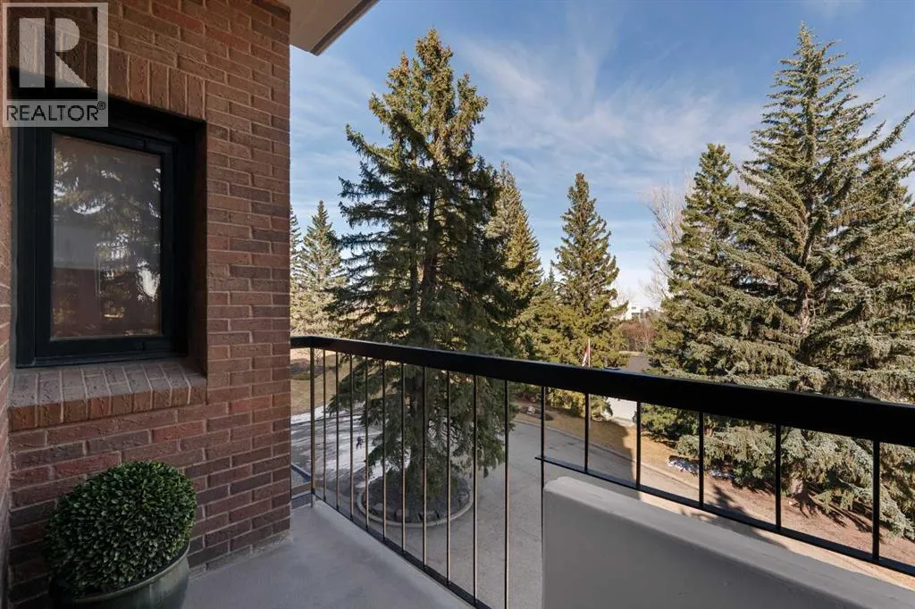 Here is your opportunity to own in the iconic Covenant House in Eagle Ridgeâan exclusive, boutique building of just 10 residences and one of Calgaryâs most prestigious and tightly held condominium addresses. Rarely does a home of this calibre become available. Offering over 2,000 sq.ft. of beautifully updated living space, this exceptional residence welcomes you with a private elevator opening directly into your suite and a gracious foyer beyond. Expansive windows flood the home with natural light, highlighting the refined finishes throughout. Thoughtfully renovated over the years, the home features hardwood floors, coffered ceilings, crown moulding, custom built-ins, and curated designer detailsâshowcasing true pride of ownership. The living room is both elegant and inviting, anchored by a double-sided fireplace shared with a private office that opens onto its own balcony. A generous dining area flows seamlessly from the living space, ideal for entertaining. The chefâs kitchen is well-appointed with top-tier appliances, including a built-in coffee maker, designed for both everyday living and hosting. The primary retreat is a true sanctuary, complete with a spa-inspired ensuite and walk-in closet. A well-sized second bedroom and full bath complete the interior. Additional features include two titled parking stalls, a large storage locker, and a self-contained guest suite. The location is exceptionalâjust minutes to the pathways of Heritage Park and Glenmore Reservoir, with convenient access to Glenmore Landing, top-rated schools, Rockyview Hospital, and major routes including 14th Street, Heritage Drive, and Glenmore Trail. A rare offering in one of Calgaryâs most exclusive buildings. (id:27476)