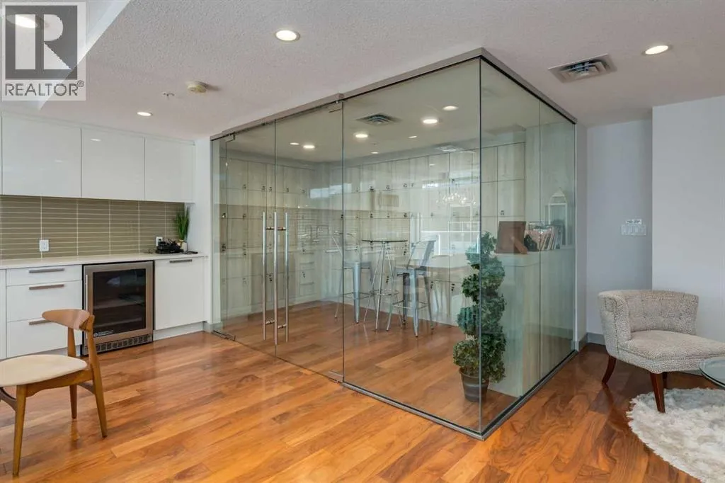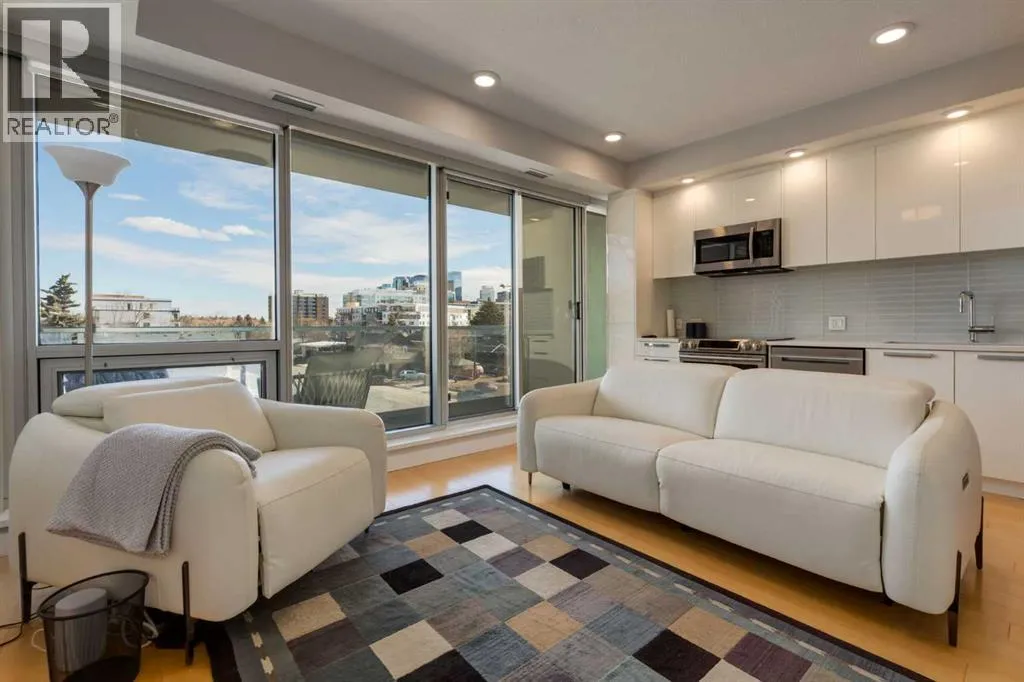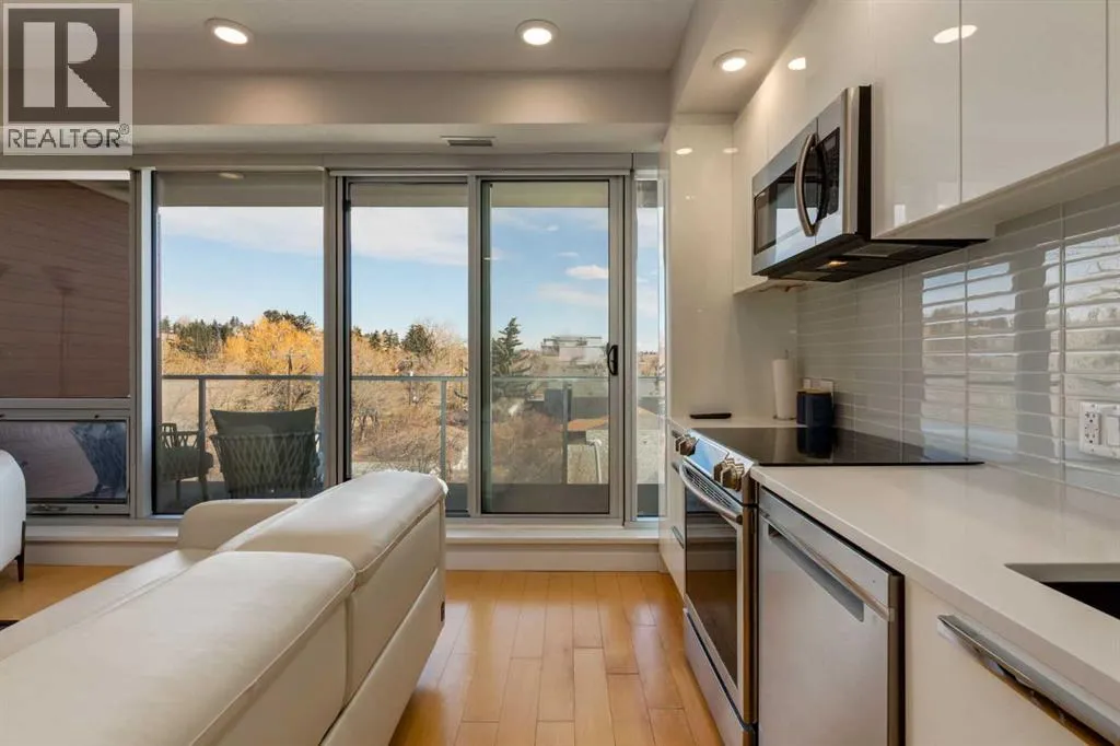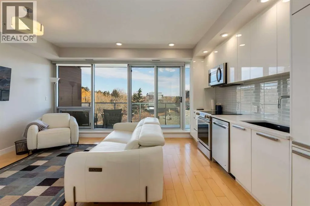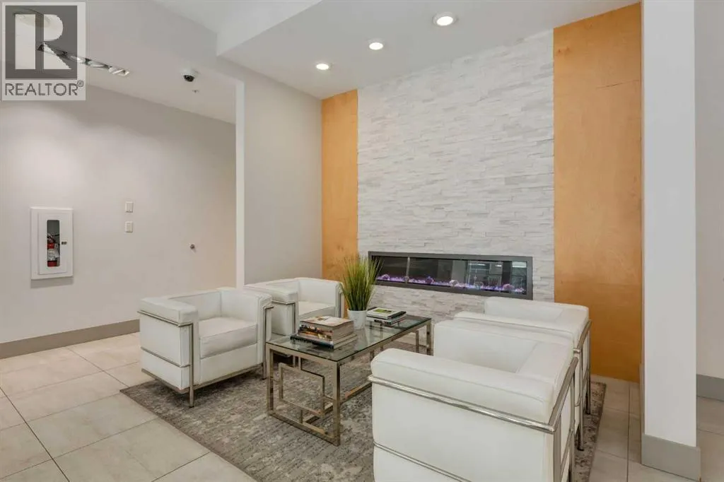 This concrete-built residence offers the perfect blend of quiet, quality construction and refined inner-city living. Thoughtfully designed one-bedroom unit provides flexible, low-maintenance living in one of Calgaryâs most vibrant communities. When youâre living in the village, living efficiently comes naturallyâand with The Ezraâs beautifully appointed resident lounge, youâll always have the perfect space to host and entertain.From the moment you enter, the building impresses with its elegant, secure foyer and upscale finishings throughout. Inside the unit, that same level of quality continues with natural maple hardwood floors, sleek white walls, quartz countertops, high-gloss cabinetry, and modern fixtures.The kitchen is both stylish and functional, offering efficient storage and quality appliances. A full east-facing wall of windows fills the space with natural morning light and opens onto a spacious balcony overlooking Riley Park and downtownâcomplete with a gas BBQ line for effortless outdoor living.Comfort is elevated with in-suite laundry, in-tile heated bathroom floors, and in-unit air conditioning controlled by a Nest thermostat, allowing you to tailor your environment year-round.An intelligently designed, partially obscured glass wall separates the bedroom, maintaining an open, airy feel while providing privacy. A full bathroom completes the space.Residents enjoy access to exceptional amenities, including a stunning second-level lounge with a fully equipped kitchen, designer furnishings, and a wine room with optional storageâperfect for hosting or relaxing. The adjacent West building offers a well-equipped fitness centre, and the heated underground parkade connects both buildings for seamless access in every season.Additional features include underground visitor parking, secure bike storage, a private storage locker, and pet-friendly living.With Riley Park just outside your door, enjoy year-round access to green space, gardens, and walking p aths. Youâre steps to SAIT, the LRT, river pathways, and all the shops, restaurants, and lifestyle amenities that make Kensington one of Calgaryâs most desirableâand walkableâcommunities. (id:27476)