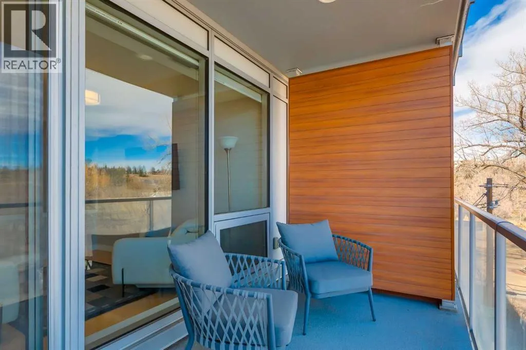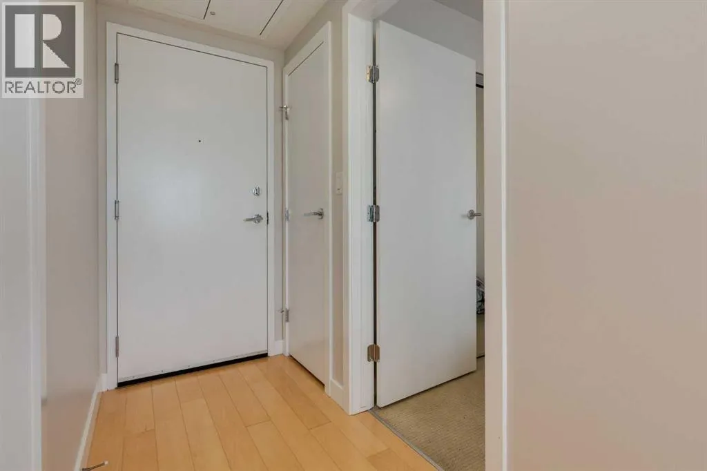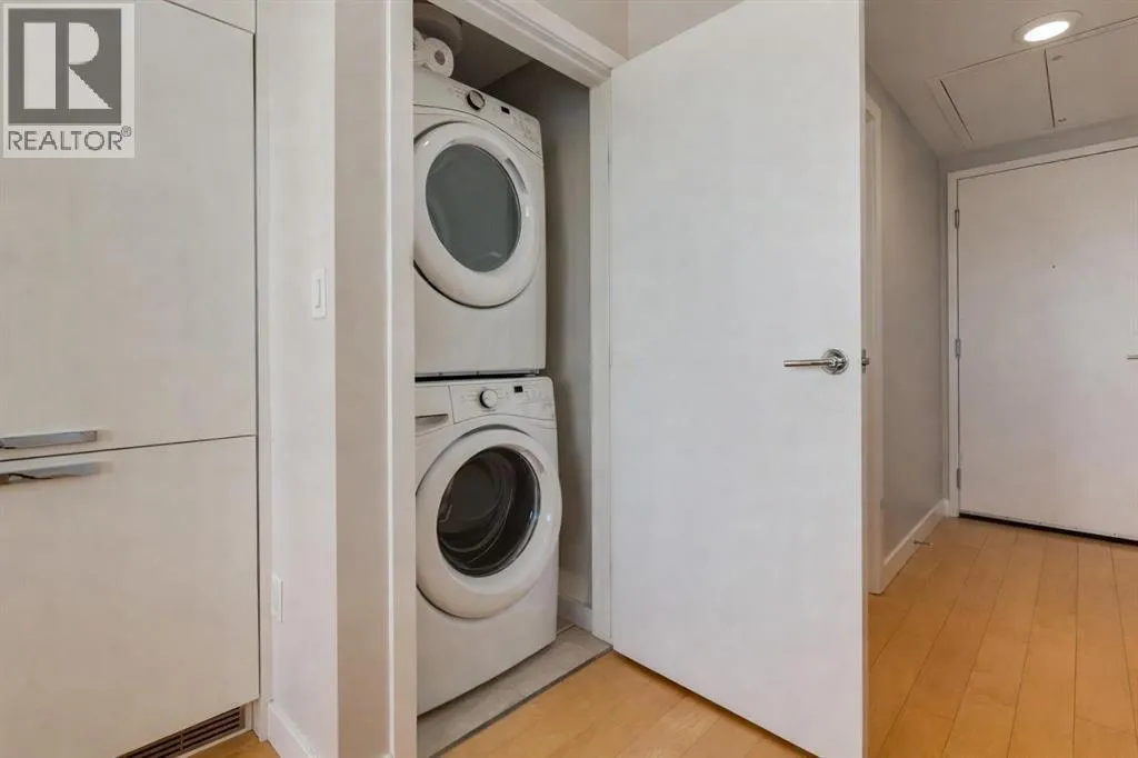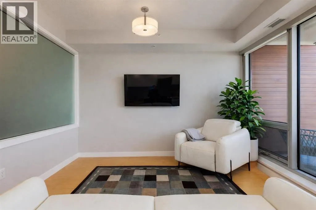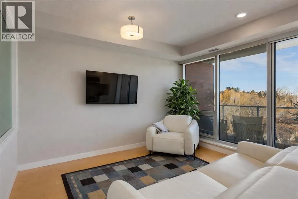 This concrete-built residence offers the perfect blend of quiet, quality construction and refined inner-city living. Thoughtfully designed one-bedroom unit provides flexible, low-maintenance living in one of Calgaryâs most vibrant communities. When youâre living in the village, living efficiently comes naturallyâand with The Ezraâs beautifully appointed resident lounge, youâll always have the perfect space to host and entertain.From the moment you enter, the building impresses with its elegant, secure foyer and upscale finishings throughout. Inside the unit, that same level of quality continues with natural maple hardwood floors, sleek white walls, quartz countertops, high-gloss cabinetry, and modern fixtures.The kitchen is both stylish and functional, offering efficient storage and quality appliances. A full east-facing wall of windows fills the space with natural morning light and opens onto a spacious balcony overlooking Riley Park and downtownâcomplete with a gas BBQ line for effortless outdoor living.Comfort is elevated with in-suite laundry, in-tile heated bathroom floors, and in-unit air conditioning controlled by a Nest thermostat, allowing you to tailor your environment year-round.An intelligently designed, partially obscured glass wall separates the bedroom, maintaining an open, airy feel while providing privacy. A full bathroom completes the space.Residents enjoy access to exceptional amenities, including a stunning second-level lounge with a fully equipped kitchen, designer furnishings, and a wine room with optional storageâperfect for hosting or relaxing. The adjacent West building offers a well-equipped fitness centre, and the heated underground parkade connects both buildings for seamless access in every season.Additional features include underground visitor parking, secure bike storage, a private storage locker, and pet-friendly living.With Riley Park just outside your door, enjoy year-round access to green space, gardens, and walking p aths. Youâre steps to SAIT, the LRT, river pathways, and all the shops, restaurants, and lifestyle amenities that make Kensington one of Calgaryâs most desirableâand walkableâcommunities. (id:27476)