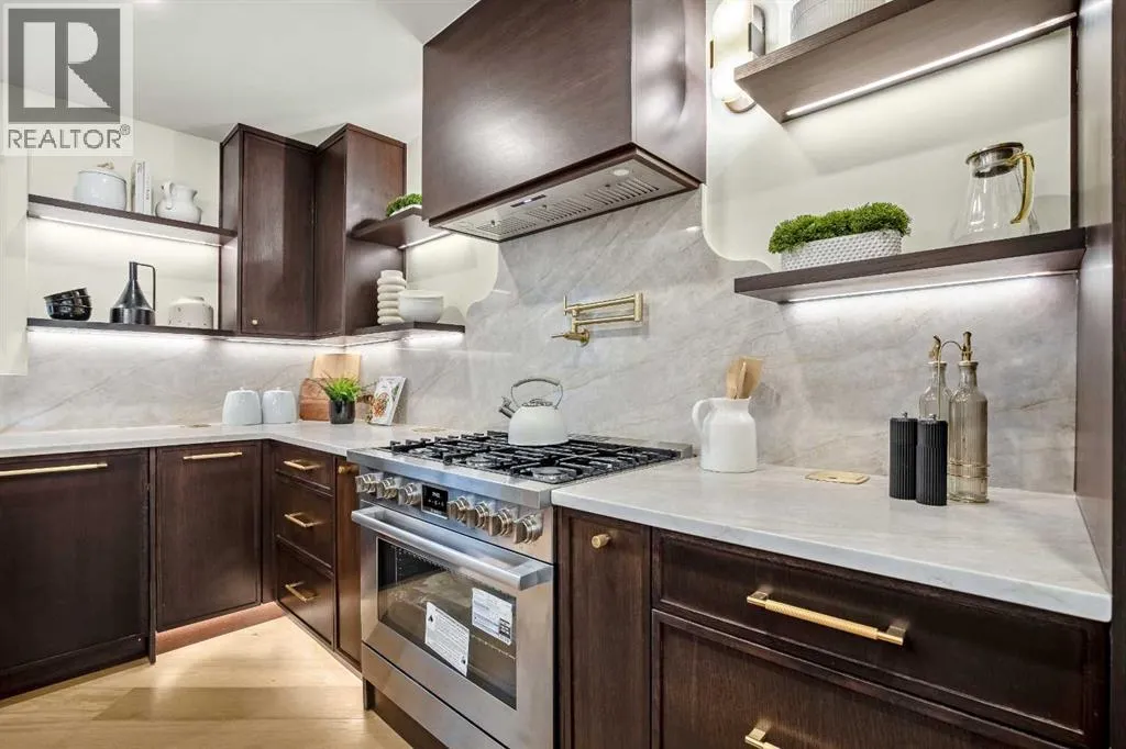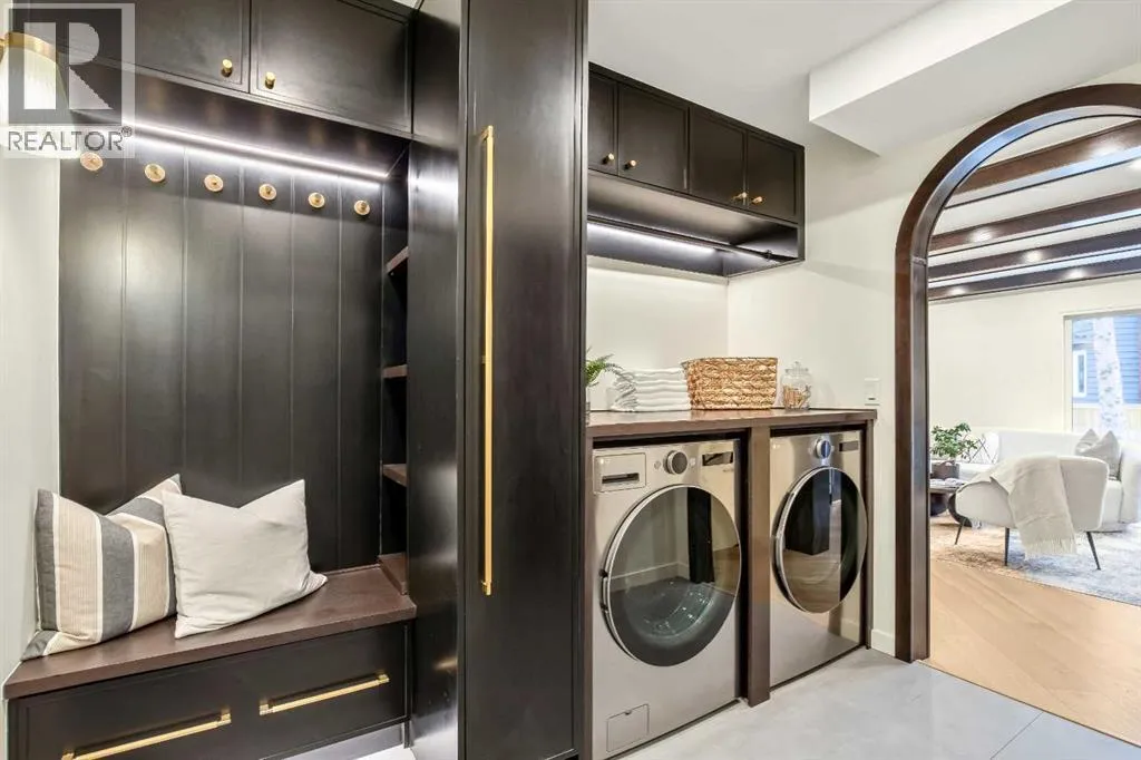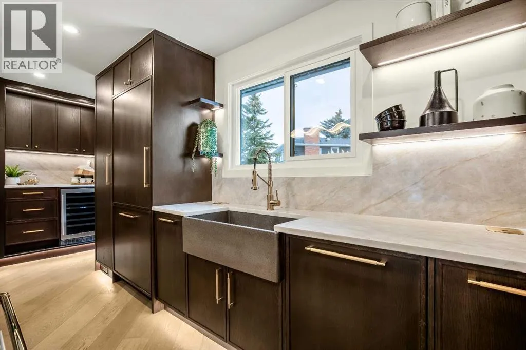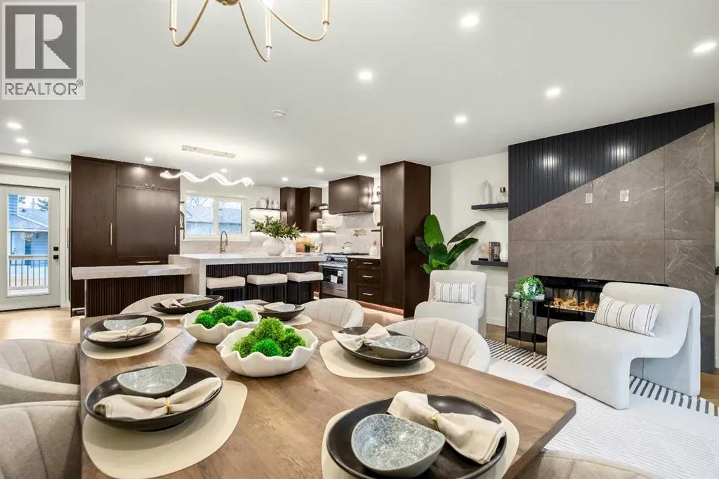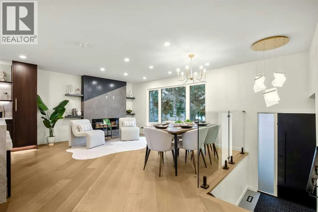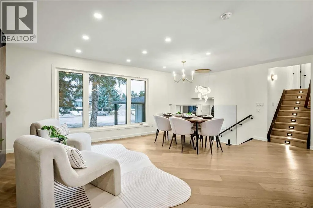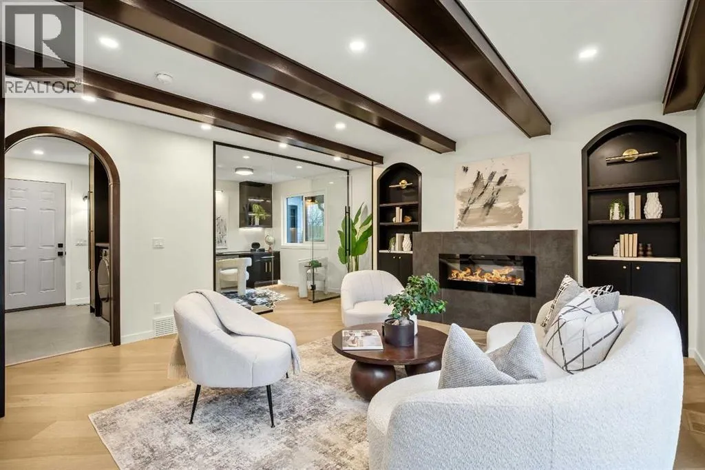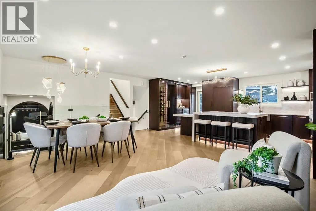 OPEN HOUSE: SATURDAY, APRIL 4TH: 12-4 PM | Welcome to Eleanorâan elegant, elevated, and exceptionally well-crafted home in the sought-after community of Oakridge. A fully renovated down to the studs home with over $600,000+ INVESTED (including all-new plumbing, electrical, and HVAC runs completed with all required city permits). Nestled on a quiet, tree-lined street, this home offers four bedrooms, a dedicated office and 2,366+ sq ft of living space, and an additional 500+ sq ft of crawl-space storage (not included in total living space). Situated on an expansive ~7,000 sq ft lot, only minutes away from South Glenmore Park, scenic pathways, and steps from Louis Riel School, Oakridge Community Centre, Stoney Trail, and more. The exterior of the home is striking yet inviting, featuring Hardie and Smart Panel siding, stained cedar soffits, new roofing and eavestroughs, and meticulously designed landscaping. The entry is equally refined, with a cedar-covered patio, garden-ready planters, and a stunning entrance inviting you home. Inside, sunlight fills every room through new triple-pane windows, white oak floors, curved oak arches, columns, beams, and white-oak butcher block shelving throughout. The main level features a Nordic-inspired kitchen with Taj Mahal counters, chocolate coloured white oak cabinetry, dovetail drawers and fluted detailing, a ~10-foot island with drop-down seating, a built-in coffee bar, and a glass wine display. Built-in appliances include a Fisher & Paykel fridge, freezer, and dishwasher, a Bosch 6-burner range, ZLINE convection oven, and Silhouette dual-temp wine fridge. The kitchen connects to the rear deck, creating a seamless transition between indoor and outdoor living. On the same level is the formal dining room and first living area, centred around a striking fireplace feature wall. Steps down, the main living room boasts dark oak ceiling beams, a second fireplace framed by custom arched cabinetry, a refined wet bar, and access to the bac kyard patio. This level also includes a glass-enclosed office, powder room, laundry, mudroom, and access to the finished oversized double car garage with epoxy floors and EV and garage heater rough-ins. Upstairs, the primary is a serene retreat featuring a fluted soaker tub, oversized double shower, champagne bronze fixtures, a walk-in closet, and a built-in makeup vanity. Two additional well-sized bedrooms with built-in closets and a beautifully finished full bath complete the level. The basement includes a rec room/flex room, an additional fourth bedroom, a three-piece bath with spa-calibre shower, cedar sauna and ample storage. Heated floors and champagne bronze fixtures are featured in all bathrooms. Thereâs new batt and blow-in insulation, a tankless water heater, central A/C, sump pump, solid core doors, smart home features, camera CAT-6 roughed-in, new drywall and a BBQ gas line on the deck. Eleanor embodies refined design and understated luxuryâa rare opportunity to make her your home! (id:27476)
