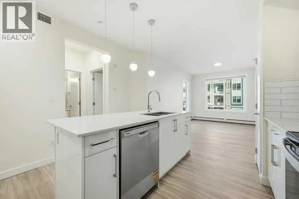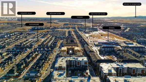 Welcome To This Brand-New, Move-In-Ready End Unit 1 Bedroom + Den, 1 Bathroom Condo Located In The Vibrant And Rapidly Growing Community Of Skyview Ranch In NE Calgary. Thoughtfully Designed For Modern Living, This Bright And Airy Home Features 9-Foot Ceilings And Expansive Windows That Fill The Open-Concept Layout With Natural Light. The Spacious Den, Complete With A Large Window, Offers Excellent Flexibility And Can Easily Be Converted Into A Second Bedroom With The Addition Of A Door. Wide-Plank Luxury Vinyl Flooring And Quartz Countertops Throughout Provide A Sleek, Contemporary Finish, While The Fully Upgraded Kitchen Showcases Stainless Steel Appliances, An Over-The-Range Microwave, Soft-Close Cabinetry, A Pantry, Quartz Countertops, And A Convenient Breakfast BarâPerfect For Casual Dining, Working From Home, Or Entertaining. The Kitchen Flows Seamlessly Into The Living And Dining Areas, Creating A Comfortable And Inviting Space. This End Unit Offers Generously Sized Rooms And A Modern 4-Piece Bathroom Featuring Quartz Countertops And Quality Finishes, Along With In-Suite Laundry, Upgraded Designer Window Coverings, And A Large Private Balcony Complete With A BBQ Gas LineâIdeal For Outdoor Relaxation And Entertaining. The Property Includes Titled Underground Parking And A Titled Storage Locker, Providing Added Convenience And Value. Located In A Newly Constructed Building, Residents Benefit From Low-Maintenance Living With Close Proximity To Shopping, Schools, Public Transit, Major Amenities, Calgary International Airport, And Quick Access To Stoney Trail For Easy Commuting Throughout The City, Along With Secure Underground Bike Storage. Ideal For First-Time Buyers, Professionals, Or Investors, This Turnkey Condo Offers An Excellent Opportunity To Own In One Of Calgaryâs Most Desirable And Growing Communities, Providing A Smart Alternative To Renting While Building Equity In A Modern And Well-Connected Location.Please Note: Property Taxes Have Not Yet Been A ssessed And Additional Units Are AvailableâContact Listing Agent For More Information. (id:27476)
