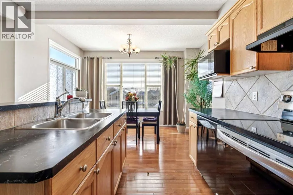 Located in a family friendly Cul-De-Sac, this home effortlessly blends comfort, style, and everyday functionality in the highly sought-after community of Royal Oak. This beautifully maintained detached 2-storey welcomes you with an airy, spacious layout and timeless hardwood flooring that gracefully flows throughout the main level, setting the tone for refined yet relaxed living. At the heart of the home, the inviting living room beckons with a cozy gas fireplaceâperfect for curling up on crisp evenings or gathering with loved ones for unforgettable moments. The kitchen is thoughtfully designed to balance charm and practicality, offering abundant storage and workspace to inspire everything from casual breakfasts to culinary creations. Just steps away, the main-level laundry room with a convenient sink adds a touch of everyday luxury, making life that much easier.Upstairs, discover three well-appointed bedrooms that provide comfort and privacy for the whole family. The generously sized primary retreat is a true haven, complete with a walk-in closet and a 4-piece ensuite. An additional 4-piece bathroom ensures ease and convenience for family members or guests alike. Air Conditioning & Central Vacuum are bonus features you will love!The unfinished basement is a blank canvas awaiting your visionâimagine a stylish home theatre, a personal gym, or expanded living space tailored to your lifestyle. Outdoors, a large backyard with a welcoming deck sets the stage for summer barbecues, morning coffees, or evenings under the stars. An attached double garage completes this exceptional home, offering both security and ample storage.This is more than a houseâitâs a place to grow, unwind, and create lasting memories. Furthermore, it's just a short drive to Royal Oak School & William D.Pratt School, Shane Homes YMCA At Rocky Ridge & Royal Shopping Centre. (id:27476)