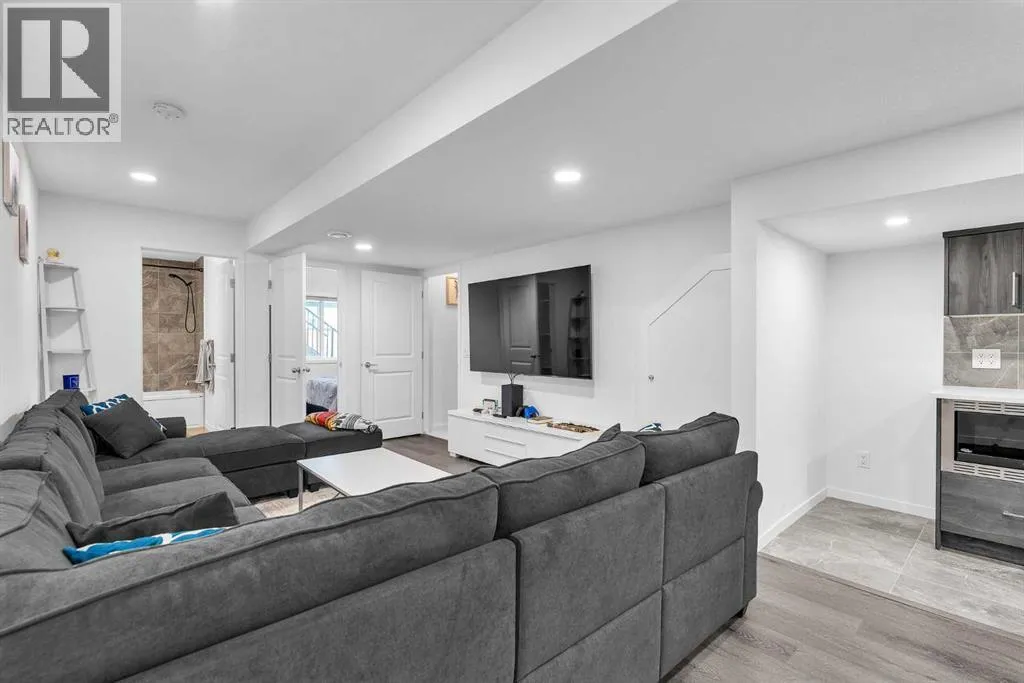 **** OPEN HOUSE ON APRIL 05 FROM 1.00PM to 4.00PM***Welcome to your dream home in Glacier Ridge! This beautiful duplex with a finished basement and detached double garage offers over 2,200 sq. ft. of developed living space in one of NW Calgaryâs most desirable communities. Step inside and be greeted by 9â ceilings, 8â doors, and luxury vinyl plank flooring throughout the main level. The open-concept layout includes a versatile flex spaceâperfect for a reading nook, home office, or small formal living areaâplus a spacious dining nook, stunning kitchen, and inviting great room. The chef-inspired kitchen features quartz countertops, white soft-close cabinetry, a bold black island, ample pot lighting, and upgraded high-end appliances. The great room is ideal for entertaining family and friends, with direct access to the completed deck with privacy screen via the convenient mudroom. Upstairs, youâll find three bedrooms, two bathrooms, and a dedicated laundry room with built-in linen storage. The primary suite includes a walk-in closet and a private ensuite with a walk-in shower, while both additional bedrooms also feature walk-in closets. The professionally finished basement offers even more living space, including a large rec room, wet bar, fourth bedroom, and full 4-piece bathâperfect for guests or family movie nights. Located close to shopping, restaurants, Costco, and Symons Valley Ranch Market, this home combines luxury, functionality, and location. (id:27476)