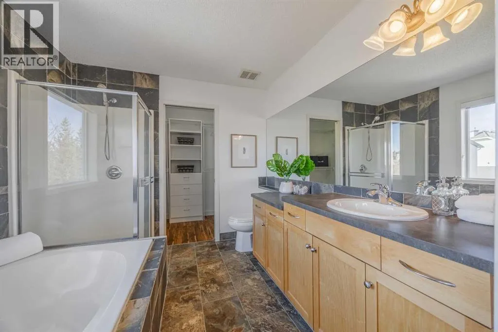 * Open house Saturday 11 a.m. - 4 p.m. & Sunday 2 - 4 p.m.* Backing onto a serene green space in the coveted neighbourhood of Springbank Hill, youâll find peaceful views and space to grow in this five-bedroom family home just minutes from incredible schools, walking and bike paths, protected nature parks, shopping, recreation and more. Enjoy coffee on your sunny front porch before walking in to be greeted by high ceilings and a lovely view through this bright, open and welcoming home. The main floor has been thoughtfully designed with two separate living rooms, one at the front of the home currently used as a quiet sitting room and the other, with a gas fireplace and large windows, serves as a gathering place for family and guests. This space has an open connection to the kitchen, dining room and outdoor area with views of the green space from every angle. Granite counters, plenty of storage, stainless steel appliances including a new fridge, a large pantry and sit-up island complete this highly functional, well-laid-out kitchen. Outdoor living is a natural extension of the home, with a spacious back deck and pretty yard that opens directly onto the green spaceâwhere deer and other wildlife are frequent visitors.Enjoy a main floor laundry room with additional storage, a two-piece powder room and tucked-away access to the lower level and double attached garage. Upstairs, four well-proportioned bedrooms provide space for family and guests. The primary suite is quietly positioned to take full advantage of the green space views, with no neighbours directly behind. Wake up to the sound of birds singing and enjoy a spacious ensuite with jetted tub (with a view) and a large walk-in closet.A bonus roomâused as a den, media room or reading spaceâalong with a built-in bookshelf and additional full bathroom, round out the upper level.The lower level offers a generous and versatile rec room with plush carpeting, pot lighting and additional storage, along with a fifth bedr oom and full bathroom with heated floors.Additional features include a newer hot water tank, central vacuum system and ample utility space.The desirable SW community of Springbank Hill offers easy access to the mountains, downtown and a wide array of lifestyle amenities, including golf courses, Westside Rec Centre, Griffith Woods Park and the shops and services of Aspen Landing, Westhills/Signal Hill and West Springs. (id:27476)
