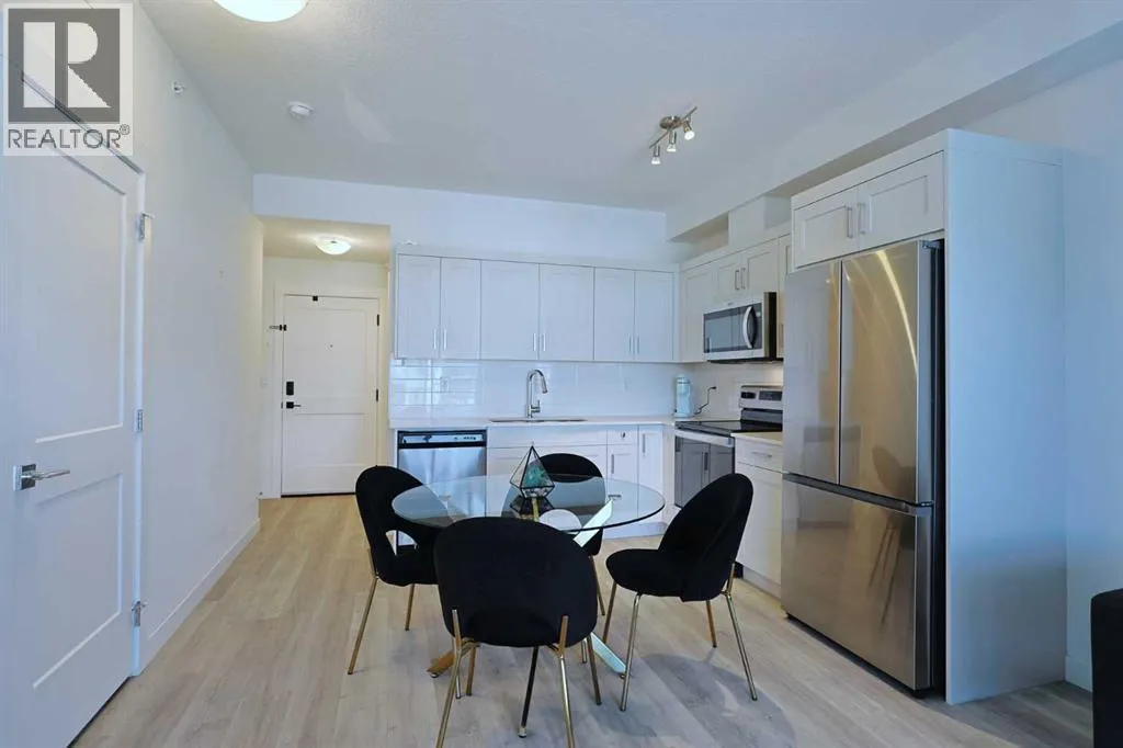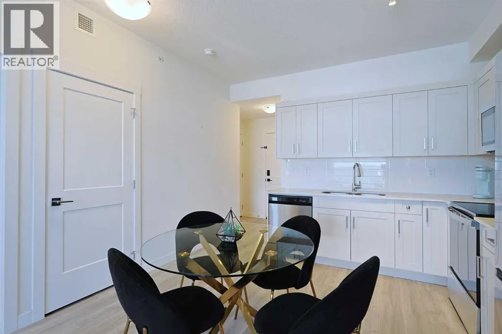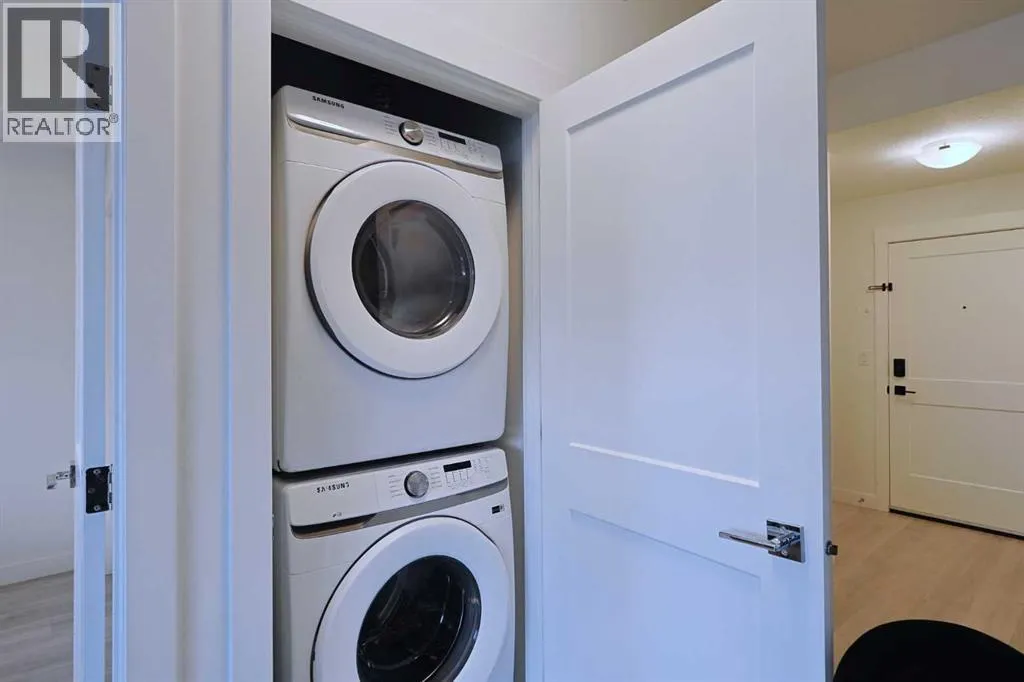 This is your chance to make your home in Logel Homesâ popular SAGE WALK project in this fantastic top floor condo just steps to the Sage Hill Crossing retail centre, winding ravine trails & bus stops. Available for quick possession, this terrific 2 bedroom / 1 bath home has high ceilings & vinyl plank floors, quartz countertops, covered balcony & titled underground parking for your exclusive use. Dynamite open concept floorplan featuring spacious living room with Northwest-facing balcony (complete with gas BBQ line), eat-in kitchen with quartz counters & soft-close cabinetry, Whirlpool stainless steel appliances & insuite laundry with stacking Samsung washer & dryer. Primary bedroom has a deep closet & Northwest-facing window. The 2nd bedroom easily doubles as a home office, & is across from the well-appointed full bathroom with tile floors & quartz counters. Your parking stall â with adjoining storage cage, has a prime location in the underground parkadeâ¦an end unit so just 1 neighbouring stall. Monthly maintenance fees in this pet-friendly (with board approval) complex include heat & water-sewer. The massive Sage Hill Crossing complex is walking distance from your front doorâ¦& features a Walmart Supercentre, TnT Supermarket, Dollarama, Bulk Barn, Value Village, Planet Fitness, bottle depot, restaurants, banks, medical clinics & so much more! With its quick access to major roadways (Shaganappi/Sarcee/Stoney/Deerfoot Trails, Symons Valley Parkway & Road), your new home is just minutes to regional parks & recreation, the airport, Cross Iron Mills, University of Calgary & downtown. (id:27476)