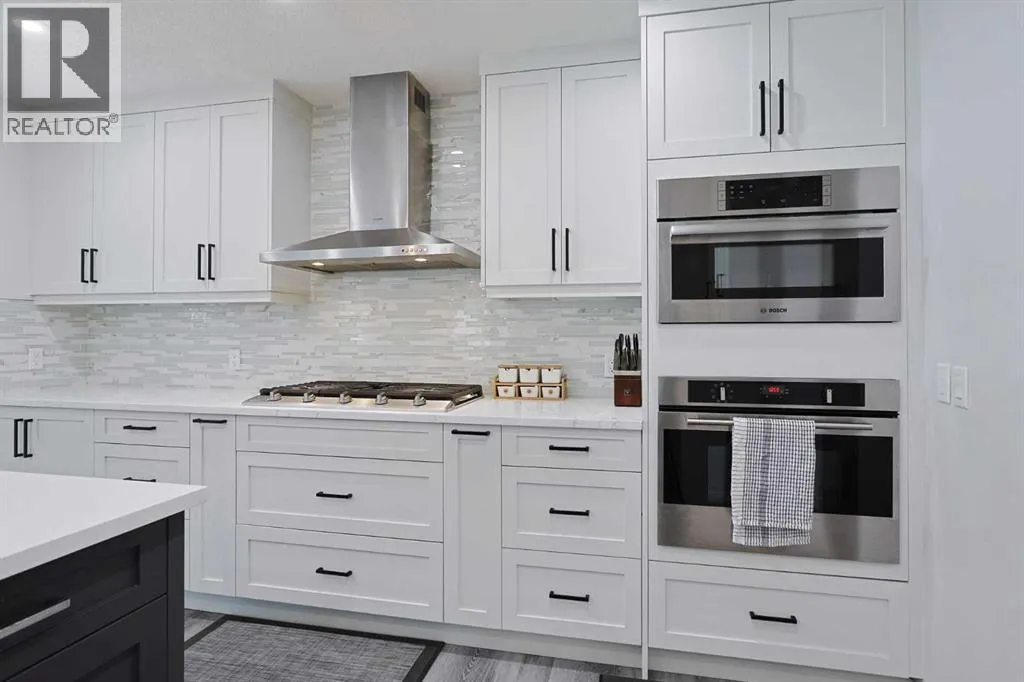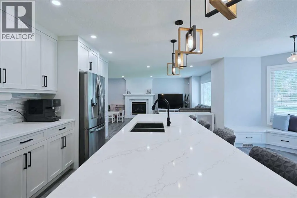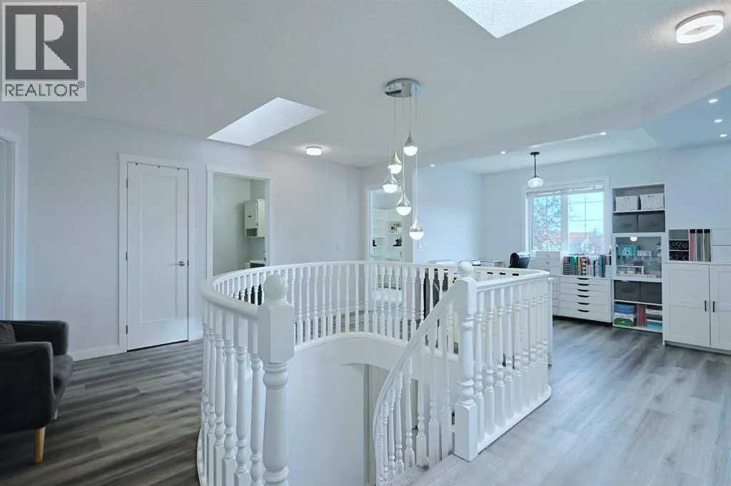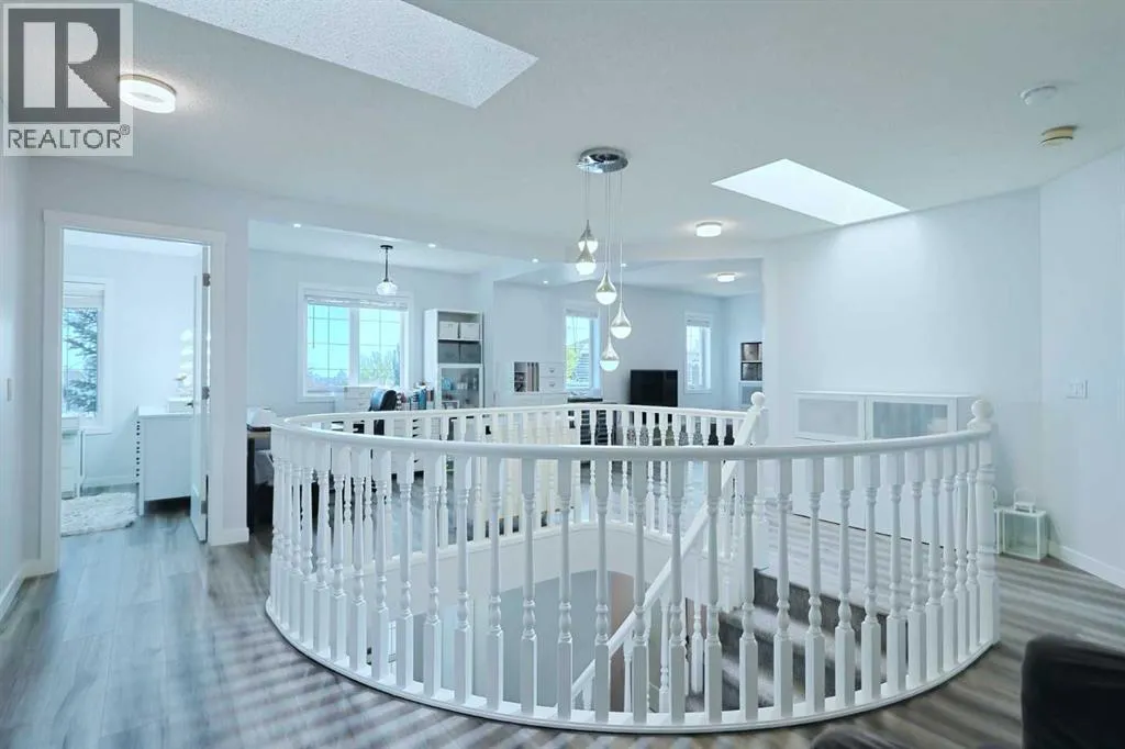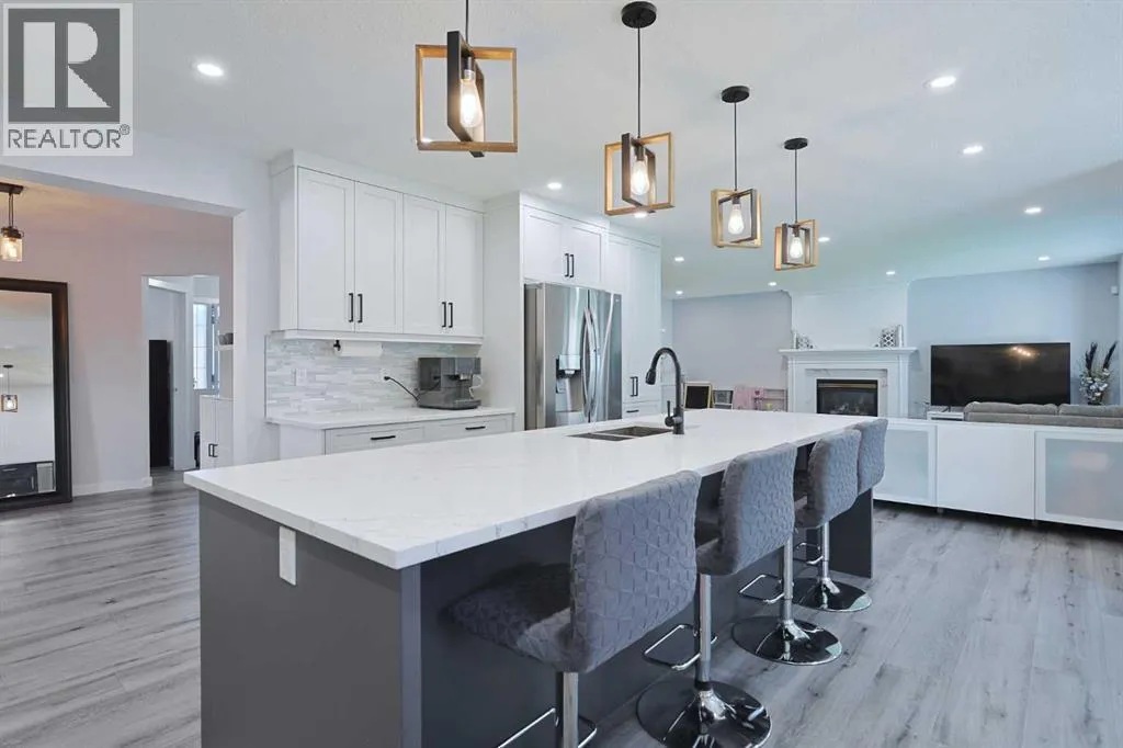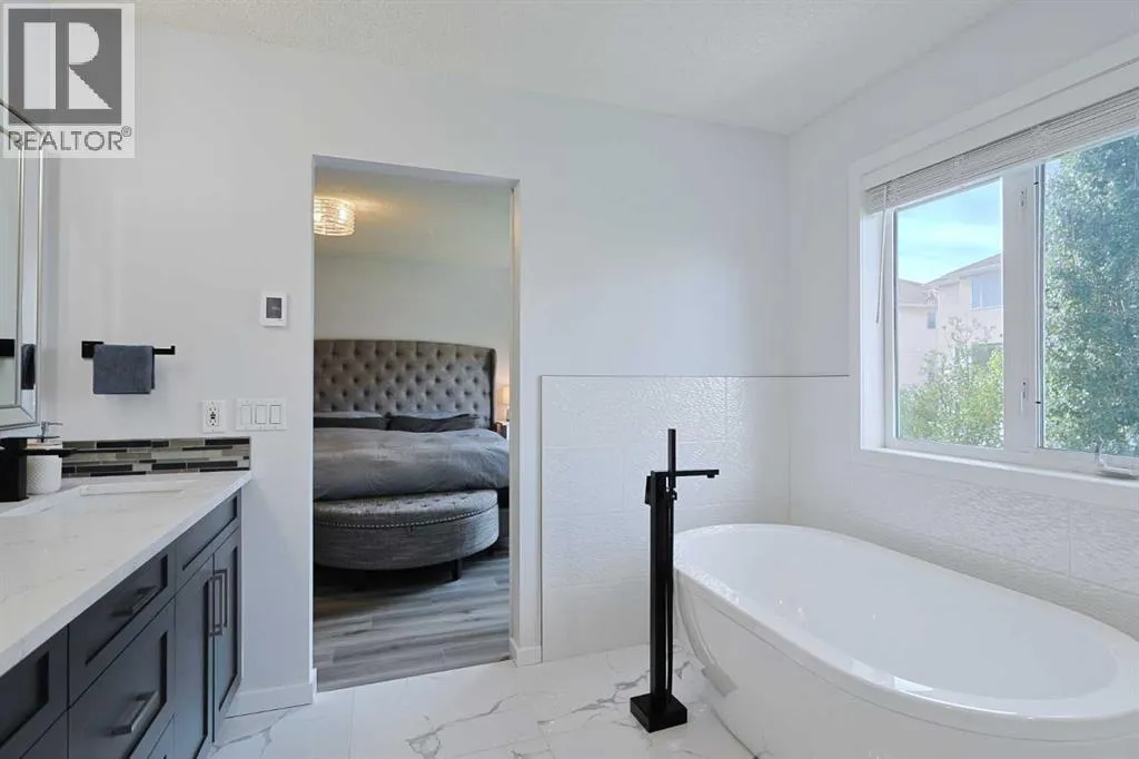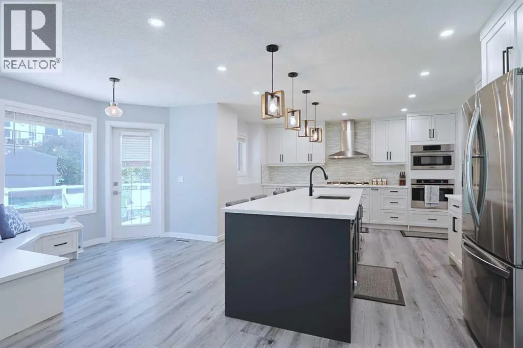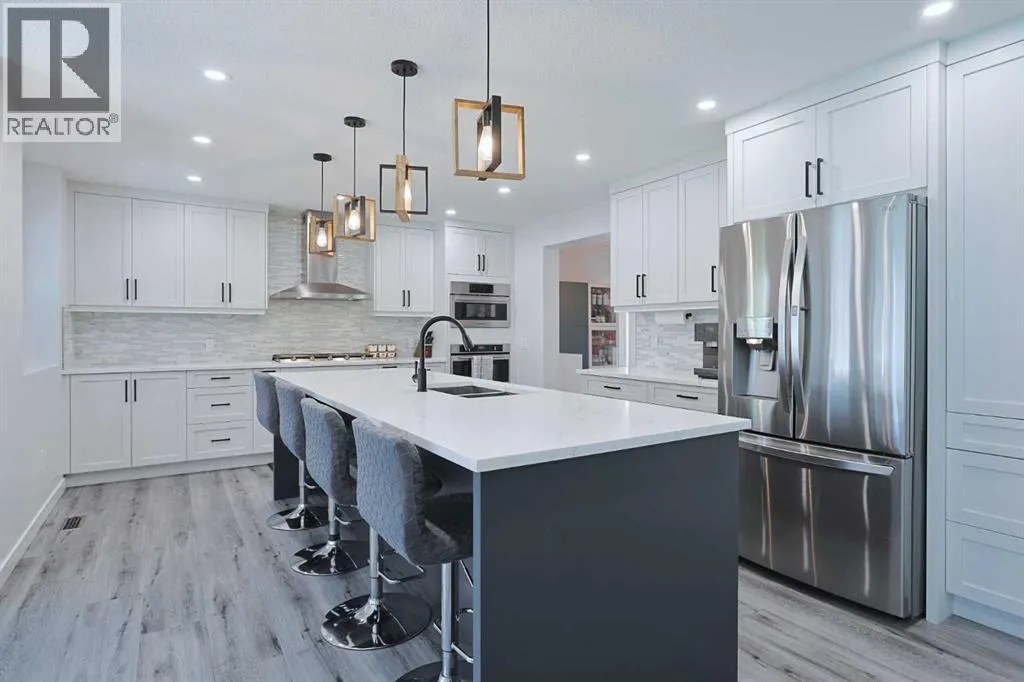 Knocking it out of the park is this beautifully renovated home tucked away in this quiet cul-de-sac in the highly-desirable golf course community of the Hamptons. Built by Sundance Homes, this extensively upgraded two storey enjoys vinyl plank floors & central air, total of 5 bedrooms + den, stunning designer kitchen with granite countertops & some of the improvements include interior paint & lighting, bathrooms, appliances & all polyB piping replaced with PEX. Wonderful family home featuring an expansive living room with gas fireplace & large picture window, separate formal dining room, breakfast nook with built-in seating & dedicated home office. The sleek new kitchen is a sight-to-behold, with its oversized central island & soft-close custom cabinetry, tile backsplash & stainless steel appliances including Fulgor Milano convection oven, Dacor gas cooktop & Bosch dishwasher. Upstairs on the 2nd floor are 3 terrific bedrooms & 2 full bathrooms, highlighted by the ownersâ retreat with walk-in closet â complete with built-in organizers, & gorgeous ensuite with heated floors & free-standing soaker tub, granite-topped double vanities & oversized shower. Between the bedrooms is the open concept landing with 2 skylights & multi-purpose loft areaâ¦ideal as a lounge/sitting room, play area for the kids or study. The lower level â with high ceilings, is finished with 2 bedrooms, large rec room, storage room & renovated bathroom. Main floor laundry/mudroom with LG washer & dryer, built-in lockers, sink & granite countertops. Completed in the fall of 2021, among the extensive renovations: granite counters, kitchen & laundry room (including the appliances), interior paint & lighting, baseboards & interior doors, PEX piping, all the bathrooms & vinyl plank floors on the main & 2nd floors. Almost 8,000sqft pie lotâ¦fully fenced & landscaped, complete with underground sprinklers, storage shed & deck with natural gas line for your BBQ. Truly incredible home here in this prime locati on within walking distance to the Hamptons School & bus stops, just minutes to the golf course & all neighbourhood amenities, shopping at the Hamptons Co-op & Edgemont Superstore plus quick easy access to schools & parks, major retail centers & hospitals, University of Calgary & downtown. (id:27476)