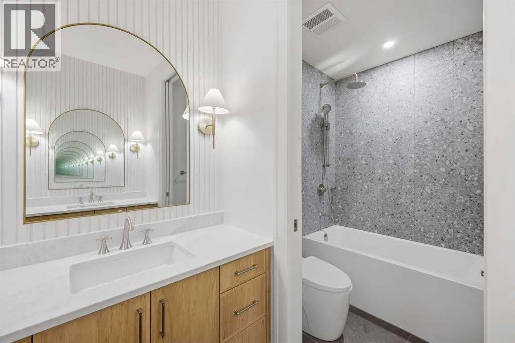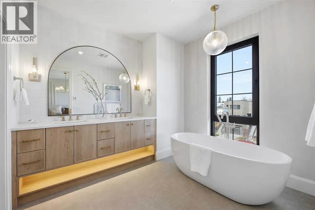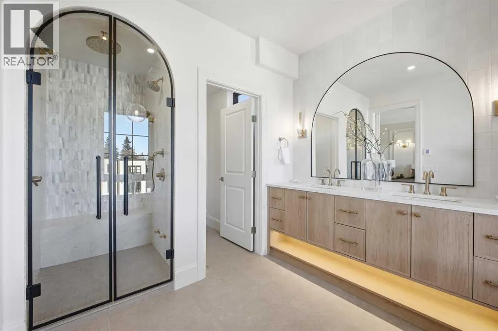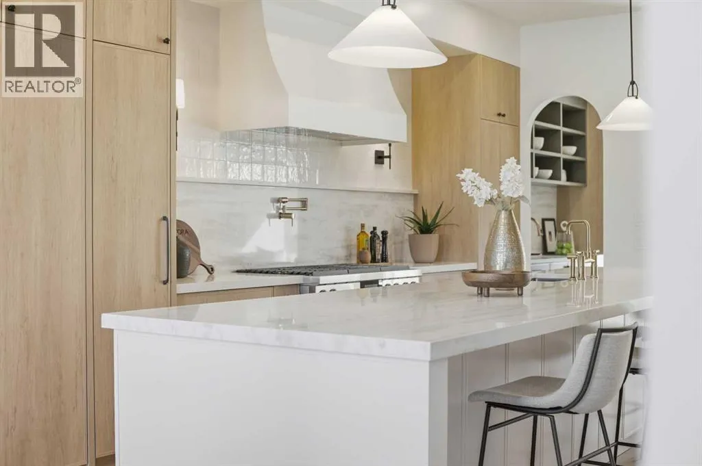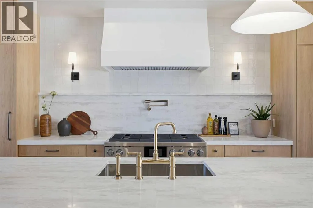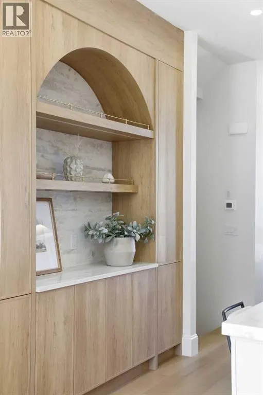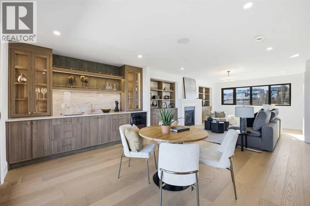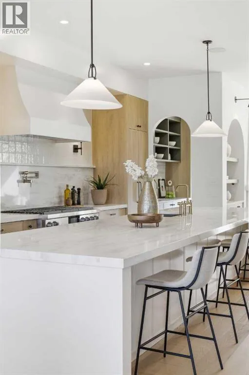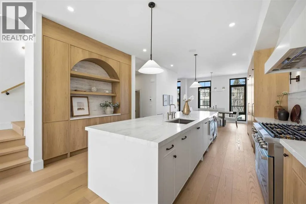 10 Reasons You'll Fall in Love with This Home:(1.) You're Steps from Marda Loop: Walk to coffee, dinner, river, parks, and your favorite shops. Minutes to downtown Calgary. You're in the heart of one of Calgary's best neighborhoods, but the moment you step inside, it feels like your own private escape.(2.) The Exterior Stops People in Their Tracks: French transitional architecture with timeless mouldings, balconies to enjoy the view, and proportions that just work. This isn't another cookie-cutter build, it's timeless, elegant, and undeniably beautiful.(3.) The Kitchen Is Where You'll Actually Want to Spend Time: A 14-foot quartz island that's equal parts functional and sculptural. Premium oversized appliances, pot filler, spice racks, open shelving. And the custom hood fan with a quartz backsplash, aesthetic shelf, and zellige tile up to the ceiling. It's the kind of detail you don't see anywhere else.(4.) Your Morning Coffee Just Got an Upgrade: A dedicated arched coffee bar with open shelves featuring brass tipping rails detail and smart storage. Start every day here... you'll really look forward to it.(5.) Rich Green Cabinetry: Featured in the laundry room, foyer, butler's pantry, and powder room walls. It's intentional, cohesive, and gives the home a personality that feels distinctly European and completely you.(6.) The Butler's Pantry and Mudroom Handle Real Life: Butler's pantry with sink and cabinetry keeps entertaining stress-free. Mudroom with built-ins manages the daily chaos. Everything has a place, so the beautiful spaces stay that way.(7.) Light, Views, and Spaces That Flow: European windows frame the skyline. A Venetian plaster accents the fireplace. The living areas open to a turfed backyard and composite deck low-maintenance, high-reward. (8.) The Primary Suite Feels Like a Spa: Wake up to city views and soft natural light. Your ensuite has in-floor heat, steam shower, dual vanities, arched details, custom textured walls, and tilework that w as chosen with care. The secondary bedrooms are spacious with walk-in closets, sharing a bathroom that blends French timeless design with everyday function. Shared bathroom includes in-floor heat.(9.) The Rooftop Is Where You'll Live: Third-floor lounge with a gas fireplace. Rooftop patio with sweeping downtown downtown views. A custom wet bar with gold railing details, LED-lit glass shelving, and timeless finishes. This isn't a space you use once it's where you'll host, relax, and fall in love with Calgary all over again.(10.) The Extras That Make Life Easier: Epoxy-finished heated garage. Central A/C. Full security system. Integrated sound. Fully finished basement with a guest bedroom/gym room, full bathroom, and heated floor rough-ins. Heated driveway rough-ins (Calgary winters solved). Landscaping designed so you enjoy it, not maintain it.This home isn't just beautiful. It's thoughtful, functional, and designed to be lived in fully. European charm meets Calgary living, and it's waiting for you. (id:27476)