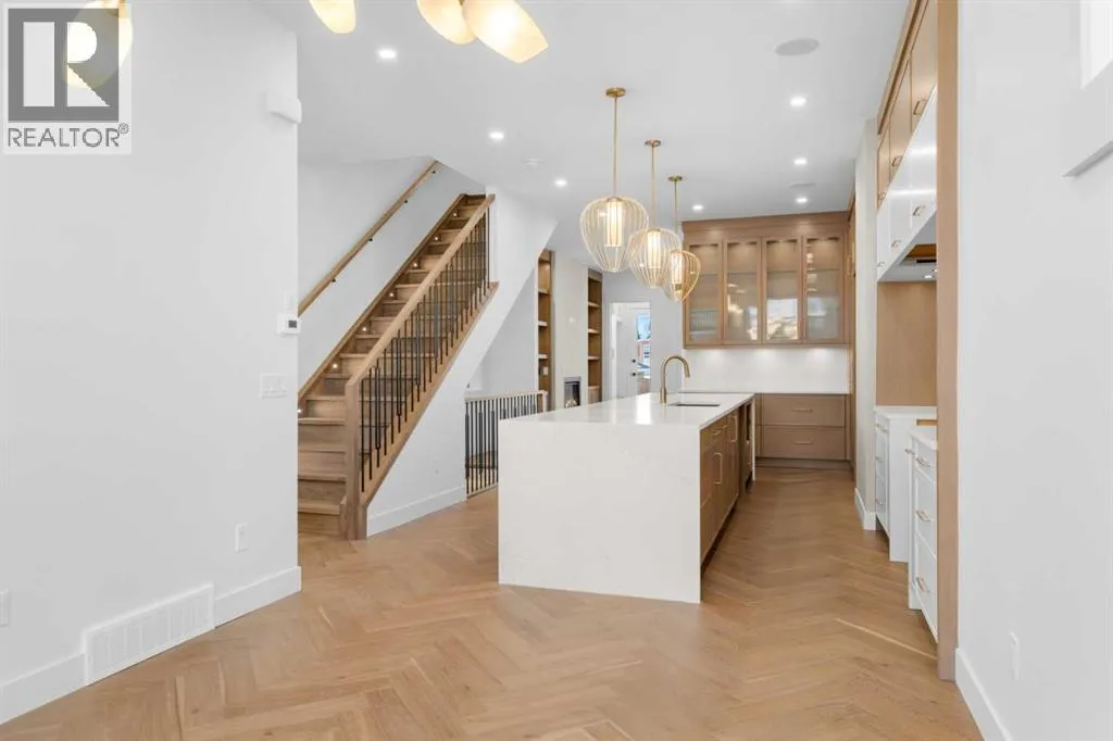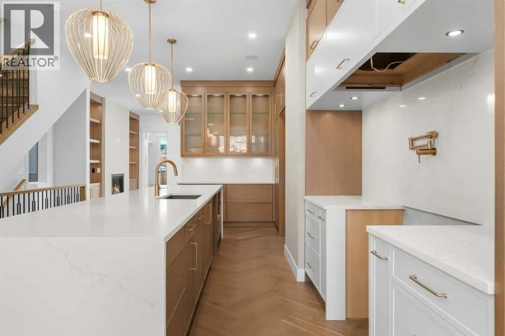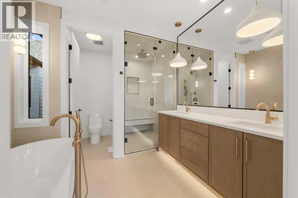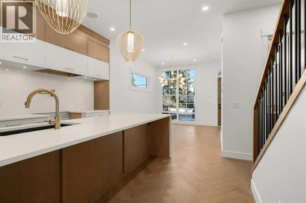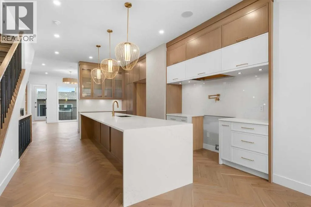 Located in the heart of South Calgary, 1517 32 Ave SW showcases refined design, elevated finishes, and a thoughtfully curated layout across every level. This stunning home features a main floor that welcomes you with an elegant foyer, a spacious dining area, and a chef-inspired kitchen complete with a large quartz island and a full JennAir appliance package. The living room is anchored by a sleek fireplace, while double patio doors flood the space with natural light and create seamless indoor-outdoor flow. A functional mudroom and carefully selected luxury finishes complete this exceptional main level. The second floor offers two generously sized bedrooms, including one with a walk-in closet and a beautifully appointed four-piece ensuite featuring dual vanities and a soaker tub. A third room on this level provides flexibility for a home office, craft room, or additional flex space. A stylish common three-piece bath, upper floor laundry, and a convenient linen closet add to the homeâs practicality. The entire top floor is dedicated to a private primary retreat. Enjoy an expansive bedroom complete with its own fireplace, creating a warm and sophisticated ambiance. The luxurious four-piece ensuite features double vanities and a soaker tub, complemented by a large walk-in closet and a private balcony. With no neighbours directly in front, youâll appreciate both privacy and unobstructed views. The fully developed basement extends the living space with an additional bedroom, a three-piece bath, a spacious recreation or fitness area, and a wet bar perfect for entertaining. A double detached garage completes this exceptional inner-city offering. Please note: Photos reflect a previous home built by the same builder with a similar palette and level of finishes. This home is currently under construction and final finishes may vary. A sophisticated residence that perfectly balances luxury, comfort, and functionality in one of Calgaryâs most desirable communities. (id:27476)