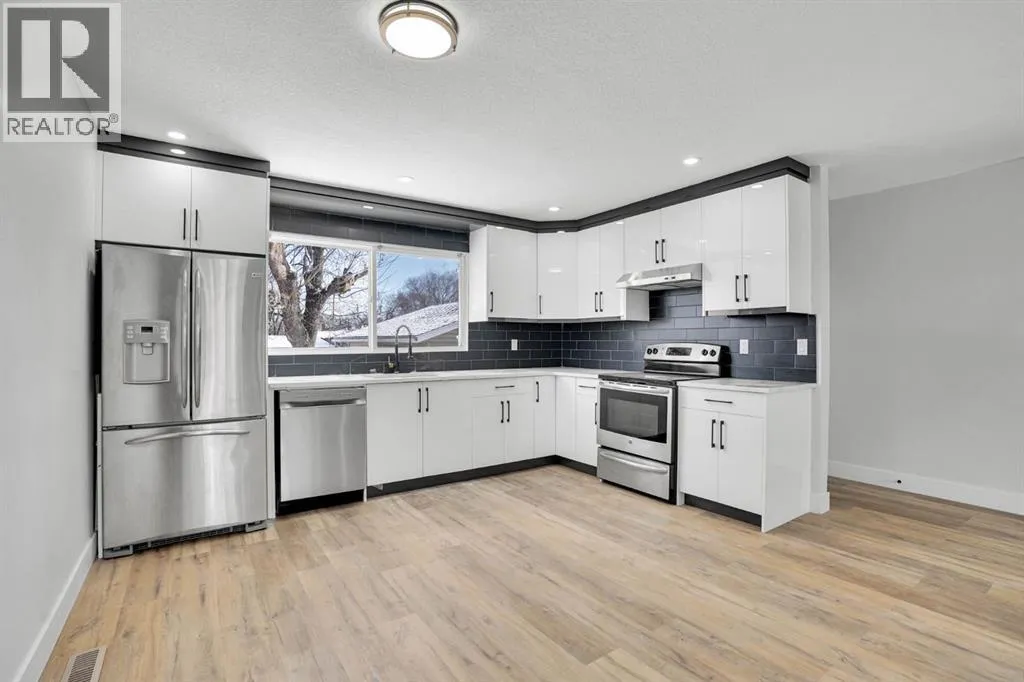 Welcome to this beautifully renovated home in the heart of Temple, one of Calgaryâs most established and family friendly communities. Featuring 5 bedrooms and 2 full bathrooms, this home offers the perfect blend of modern updates and functional living space. As you arrive, you will immediately appreciate the tasteful exterior upgrades that give this home fantastic curb appeal. Step inside to a bright and inviting open concept main floor, where the spacious living room seamlessly flows into the dining area and stunning kitchen, ideal for entertaining and everyday living. The entire upper level has been fully renovated, including fresh paint, new flooring, elegant tile work, and sleek high gloss kitchen cabinets that truly make a statement. Upstairs you will also find three generously sized bedrooms and a beautifully updated 4 piece bathroom, making it perfect for growing families. Downstairs, the fully developed basement offers even more living space, complete with a large family room, two additional bedrooms, a full bathroom, and a full kitchen setup, providing excellent flexibility for extended family. Step outside to the massive backyard where you will find a detached oversized double garage, offering plenty of space for parking, storage, or a workshop. With its extensive upgrades, functional layout, and prime location in Temple, this home is the perfect opportunity for first time buyers, growing families, or investors alike. (id:27476)