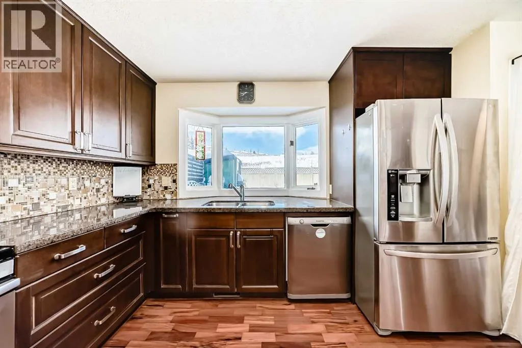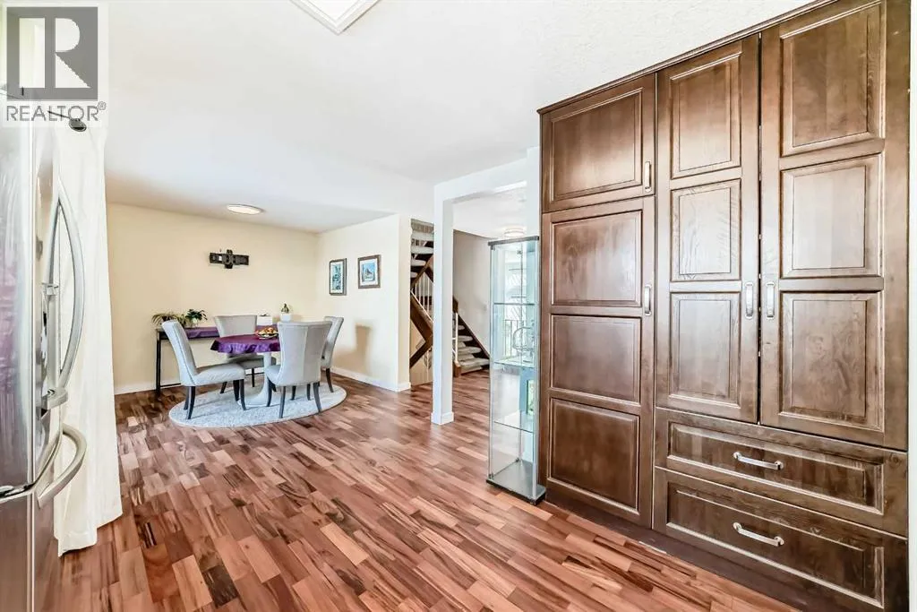 Welcome to Edgemont Estatesâno condo fees and an unbeatable location backing directly onto a peaceful wildlife corridor and park.This spacious and beautifully updated townhouse offers 3 bedrooms, 4 bathrooms, and a versatile lower-level art studio, perfect for creatives or a home office. Thoughtfully renovated over the years, the home features a newer roof, furnace, and hot water tank, along with extensive interior upgrades.The stunning kitchen has been remodelled with modern stainless steel appliances, including a gas stove, and flows seamlessly into a generous dining area with breathtaking views of the nature reserveâan ideal setting for entertaining or quiet family dinners.Enjoy the warmth and elegance of hardwood flooring on all three levels, with the main floor recently refinished. The bright, south-facing living room boasts soaring ceilings and abundant natural light, while the rebuilt fireplace adds charm and comfort.Upstairs, youâll find three generously sized bedrooms, including a spacious primary retreat with a renovated ensuite. The second bedroom features a charming bay window, adding character and extra light.The fully developed lower level includes a large new bathroom and a flexible studio space currently used for paintingâperfect for hobbies, fitness, or remote work.Step outside to a truly special backyard: two-thirds deck and one-third garden, designed in a beautiful English garden style with lush perennials, planters, and a cherry treeâyour own private oasis.This is a rare offering where the front feels like a quiet crescent, while the backyard opens to serene, acreage-like surroundings. Lovingly maintained by a long-term owner, this home is a unique opportunity in a highly desirable community.Book your private showing today! (id:27476)