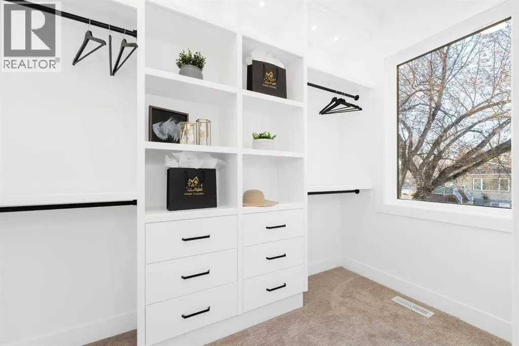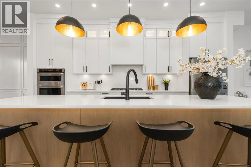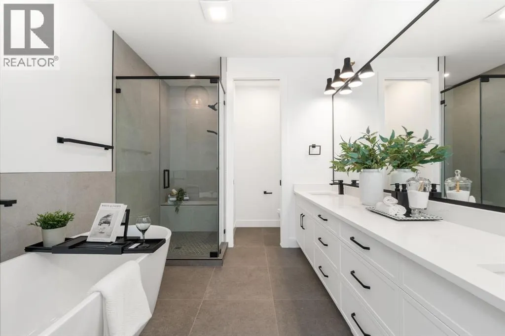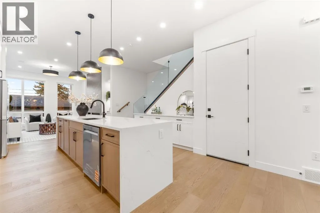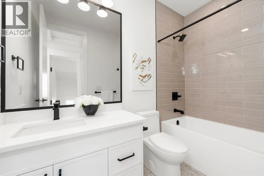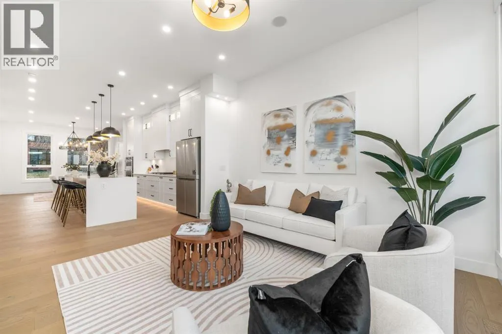 Welcome to Refined Living in Rosscarrock ! Crafted for those who appreciate fine design and smart investment.Luxury, comfort, and convenience come together beautifully at 1444 43 Street SW, an exquisite modern infill designed for todayâs lifestyle. Perfectly positioned in the sought-after community of Rosscarrock, this home is within walking distance to the Westbrook C-Train Station, Westbrook Mall, Walmart, Starbucks, and local restaurants â offering true inner-city living without compromise.Step inside and be greeted by 10-foot ceilings, an open and airy floor plan, and engineered hardwood flooring on the main level. The chef-inspired kitchen is a showstopper, featuring built-in premium appliances, a massive extended island with a dual waterfall quartz countertop, full-height cabinetry, and a sleek quartz backsplash. Designed to impress, this kitchen perfectly balances luxury and everyday functionality.The living area exudes elegance with its feature gas fireplace, glass-railed staircase, and abundance of natural light, creating a warm and welcoming atmosphere ideal for gatherings or quiet evenings at home.Upstairs, the primary suite is a serene retreat â highlighted by a vaulted ceiling, custom-designed closet, and a luxurious five-piece ensuite with a soaker tub, double vanity, glass-enclosed shower, and in-floor heating for a spa-like experience. Two additional bedrooms, a full bath, and a laundry room complete the upper level, designed with both comfort and practicality in mind.A standout feature of this property is the fully LEGAL two-bedroom basement SUITE with its own private side entrance, ideal for generating rental income or hosting extended family. The suite includes a full kitchen, private laundry , and sound-reduction construction for added privacy.Every element of 1444 43 St SW has been crafted with precision and purpose, offering an elevated lifestyle in one of Calgaryâs most desirable inner-city communities. (id:27476)