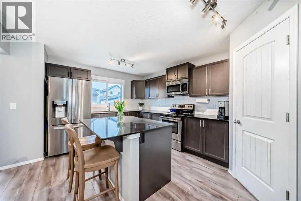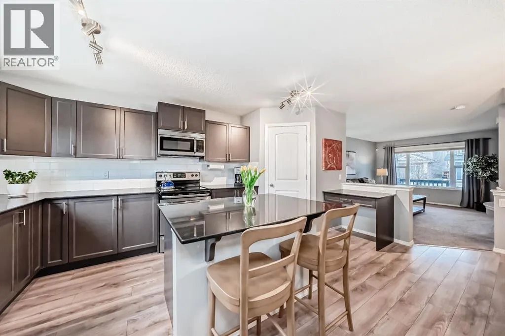 **** OPEN HOUSE, SATURDAY & Sunday, 2-4PM **** Welcome Home. This beautifully maintained family residence perfectly blends functionality with modern style, and comes with 4 bedrooms and 3.5 bathrooms. Step in from your charming front veranda into an airy main floor. The heart of the home is an open-concept Kitchen with Elegant espresso cabinetry accented by sleek quartz countertops, stainless steel appliances, a central island and a separate corner pantry. The upper level is designed for family comfort, featuring three generous bedrooms. The Master's Quarter's serves as a private oasis with a large walk-in closet and full ensuite bath. Down the hall, youâll find a second full bathroom and a convenient upper-floor laundry room.The professionally finished lower level comes with a recreation room perfect for movie nights or a play area. A 4th bedroom and a full bathâideal for guests or teens. Additionally, the oversized mechanical room features a built-in woodworking bench for your weekend projects and hobbies. Car enthusiasts and hobbyists will fall in love with the oversized double detached garage that comes with a gas line. At 25 feet long with 10-foot ceilings, it easily accommodates a full-sized truck while providing ample overhead storage. The home also features Central Air Conditioning for those upcoming Spring and Summer hot evenings. The rear yard was professionally landscaped. Experience life in one of Calgaryâs fastest growing communities. You are just a short stroll away from: 2 picturesque ponds and walking paths, a K-9 School and multiple parks. Legacy is designed for luxury, safety, and family values. Move in and start making memories today! (id:27476)