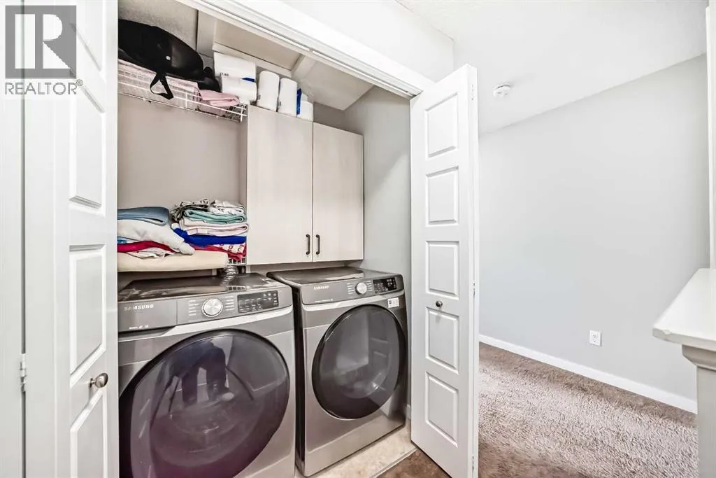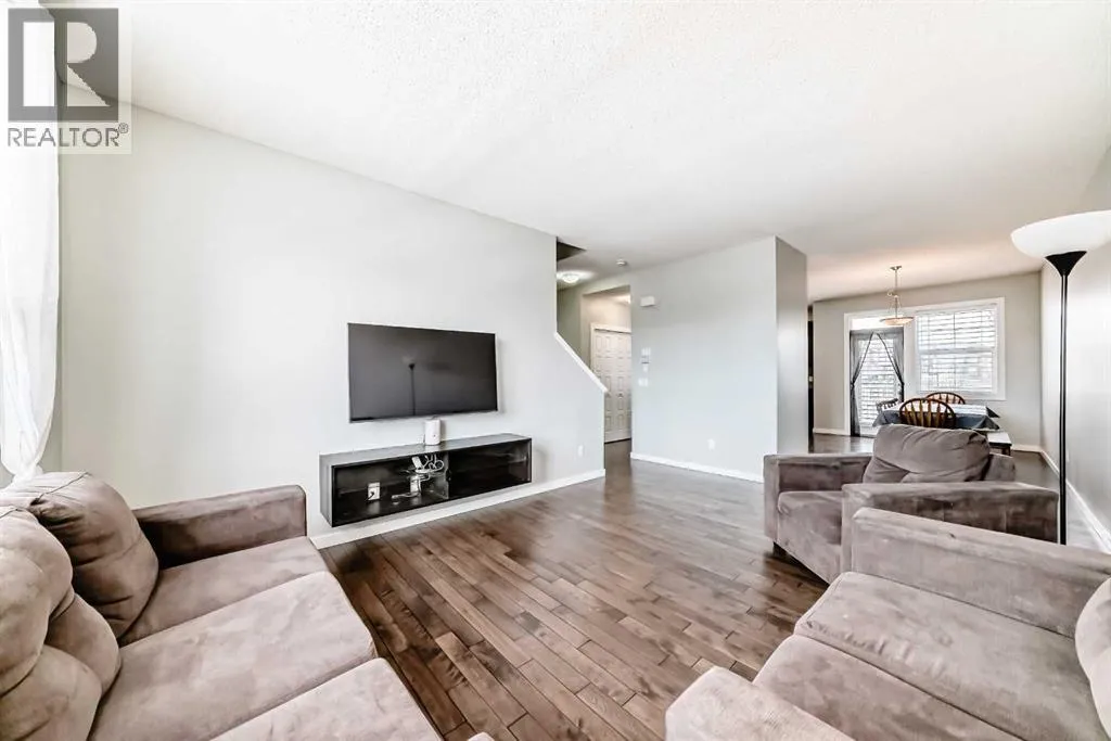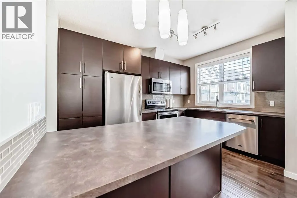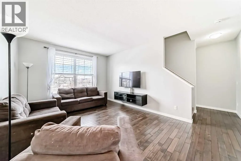 Welcome to this beautifully maintained two-storey townhome in the highly sought-after community of New Brighton. Offering over 1,500 sq ft of living space and an attached heated double garage, this home combines comfort, style, and functionality. Step inside through the spacious front entry and head up to the bright open-concept main living area, featuring hardwood flooring, and large windows that fill the space with natural light. The kitchen is a true highlight and a chefâs dream, complete with custom cabinetry, modern tile backsplash, a large island, and upgraded appliances including a Maytag refrigerator, double oven, and dishwasher. The adjacent dining area provides plenty of space for entertaining and offers access to a private balcony â perfect for summer BBQs. A conveniently located half bathroom completes the main level. Upstairs youâll find three spacious bedrooms, all featuring large windows. The primary suite includes a walk-in closet and private ensuite, while the two additional bedrooms offer generous closet space and share a beautifully finished full bathroom with modern tile work. The upper floor also features a large laundry area with built-in cabinetry and storage, along with a Samsung washer and dryer. A tucked-away bonus storage room on the staircase landing offers the perfect place for seasonal items or a fun hideaway for kids. The lower level provides another versatile room, ideal for a home office, workout space, or flex room, along with access to the utility room and attached garage. Located in one of Calgaryâs most family-friendly communities, New Brighton offers excellent schools, nearby shopping, and quick access to major roadways. Residents also enjoy access to the New Brighton Clubhouse, featuring a water park, hockey rink, tennis courts, and event facilities. Donât miss your chance to own this exceptional home â book your private viewing today! (id:27476)