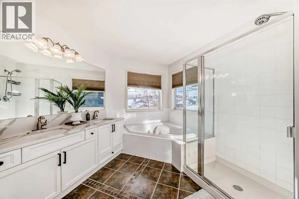 Fantastic opportunity to raise your family in this lovingly maintained Cedarglen two-storey home on a quiet crescent in The Cascades of Royal Oak. The highly rated Renert School is just a 5-minute drive away. With two schools and neighbourhood parks only a short 5-minute walk from your doorstep, this cherished family home offers comfort, warmth, and thoughtful updates throughout. With an oversized 2-car garage with new garage door and a fenced backyard complete with a kidsâ playhouse and huge deck, itâs the perfect setting for creating lasting family memories.Step inside to a wonderful open-concept design drenched in natural light, featuring an expansive great room with a cozy stone-facing fireplace, a formal dining room accented by French doors, and a bright dining nook with access to the backyard. The heart of the home is a beautiful white kitchen with an island, quartz countertops, and a walk-in pantry, offering ample cabinet space and Frigidaire Gallery stainless steel appliances, including a convection ovenâideal for family meals and gatherings. The main floor now features brand new vinyl flooring, adding durability and modern style to the homeâs warm aesthetic.Upstairs, youâll find three relaxing bedrooms highlighted by the primary suite with a walk-in closet and a luxurious soaker tub ensuite featuring a separate shower, double vanities, and corner windows. Over the garage, a spacious bonus room with a custom-built-in desk and cabinets provides the perfect retreat for family movie nights or a quiet workspace. Additional main-floor conveniences include a laundry area with a built-in bench, underground sprinklers, and an oversized garage with built-in storage.Thoughtful updates include updated Levolor blinds and a new water heater installed last year. The backyard is newly painted fenced, and landscaped, featuring an inviting deck for summer entertaining, a playhouse and swing for children, and plenty of space for gardening or relaxation. Bus stops are just steps away, and youâre minutes from the Royal Oak Shopping Centre with quick and easy access to Tuscany and major routes.The newly developed basement enhances the homeâs living space with a large bedroom, a stylish full bathroom with a tiled standing shower, and newly installed carpet flooring. The home also offers fresh paint throughout, a painted deck and fence, quartz countertops throughout, a garden shed, outdoor lighting, and an irrigation systemâensuring comfort, beauty, and convenience inside and out. (id:27476)