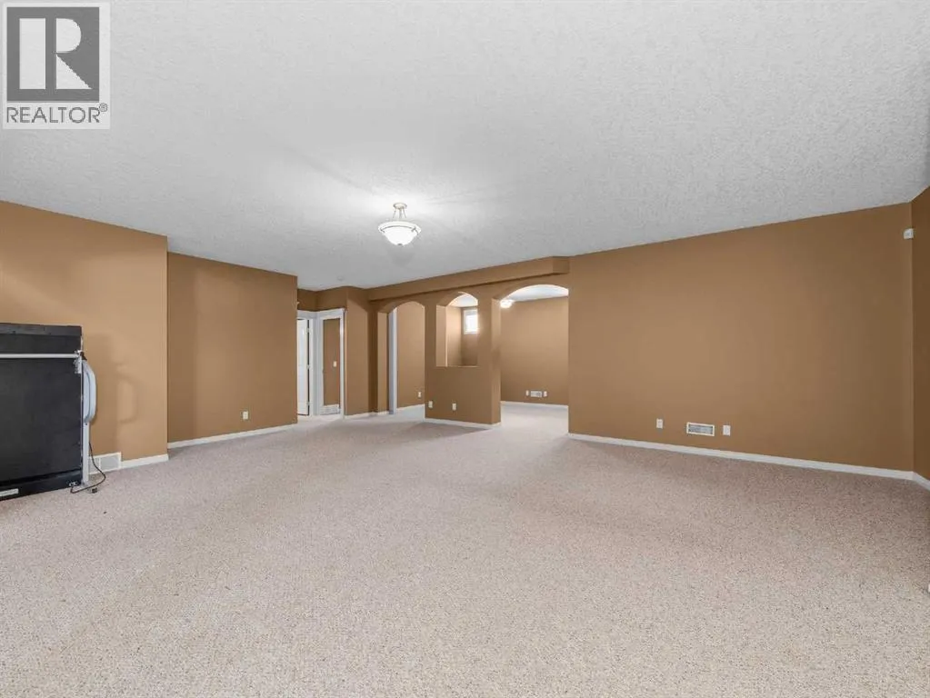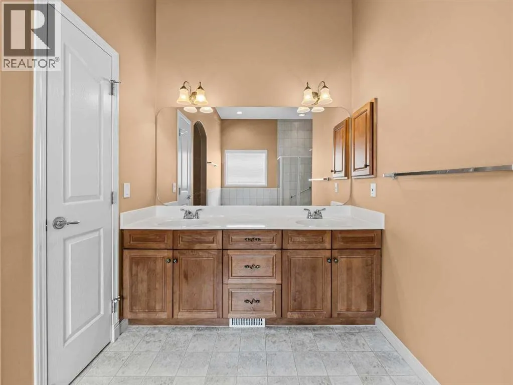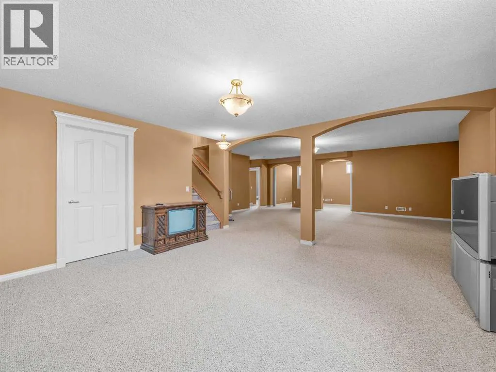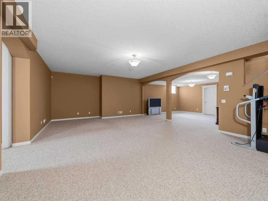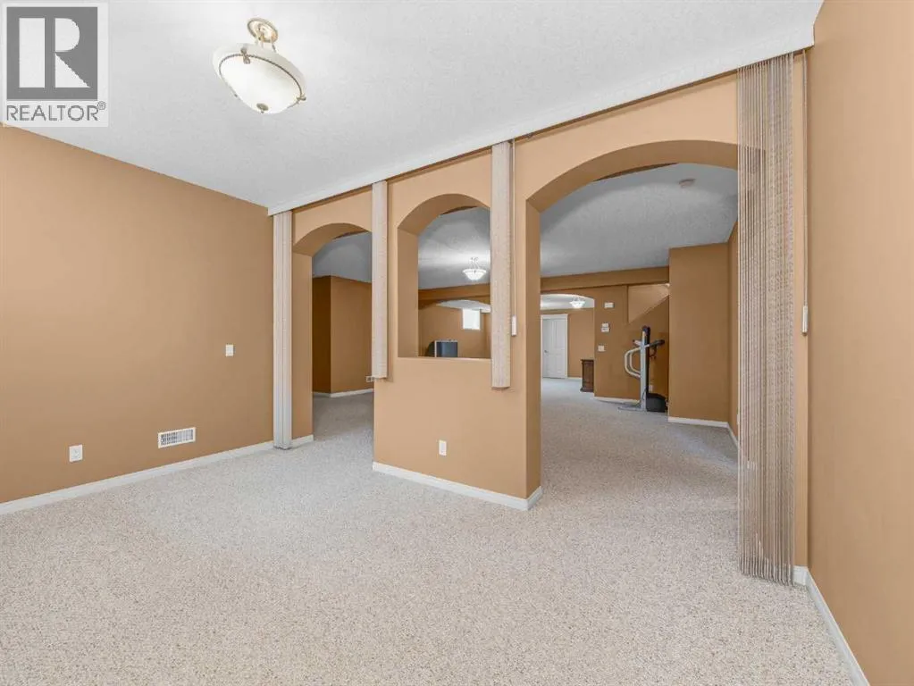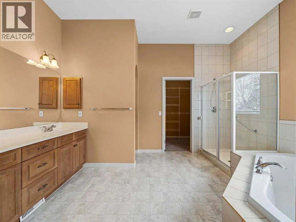 Come home to desirable Valley Ridge! A large bungalow on a corner lot without sidewalks to shovel located in a quiet cul-de-sac overlooking the ravine! The front driveway is upgraded aggregate concrete, the stunning stucco exterior home sits on a landscaped yard with trees, and perennial shrubs and flowers. Excessive parking includes a front double wide driveway, attached double garage and extra gated parking out back that can be used for a small boat or RV. The welcoming open floor plan showcases 10' ceilings, built in speakers, skylights and gorgeous hardwood flooring! The kitchen has plenty of storage with step in pantry, cooktop, separate wall oven and the island overlooks the spacious dining room. Sliding doors open to the covered deck and beautiful yard with a gazebo! The living room showcases a tray ceiling, cozy gas fireplace and custom hardwood build-ins. Relax in the primary wing with an enormous 5 pc ensuite with jet tub and stand alone shower. There is a flex room for a den, office, formal dining or use as you wish! Enjoy the convenience of main floor laundry! Head down to the fully finished basement boasting 9' ceilings! Enjoy a grand recreation room, two sizable bedrooms, another den and a full bathroom. There is extra dedicated storage room and more space in the utility room. Valley Ridge is an upscale community with paths, river access, ravine views and is an easy escape to the mountains! And if you like golf, Valley Ridge Gold Course meanders through the community! Book your private showing today! (id:27476)