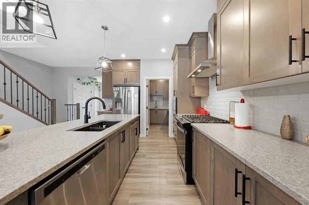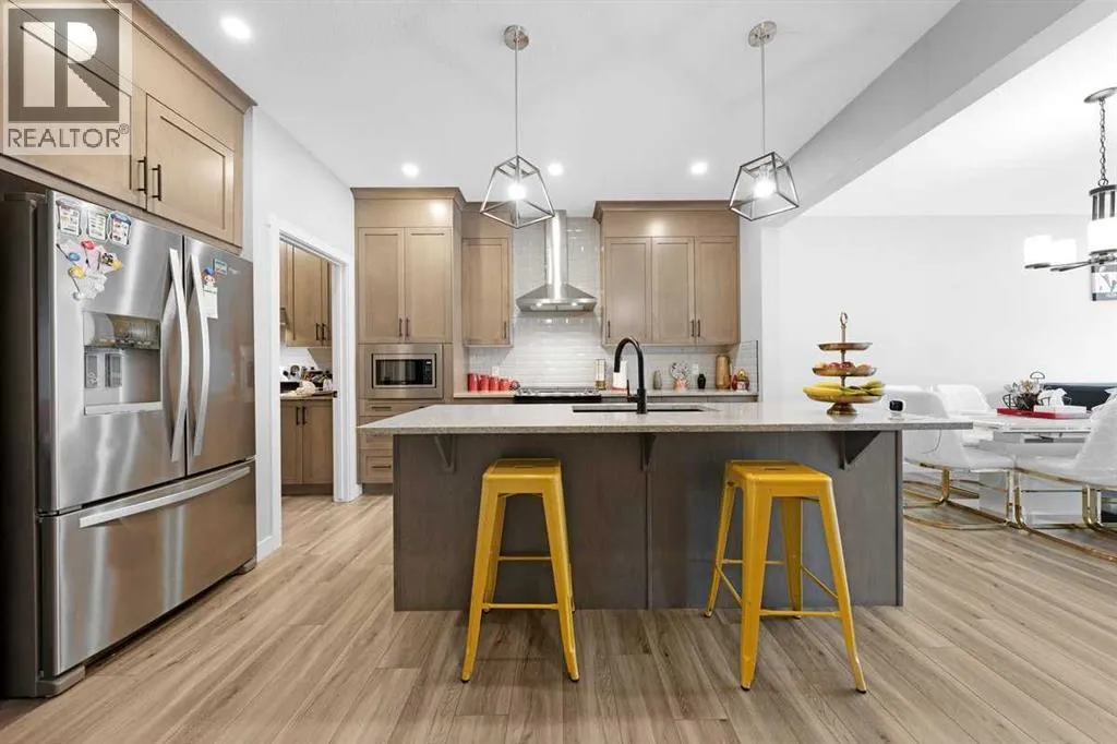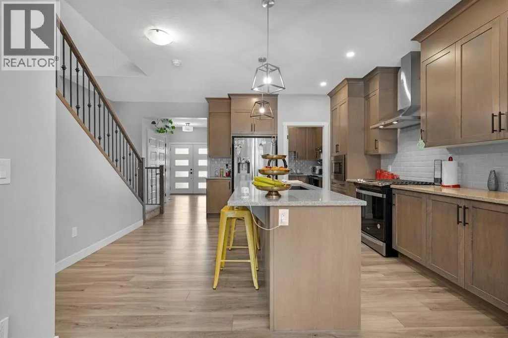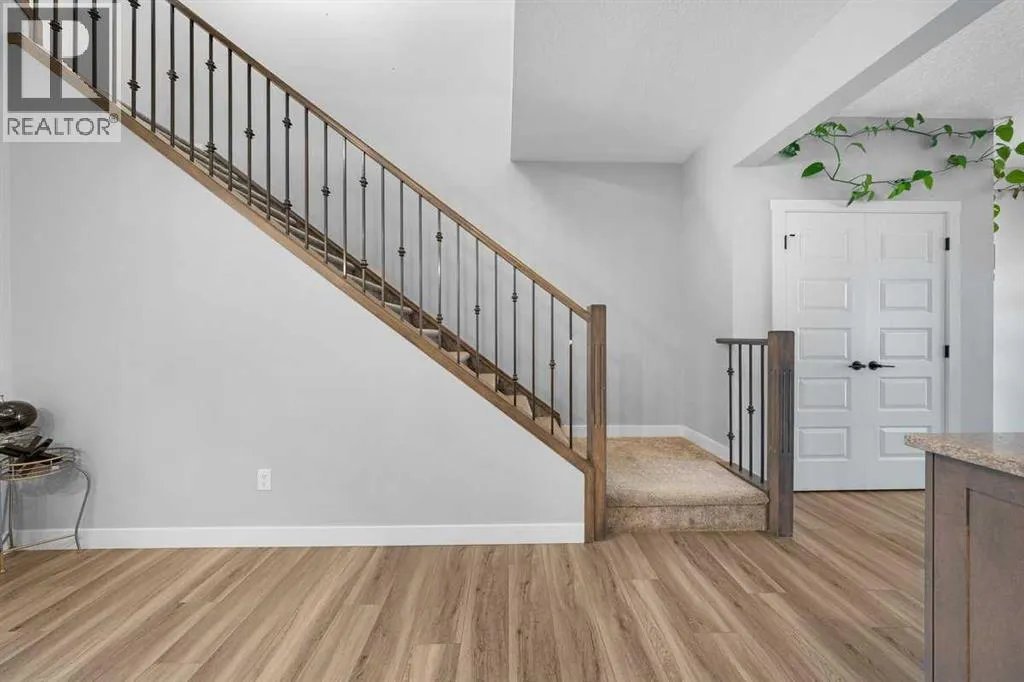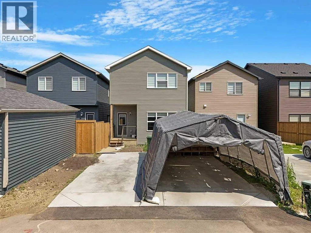 Welcome to your dream home in the vibrant community of Homestead in NE Calgary! This beautifully upgraded home offers a total of four bedrooms and three full bathrooms, including a main floor bedroom with a full bathâperfect for guests or multi-generational living. The main kitchen is complemented by a convenient spice kitchen, ideal for culinary enthusiasts. Step inside through the elegant double door entry and experience the spacious layout featuring a luxurious master suite with double doors, a full ensuite, and a large walk-in closet with custom MDF shelving. Two additional generously sized bedrooms, each with their own MDF-shelved closets, share a common full bathroom. A large bonus room provides extra living space, perfect for a media area or playroom. The upper level also includes a side-by-side laundry for added convenience. The unfinished basement boasts 9-foot ceilings and a separate rear entry, offering excellent potential for future development. A large garage pad at the back completes this exceptional property. Donât miss the chance to own this beautiful home in an excellent location. (id:27476)