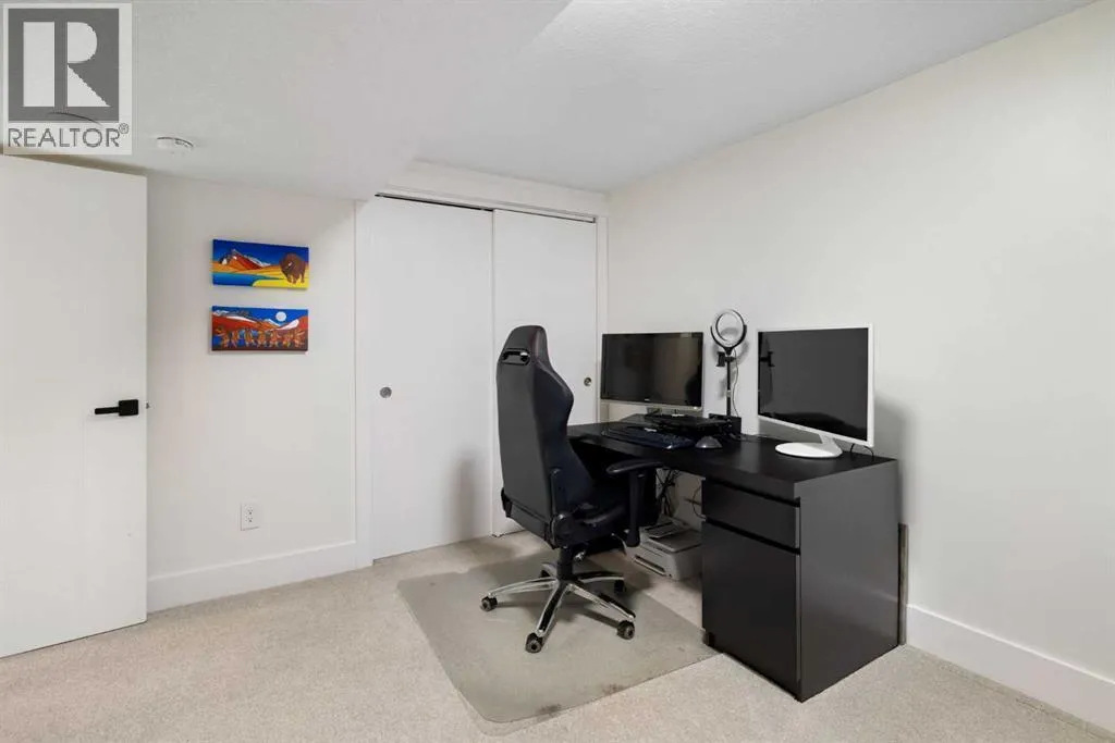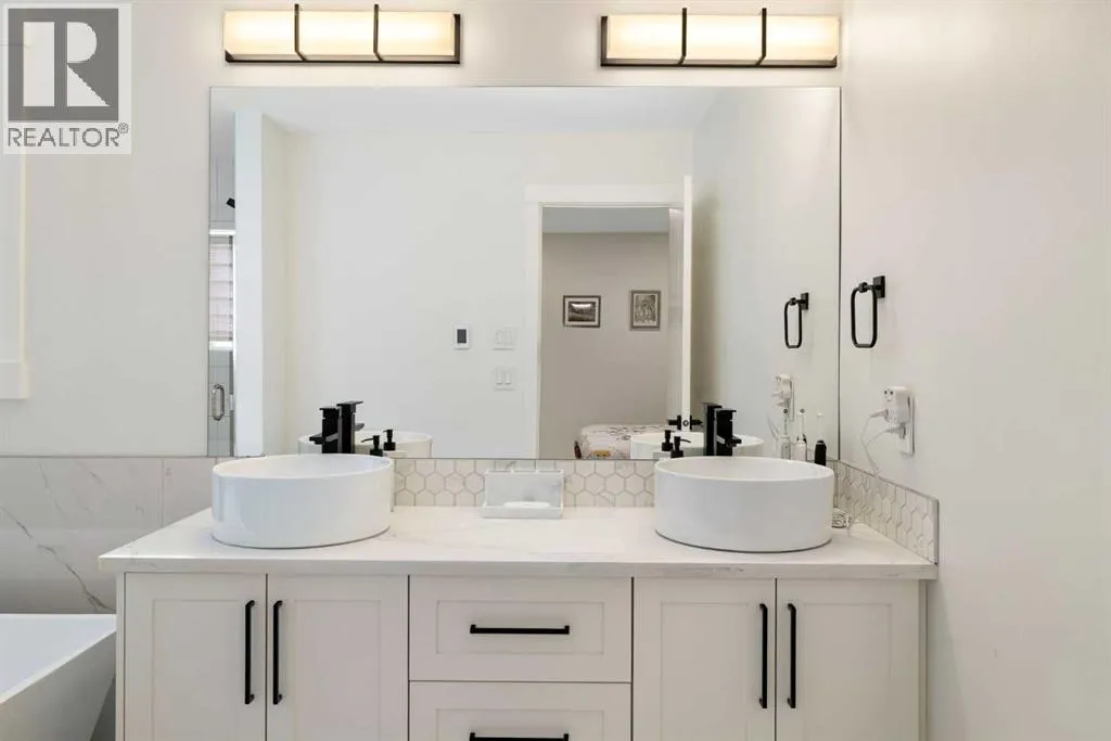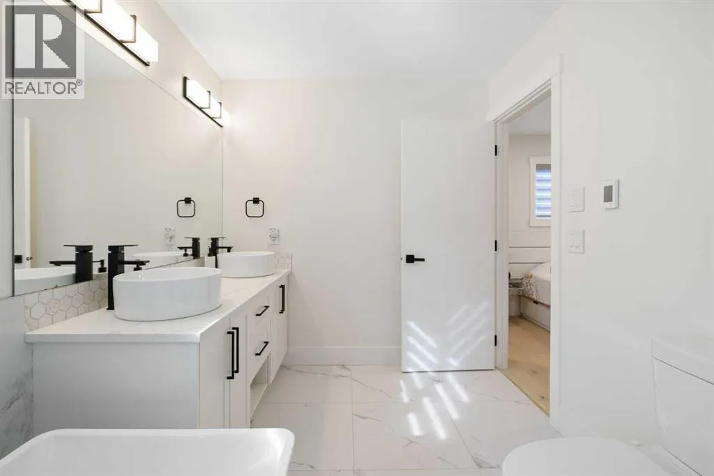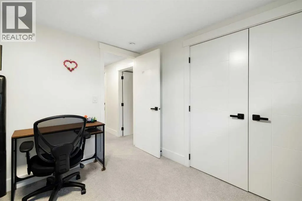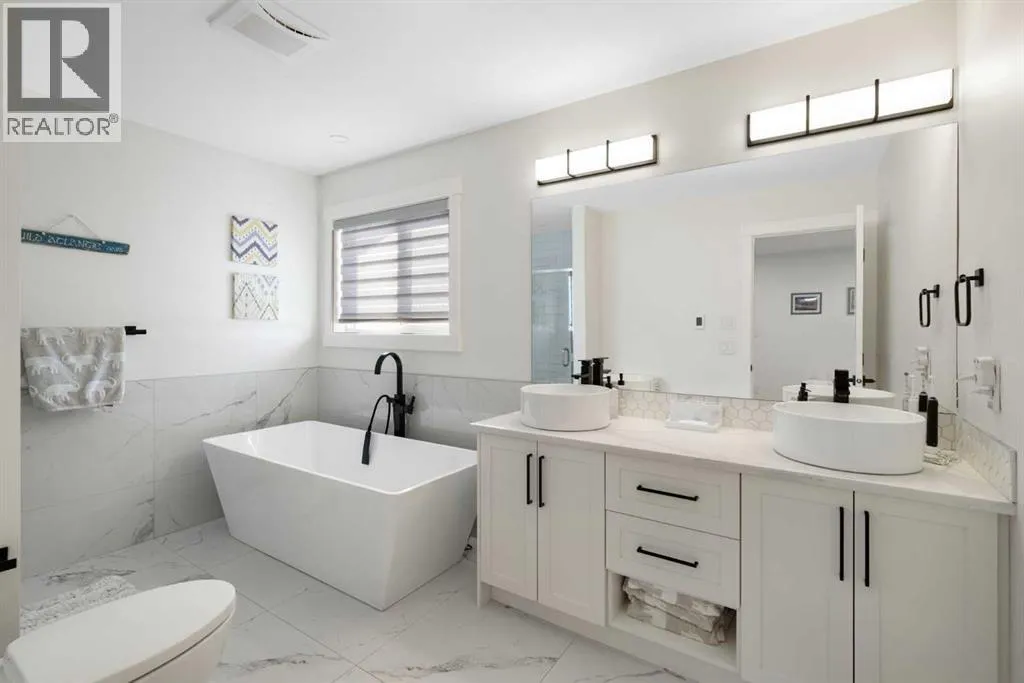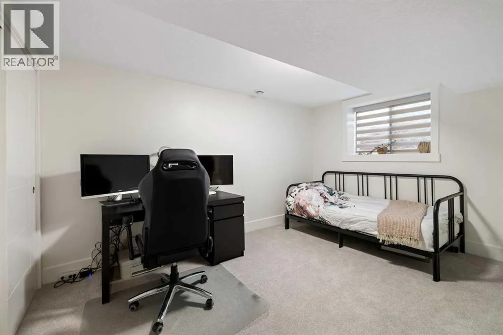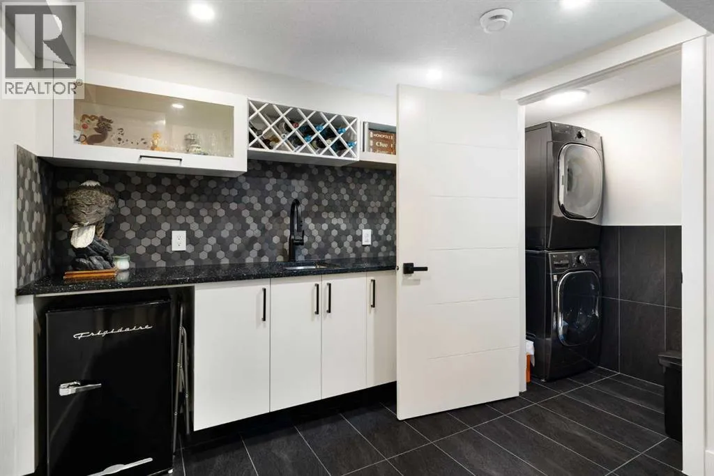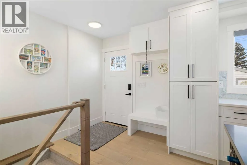 Exquisitely renovated 1,231 sq ft bungalow in the highly sought-after community of Acadia, set on a quiet, tree-lined street. This exceptional 5-bedroom home blends modern design with everyday comfort. Natural light fills the open-concept main floor, where the bright living area is anchored by a sleek built-in fireplace, creating a warm and inviting space for both relaxing and entertaining. The chef-inspired kitchen is a true highlight, featuring full-height custom cabinetry, quartz countertops, gas range, custom hood fan, built-in wall oven, and premium stainless-steel appliances. Engineered hardwood flooring runs throughout the main level. The primary suite offers a private retreat with its own fireplace and a spa-inspired 5-piece ensuite with heated floors, fully tiled shower, deep soaker tub, and dual vanities. Two additional bedrooms and a full bathroom complete the main level. A striking glass and maple staircase leads to the fully developed basement, featuring a spacious family room, stylish bar area, dedicated laundry room, two additional bedrooms, and a 3-piece bathroom. Extensive upgrades include renovated kitchen and bathrooms, custom remote blinds, interior doors, water softener and filtration system, upgraded electrical, furnace, basement system, sump pump, new windows and roof (2021), and a professionally installed home security system with camera coverage. The exterior is finished with Hardie board siding, aluminum accents, new gutters, soffits, fascia, exterior doors, and upgraded insulation.Enjoy outdoor living with a concrete patio, raised garden bed, and plenty of space to relax or entertain. 22' x 22' (exterior msmt) drywalled detached garage and dedicated RV pad add exceptional functionality.Ideally located close to public, Catholic, Charter, Francophone schools, transit, parks, tennis courts, pool and fitness center, shops, cafes & major routes including Deerfoot, Blackfoot, and Macleod Trail. Turn-key, fully upgraded, and move-in ready, th is home offers a rare opportunity to enjoy refined living in one of Calgaryâs most establish communities. (id:27476)