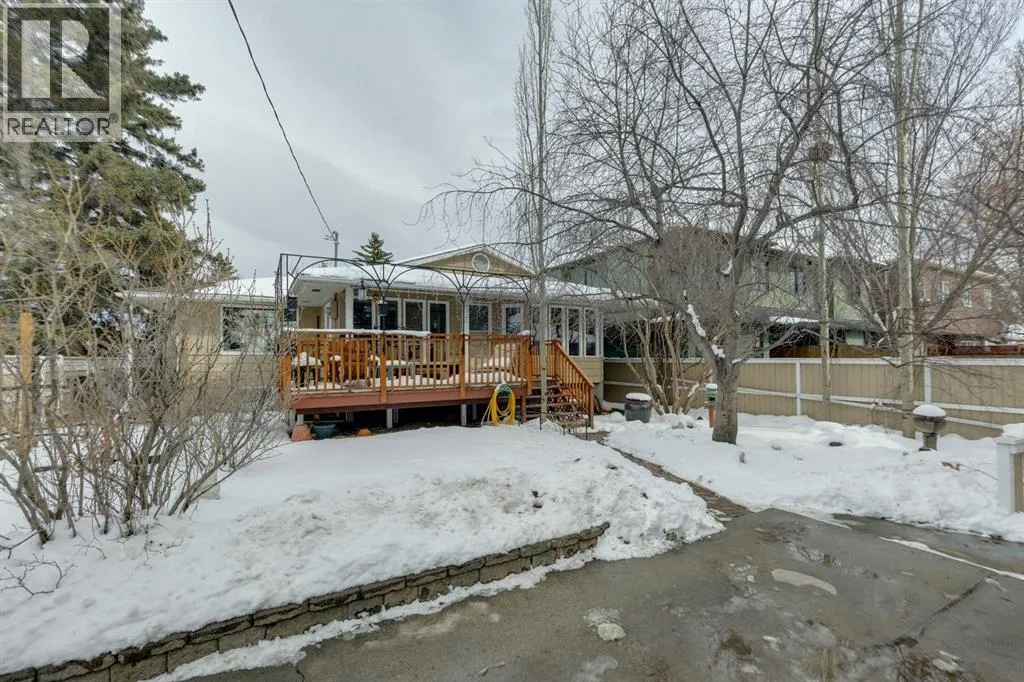 Welcome to an exceptional opportunity in the highly sought-after community of Banff Trail. This prime inner-city location is known for its family friendly atmosphere, proximity to top schools, parks, and unbeatable access to the University, transit, and McMahon Stadium. Situated on a generous sought after 50'x120' corner lot, this property offers incredible potential for redevelopment, investment, or long term holding. The prominent frontage and corner positioning provide added design flexibility and strong future value, making it an ideal candidate for builders, investors, or those looking to secure a premium lot in a rapidly evolving neighbourhood. The impeccable maintained home itself is filled with natural light and character. The main floor features hardwood floors throughout, a bright and open living groom with cozy gas fireplace, and a seamless flow into the dining area. The spacious kitchen includes glass-front cabinets, a convenient pass-through from the dining are to the breakfast nook, and solar tubes that enhance the already abundant natural light. A thoughtfully added den connects to the primary bedroom and provides direct access to the backyard. Two additional bedrooms, one also featuring a solar tube, and a 4pc bath complete the main level. The lower level offers a versatile layout with a. massive rec room, den which can ideally function as a bedroom, 3pc bathroom, laundry area with ample storage and a large workshop. Step outside to enjoy a large deck overlooking the yard and garden, perfect for summer entertaining. The property also includes a single detached garage and storage shed. Whether you're looking to move in, rent out, or redevelop, this property delivers outstanding value in one of Calgary's most desirable inner-city communities. A rare change to secure a corner lot with substantial frontage that's just minutes away from the LRT, Calgary Winter Club, and Confederation Park. (id:27476)