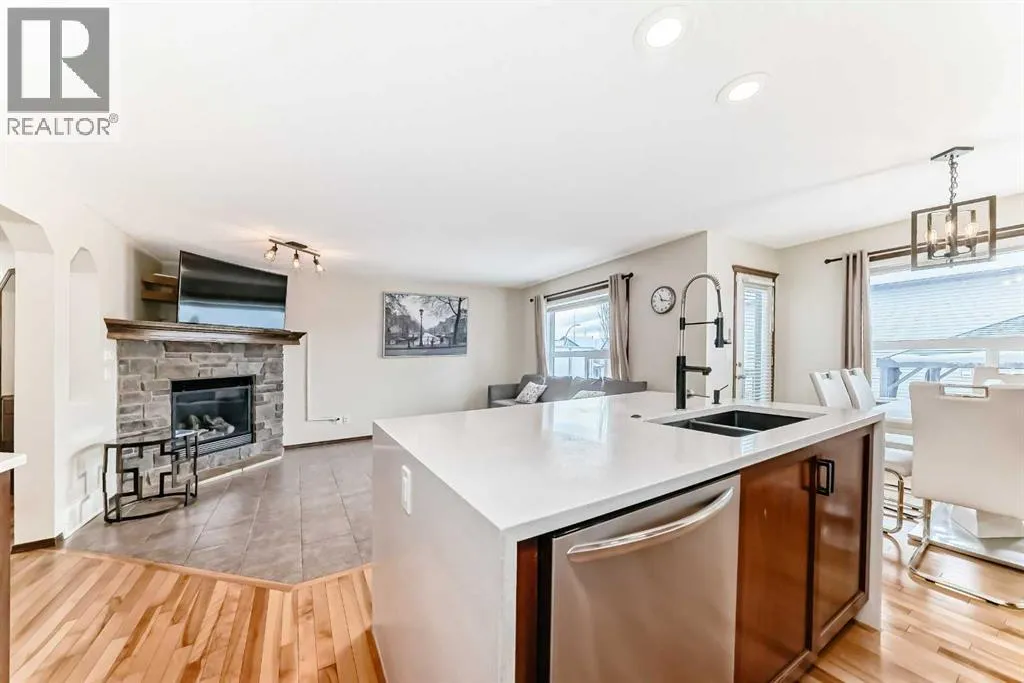 Welcome to this exceptionally well-maintained home that blends comfort, style, and everyday functionality. The open-concept main floor showcases a spacious kitchen featuring contemporary cabinetry, upgraded appliances, a convenient corner pantry, and a large island complete with quartz countertops and elegant waterfall edges.The inviting living room is centered around a stunning stone fireplaceâperfect for cozy eveningsâwhile the bright dining area overlooks the backyard, creating an ideal space for both daily living and entertaining guests.Step outside to enjoy a thoughtfully designed two-tier deck with a gazebo, leading to a private, professionally landscaped yardâperfect for outdoor relaxation. Upstairs, a generous bonus room with built-in cabinetry and a gas fireplace offers a versatile space for family gatherings or a quiet retreat. The primary bedroom features a walk-in closet and a well-appointed four-piece ensuite. Additional bedrooms are comfortably sized and share a full bathroom. The fully developed basement provides valuable extra living space, including a fourth bedroom, a full bathroom, and ample storage. A double attached heated garage with an epoxy-coated floor and built-in shelving adds both practicality and convenience. Ideally located close to schools, parks, shopping, public transit, and a nearby fire stationâan added benefit that may help reduce insurance costsâthis home offers an outstanding combination of lifestyle and location.Donât miss this opportunityâbook your showing today, as this property is sure to attract strong interest! (id:27476)