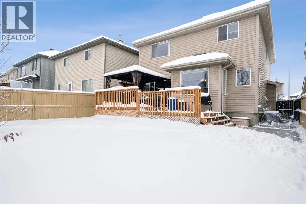 WELCOME TO THIS LOVINGLY MAINTAINED ONE-OWNER TWO-STOREY HOME WITH A DOUBLE ATTACHED GARAGE IN THE SOUGHT-AFTER COMMUNITY OF COVENTRY HILLS! Pride of ownership shines throughout, offering 2,368 SQ FT of functional living space, a family-friendly layout, and thoughtful upgrades including a newer roof (2022), new attic insulation and venting (2022), central air conditioning (2020), garage door (2025), and a newer deck with adjacent concrete pad (2021).Step inside to an open-concept main level designed for both everyday living and entertaining. The spacious living room features a cozy gas fireplace and large windows, creating a bright and inviting atmosphere. The kitchen is well-appointed with updated appliances, a center island, and a convenient pantry, seamlessly connecting to the dining area and overlooking the backyard. Step outside to the deck and concrete pad with back alley access, complete with two natural gas lines for a BBQ and fire table perfect for summer gatherings or relaxing outdoors. A powder room and laundry area complete the main level.The upper level showcases a unique split staircase leading to a versatile bonus room, ideal for a family lounge, home office, or gym. The spacious primary bedroom offers a peaceful retreat with a walk-in closet and a large 4-piece ensuite featuring a soaker tub and separate shower. Two additional well-sized bedrooms and a shared 4-piece bathroom complete this level, providing excellent space for growing families.The fully finished, professionally completed and permitted basement adds even more functional living space, featuring a recreation room, a fourth bedroom, and rough-ins for a future bathroom offering flexibility for customization.The double attached garage is fully insulated, providing added comfort and convenience year-round.The location is hard to beat with quick access to Deerfoot Trail and Stoney Trail, making commuting around Calgary simple. Calgary International Airport, shopping centres, transit hubs , and the Vivo Recreation Centre are all nearby. Families will love having multiple schools within walking distance, including rare Kâ12 access within the community, along with a bus stop for the elementary school just steps outside the home. Enjoy an abundance of walking paths, bike trails, parks, and green spaces close by.A move-in ready home offering space, comfort, and an unbeatable location. (id:27476)