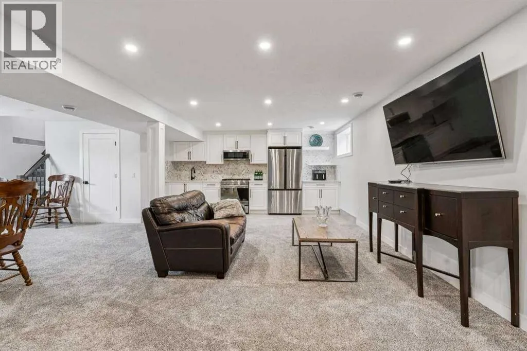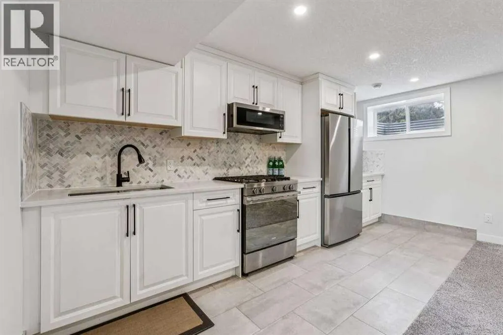 For more information, please click the "More Information" button. Welcome to this Custom Fully Remodeled Luxury Bungalow on a massive lot in the heart of Braeside. This stunning home boasts impeccable curb appeal with every detail finished to the highest quality. The exterior features new Hardie board siding, new Concrete landscaping with a grand entrance front deck area. As you step inside you are greeted with an abundance of natural light from the new oversized windows. The spacious and bright open concept floor plan features Premium 7" wide Luxury Vinyl Plank flooring that flows seamlessly throughout the main floor complimented with a modern wood burning Glass Fireplace. The new chefâs inspired gourmet kitchen is a true centerpiece featuring New S/S Appliances, Quartz Countertops with an Elegant Hexagon Marble backsplash and a massive Island with double functional storage on either side. Custom Solid Wood Maple Cabinetry compliments the kitchens, bathrooms, and entry way throughout the entire home. Adjacent is a generous dining area perfect for family and friend gatherings. The spacious master bedroom oasis retreat features a new oversized window. A custom 4 Piece ensuite with double sinks, an oversized Luxurious shower and walk-in-closet. Also, all bedrooms are furnished with custom closet solutions which significantly increase storage and functionality. Additionally, the main floor boasts 2 more spacious bedrooms, an elegant 4 piece main bathroom with floor to ceiling cabinetry for added storage with an upstairs laundry for convenience. The lower level has a separate entrance with an fully finished illegal basement suite which includes: a full kitchen with S/S appliances, 2 generous sized bedrooms, oversized new windows and a gorgeous 3-piece bathroom complimented with a secondary laundry facility. Additionally, there is a new 2 stage high-efficiency furnace and 60G high-efficiency hot water tank. There is side yard access for vehicle entry into the massive ba ckyard featuring a patio area with a custom fire pit. Donât miss out on this exceptional beautiful property that combines luxury and functionality in a prime location. (id:27476)