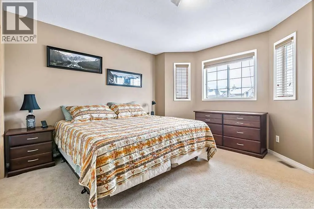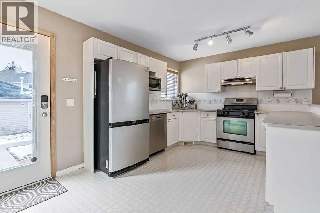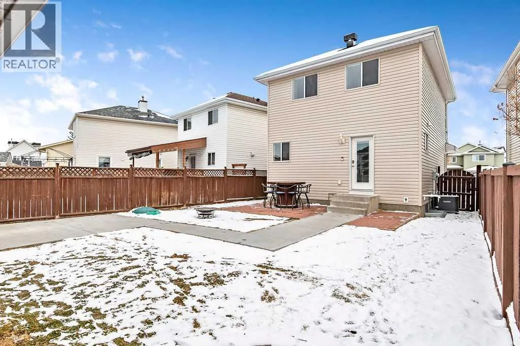 Welcome to this beautifully maintained open-concept two-storey home in the desirable community of Chaparral! Boasting fantastic curb appeal with neutral stone and siding, this inviting property offers both comfort and functionality for modern family living. Step inside to a spacious foyer that flows into a bright and airy family room, where large front bay windows fill the space with natural light. The heart of the home is the stunning WHITE kitchen, complete with stainless steel appliances, a gas stove, built-in dishwasher, and a massive walk-in pantry with wood shelving. The generous eating bar is perfect for casual dining or entertaining guests. From the kitchen, enjoy easy access to the backyard patio, fully fenced yard, and double insulated garage with an additional parking pad. A convenient 2-piece bath completes the main level. Upstairs, youâll find three well-appointed bedrooms and a 4-piece main bathroom. The spacious primary retreat features its own bay window and a private 4-piece ensuite. The fully developed basement offers a large recreation/family roomâperfect for movie nights or a kidsâ play areaâalong with a laundry and storage space that provides plenty of room for future development. Additional highlights include air conditioning and a private backyard ideal for summer BBQs and cozy evening fires, a concrete walkway, and extra parking beside the garageâperfect for an RV or additional vehicles. Situated on a quiet street and close to schools, parks, and shopping, this home truly has it all. A must-see! (id:27476)