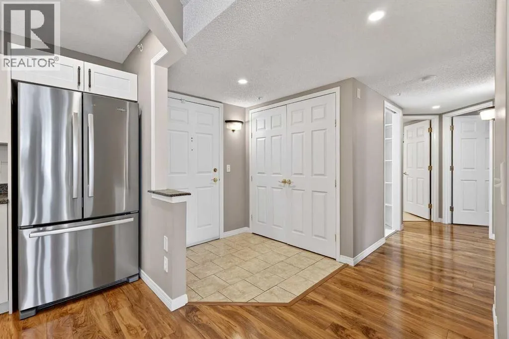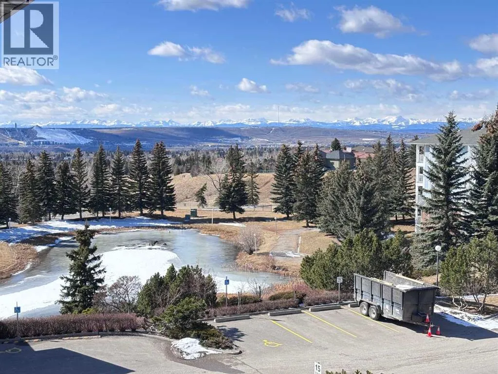 Welcome to Dream View Village in the highly sought-after community of Hawkwoodâan exceptional 55+ complex offering comfort, community, and incredible views. This beautifully updated top-floor unit features an open, large & thoughtfully designed living space with no shared walls, providing a rare level of privacy and quiet. This bright 2-bedroom, 2-bathroom home includes a spacious primary suite with ensuite, updated flooring, fresh paint, and a functional kitchen with modern stainless steel appliances. The open-concept living area leads to your private balcony where you can take in stunning west-facing mountain, pond, and city viewsâa truly special feature. Additional highlights include in-suite laundry, air conditioning, titled underground heated parking, and a private secure storage locker. Residents enjoy access to an impressive amenities list and clubhouse building featuring a carwash, woodworking shop, rentable guest suites, clubhouse building w/ exercise classes, games room with pool tables and shuffleboard, crafting areas, and a large social space for gatherings. Ideally located near Crowfoot amenities, walking paths, and transit, this home offers a low-maintenance lifestyle in a welcoming and vibrant community. (id:27476)