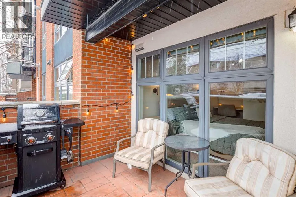 Welcome to an exceptional opportunity in vibrant Renfrewâwhere convenience meets character. This unique main-floor residence offers the rare advantage of a private exterior entrance for quick access without having to go through the building, paired with a bright, patio complete with a gas hookupâideal for sunrise coffees and effortless summer grilling.Spanning 582 sq. ft., the thoughtfully designed interior is flooded with natural light through expansive floor-to-ceiling windows and kept comfortable year-round with in-floor heating. The contemporary kitchen is both stylish and functional, showcasing rich maple cabinetry, polished quartz countertops, stainless steel appliances, and a versatile eating bar thatâs perfect for casual dining or entertaining.The well-appointed bedroom features a generous double closet along with a dedicated workspace nookâperfect for those working from home. A clean, modern four-piece bathroom, in-suite laundry, and premium Hunter Douglas window coverings add everyday comfort and practicality.This unit also includes a covered parking stall (#1) and an assigned storage locker (#2), ensuring all your needs are met. Residents of Adora enjoy access to a rooftop terrace with sweeping downtown skyline views, as well as the convenience of elevator access.Situated just steps from the Bow River pathway system, local parks, the Calgary Zoo, and the vibrant shops and cafés of Renfrew and Bridgeland, this location offers an unbeatable urban lifestyle with quick access to downtown and transit.Whether youâre a first-time buyer or investor seeking a turnkey property, this move-in-ready condo delivers on all fronts. Schedule your private showing today!! (id:27476)