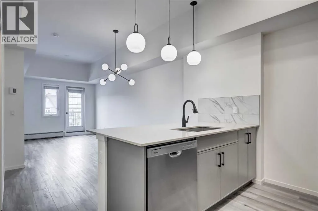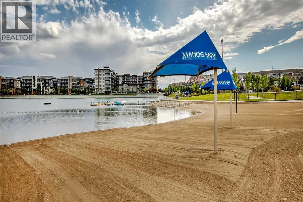 Step into a lifestyle that feels like a getawayâevery single day. Welcome to Sandgate at Mahogany, built in 2025, where lakeside living meets everyday convenience in one of Calgaryâs most vibrant, sought-after communities.Perched on the top floor, this beautifully designed 1-bedroom, 1-bath condo offers soaring ceilings and an airy, open feel that instantly feels like home. Sunlight pours into the living space, highlighting the modern finishesâquartz countertops, sleek luxury vinyl plank flooring, and brand-new Whirlpool stainless steel appliancesâall thoughtfully chosen to blend style with effortless living.The kitchen flows seamlessly into the dining and living areas, creating the perfect space to unwind or entertain. Just beyond, your private balcony overlooks the peaceful courtyard and is already roughed-in for A/C and a gas lineâideal for summer BBQs and quiet evenings outdoors.Your spacious bedroom becomes a true retreat, complete with soft carpeting, a walk-through closet, and direct access to a semi-ensuite bath. A generously sized laundry room with extra storage adds to the everyday ease this home offers. All utilities included except power.But what truly sets this property apart is the lifestyle. From your doorstep, youâre moments from the energy of Westman Villageâboutique shops, cafés, restaurants, and fitness studiosâall woven into a walkable, community-focused setting. Spend your days at Mahoganyâs private Beach Club, where you can paddleboard, swim, fish, or simply relax by the water. Parks, pathways, playgrounds, and dog parks are all just steps away. This unit comes with 1 titled parking stall. With access to a resident fitness studio, guest suites, and a pet-friendly environment, this home is perfect for first-time buyers, downsizers, or investors looking for something special.This isnât just a condoâitâs a lifestyle. Pack your bags and start living it. (id:27476)