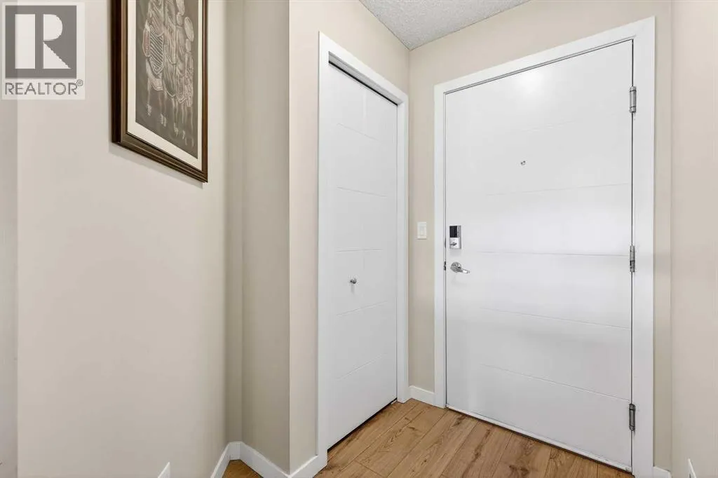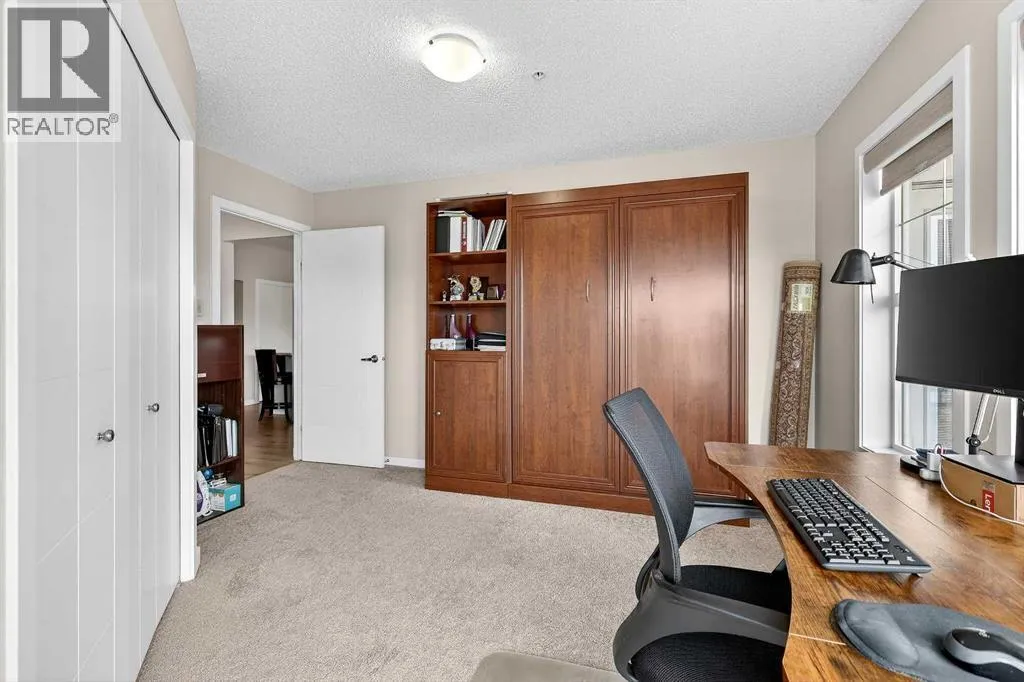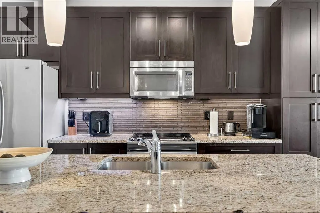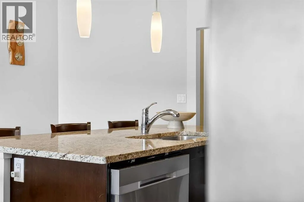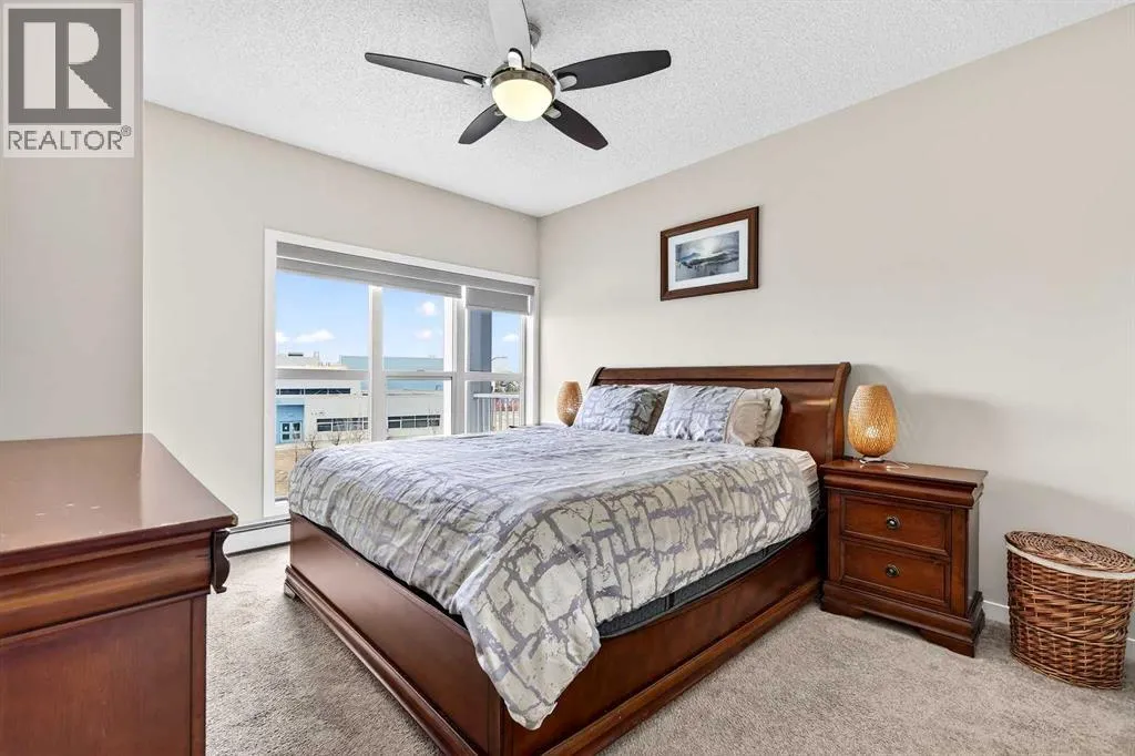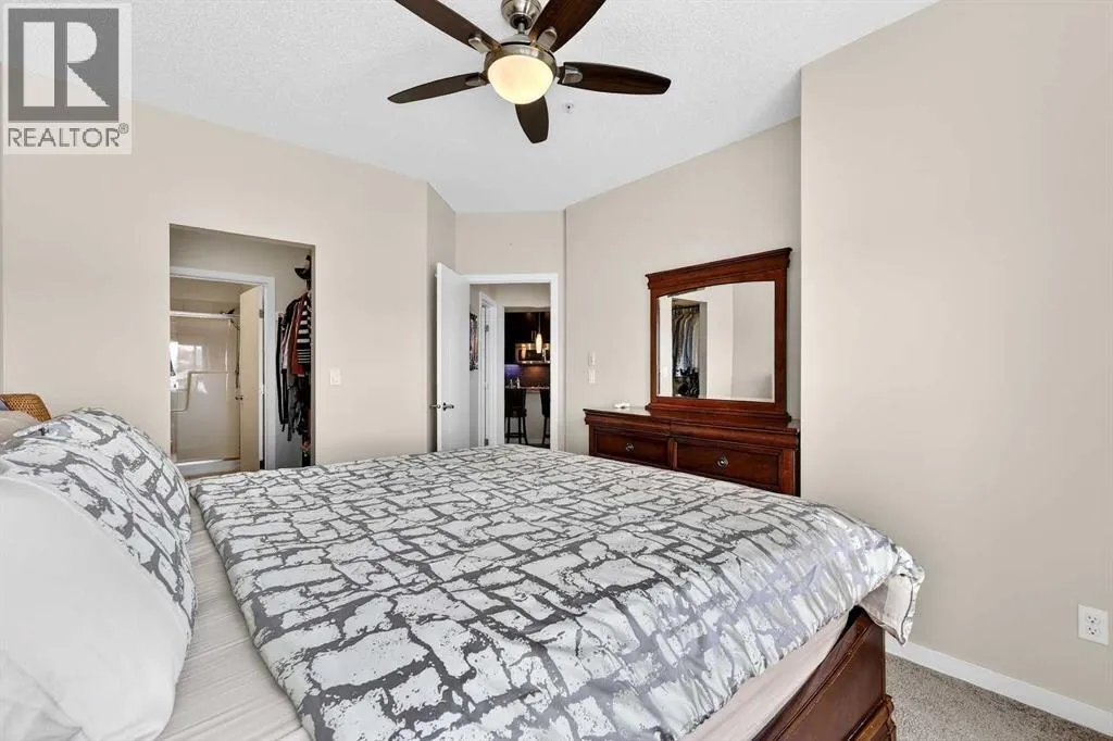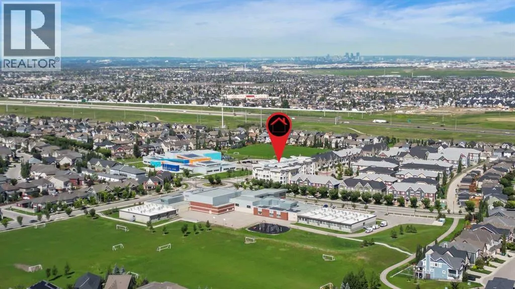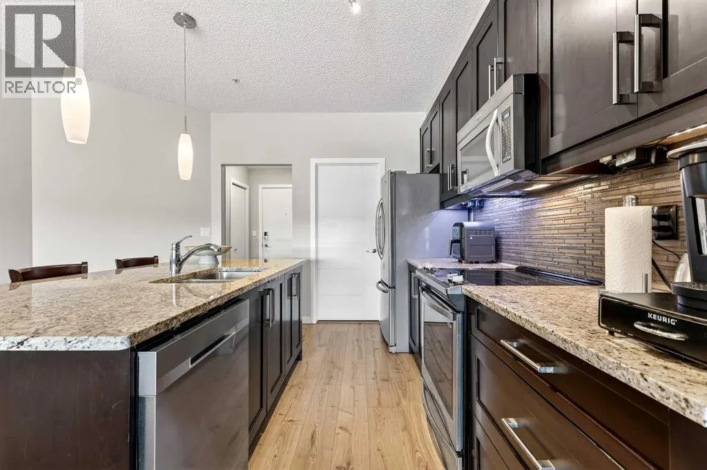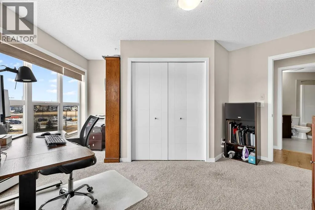 Welcome to Ebony in Mahoganyâwhere elevated condo living meets the beauty and lifestyle of Calgaryâs premier lake community. Perfectly positioned on the third floor with a coveted southwest exposure, this stunning and spacious apartment offers one of the largest floorplans in the complex, paired with an abundance of natural light and thoughtful design that sets it apart from the rest. From the moment you step inside, you are greeted by soaring ceilings just under 9 feet and oversized windows in both the living room and primary suiteâcreating a bright, open atmosphere that feels expansive and inviting. Bathed in warm evening sunlight, this home offers a truly special ambiance to be enjoyed throughout all four seasons. The kitchen is both stylish and functional, featuring rich dark cabinetry, elegant granite countertops, and a full stainless steel appliance package. A generous walk-in pantry provides exceptional storage and organization, while in-suite laundry adds everyday convenience. The kitchen flows seamlessly into the open-concept living and dining area, where warm-toned laminate flooring grounds the space and creates a cohesive, welcoming feel. The primary suite is a peaceful retreat, complete with a walk-through closet and a beautifully appointed 3-piece ensuite featuring granite countertops, timeless tile flooring, and an oversized walk-in shower with sleek glass doors. The second bedroom is equally impressive, offering a unique layout with a charming niche perfect for a reading nook, a Murphy bed for added versatility, and easy access to the 4-piece main bathroomâideal for guests or family. This home is loaded with additional features that elevate everyday living, including air conditioning, a spacious private deck with BBQ gas line, and the rare bonus of two tandem parking stalls. Residents of Ebony also enjoy access to an on-site fitness facility, playground, visitor parking, and the added peace of mind that comes with nearby traffic-calming school zones. The location is simply unbeatableâjust a few blocks from Mahoganyâs private lake and beach club, and directly across the street from two schools. Enjoy endless opportunities for outdoor living with nearby parks, pathways, and playgrounds, along with convenient access to shopping, dining, and major routes in and out of the community. This is more than a condoâitâs a lifestyle defined by light, space, and the vibrant energy of lake living. If youâve been searching for a home that offers exceptional design, incredible exposure, and everyday comfort in one of Calgaryâs most sought-after communities, this is the one. (id:27476)