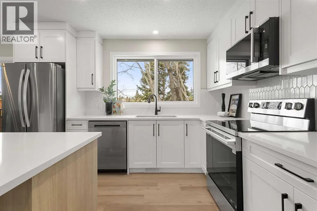 Beautiful 4-level split home in desirable Queensland, just steps from shopping, parks, schools, and a dog parkâperfect for families.The main level features a bright, open-concept layout with a welcoming foyer highlighted by a stylish feature wall. The spacious living room is filled with natural light and overlooks the front yard. The modern kitchen offers ample cabinetry, a central island, and a full stainless steel appliance package. The dining area opens onto a large new deck and a generous backyardâideal for entertaining. The oversized backyard is a blank canvas ready for your visionâcreate your dream garden, outdoor retreat, or even build a large garage to suit your needs.Upstairs, youâll find a comfortable primary bedroom, two additional bedrooms, and a full bathroomâperfect for a growing family.The lower level is designed for relaxation and entertainment, featuring a cozy family room with a brick fireplace, along with a game room complete with a wet bar.The basement adds even more living space with two additional bedrooms and another bathroomâideal for guests, extended family, or a home office setup.This move-in-ready home has everything you need in a fantastic locationâjust unpack and enjoy! (id:27476)