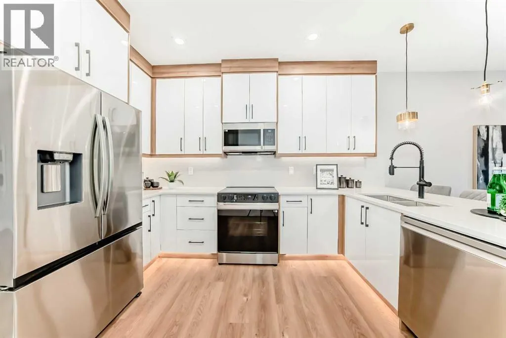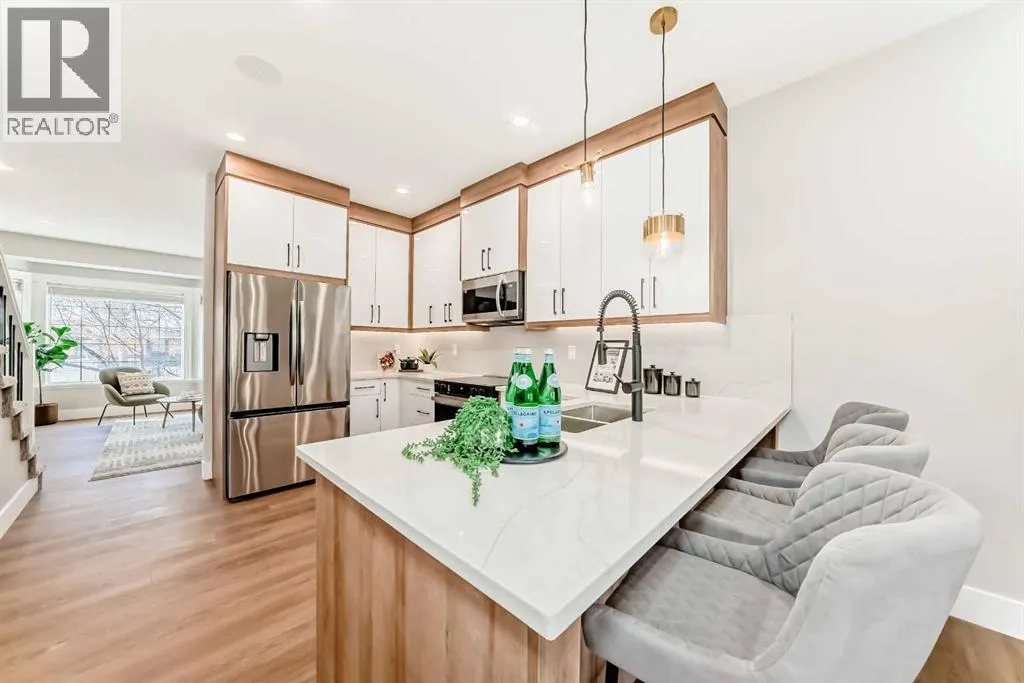 Welcome to this beautifully refreshed semi-detached home in the highly sought-after inner-city community of Windsor Park. Known for its central location and charm, Windsor Park offers an exceptional lifestyle just minutes from downtown. Enjoy being a short stroll from the shops, dining, and everyday conveniences of Britannia Plaza, as well as easy access to the scenic Britannia Ridge and Calgaryâs extensive pathway network. Inside, the home has been thoughtfully updated with new flooring throughout, along with a beautifully renovated kitchen and refreshed bathrooms, creating a clean and modern feel from top to bottom. The primary suite is a true standout, showcasing a stunning vaulted ceiling. Enjoy the luxury of two walk-in closets and a spacious ensuite complete with a soaker tub and separate shower. The upper level also features two additional bedrooms, a main bathroom, and convenient upper-level laundry. Outside, the low-maintenance backyard offers a great outdoor space to enjoy with minimal upkeep. Additional upgrades include on-demand hot water, air conditioning, and a new furnace. The basement is well designed for entertaining, featuring a cozy fireplace and a bar area complete with a bar fridge. This level also includes a spacious guest bedroom with its own ensuite, providing comfort and privacy for guests. Storage is a rare find in homes of this style, but this property delivers with a large, dedicated storage room and additional space in the furnace room as well as beautiful built-ins throughout the home. This is an incredible opportunity to own a move-in ready home in one of Calgaryâs most desirable inner-city neighbourhoods. (id:27476)
