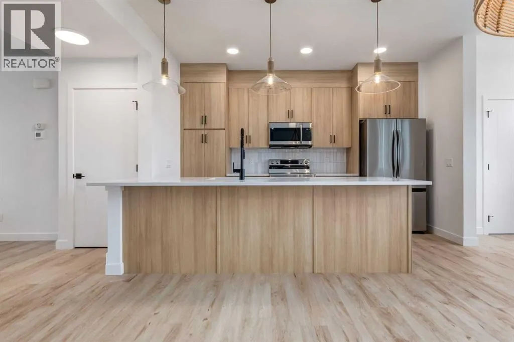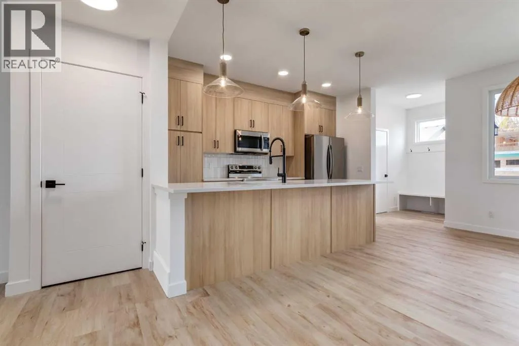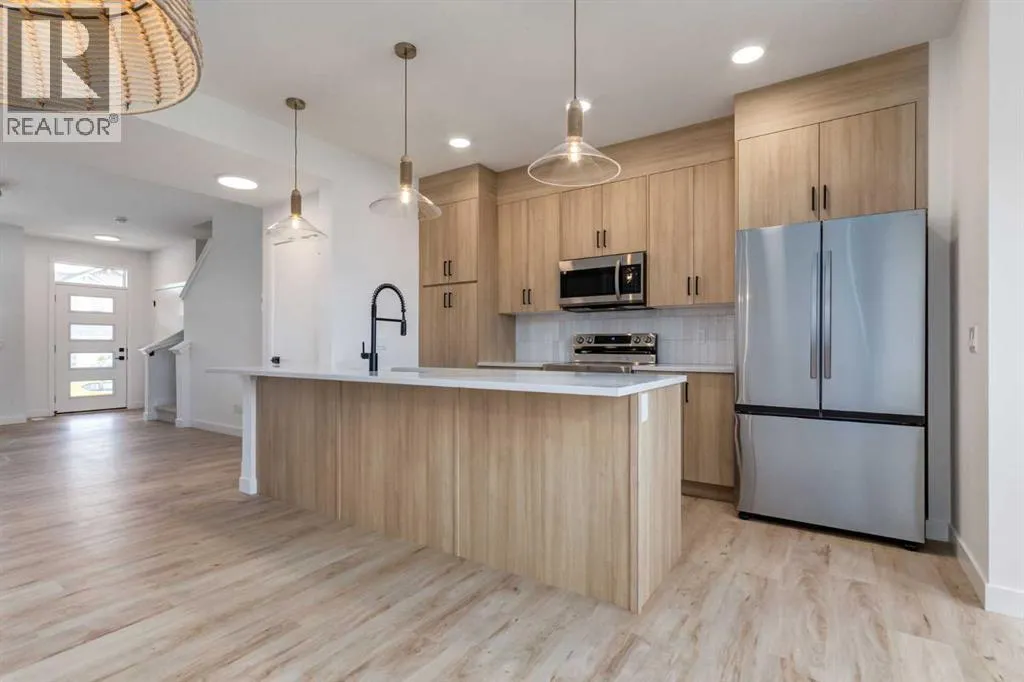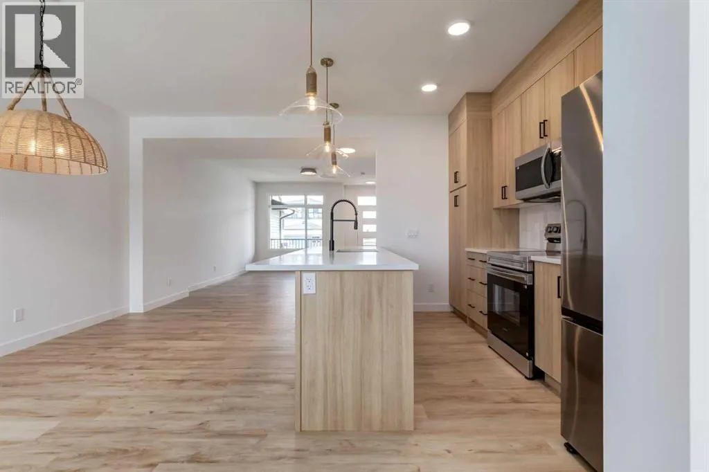 Welcome to the Talo by Rohit Homes in Heartwood, a newly built detached home in one of SE Calgaryâs emerging communities, complete with a separate side entrance and rear double parking pad. Thoughtfully designed with everyday living in mind, this home offers a functional layout and modern finishes throughout. The main floor features a bright, open layout with a natural flow between the kitchen, dining, and living areas. The kitchen is centred around an oversized island, creating a space that works well for both daily use and entertaining. A rear entry with built-in bench and a tucked-away powder room add to the practical design of the main level. Upstairs, the primary bedroom includes a walk-in closet and private ensuite, while two additional bedrooms, a full bathroom, and a central flex space provide flexibility for a home office, study area, or additional living space. Upper floor laundry is conveniently located for everyday ease. Finished in Rohit Homesâ Ethereal Zen interior palette, the home features soft tones and a cohesive, calming aesthetic throughout. A separate side entrance leads to the unfinished basement, offering future development potential. The home is complete with full front and rear landscaping and a rear double parking pad. Located in Heartwood SE Calgary, this home offers quick access to South Health Campus, Seton YMCA, the Calgary Public Library, shopping, restaurants, and planned future schools, parks, and pathways. (id:27476)
