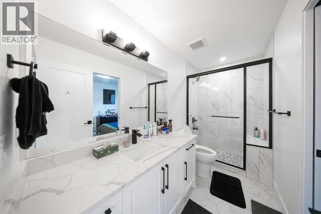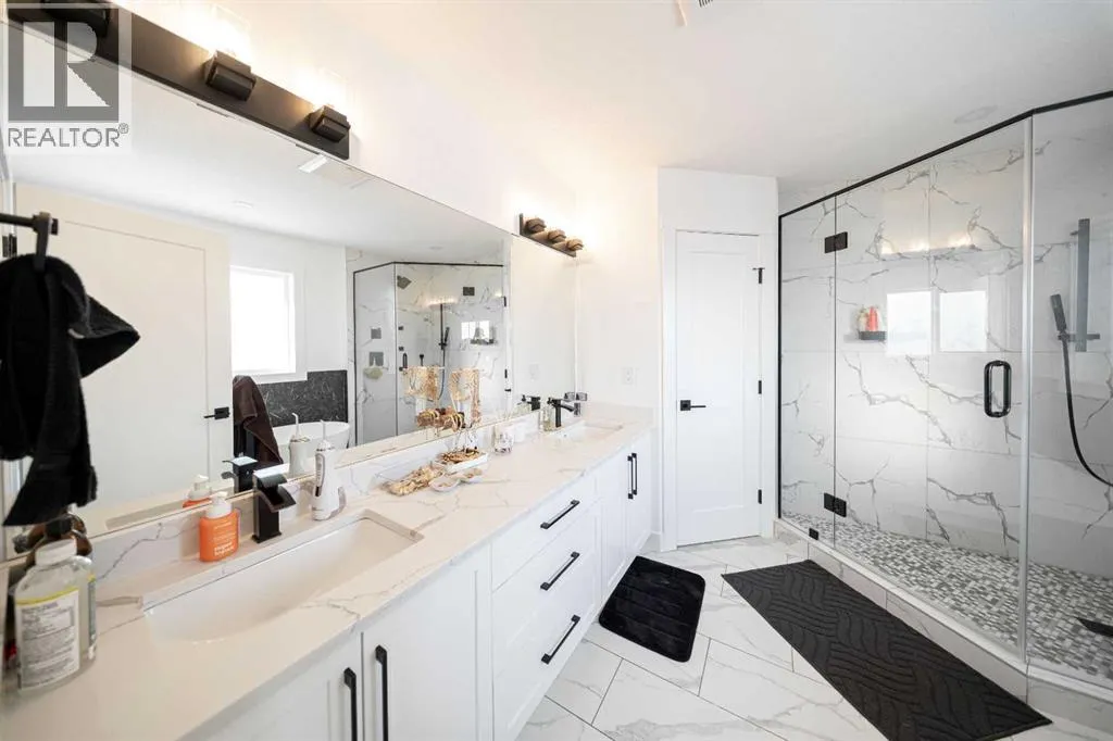 Welcome to 123 Saddlecrest Grove NE a spacious, fully upgraded home offering 2,940 sq ft of above-grade living space plus a 2-bedroom legal basement suite with a private side entrance, perfect for rental income or extended family.The main floor features an open-concept layout with quartz countertops throughout, a bright living area, and a convenient main floor den with a full bathroom ideal for guests or multigenerational living. The gourmet kitchen is equipped with a large island, stainless steel appliances, and a fully functional spice kitchen for all your cooking needs.Upstairs, you'll find 4 generously sized bedrooms and 3 full bathrooms, including a spacious primary suite with a walk-in closet and a luxurious ensuite. A bonus room and upper-level laundry add even more convenience for busy families.Step outside to a well built rear deck, perfect for outdoor dining, summer BBQs, or relaxing evenings. The exterior also features a double car garage and an exposed aggregate driveway, adding both style and durability.Located close to shopping, schools, parks, and major amenities, this home offers comfort, convenience, and exceptional value in a sought-after community. (id:27476)