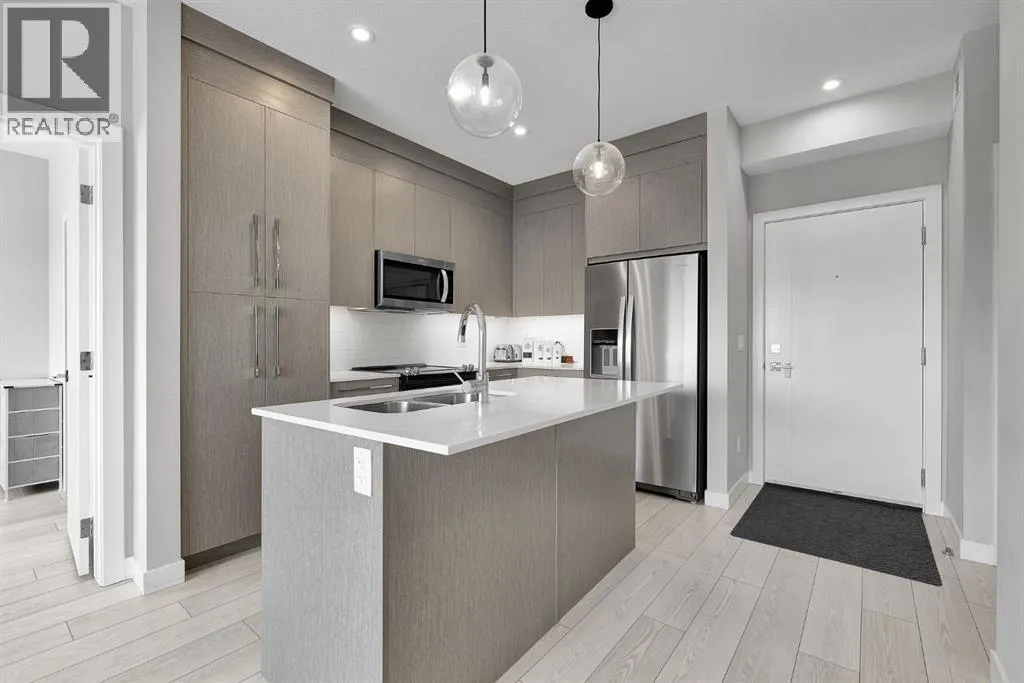 Experience elevated living featuring 2 spacious bedrooms, 2 beautifully appointed bathrooms, and a versatile den, this thoughtfully designed home provides the perfect balance of function and style.Step inside to discover a bright and airy open-concept layout, enhanced by large windows that flood the space with natural light while framing the stunning mountain backdrop. The living and dining areas flow seamlessly together, creating an inviting space for both quiet evenings and effortless entertaining. The top-floor location ensures added privacy, reduced noise, and an elevated sense of tranquility.The modern kitchen is both stylish and functional, featuring sleek quartz countertops, stainless steel appliances, and ample cabinetry, perfectly designed for everyday living and hosting alike.The primary bedroom serves as a peaceful retreat, complete with generous space and a private ensuite bathroom. The second bedroom is equally well-sized, ideal for guests, family, or additional workspace, complemented by a second full bathroom.Enjoy your morning coffee or unwind at the end of the day while taking in the serene mountain views, an ever-changing natural backdrop that enhances the overall living experience.Located in a quiet, well-established neighbourhood, this residence offers a peaceful setting without sacrificing convenience. With easy access to public transit, shopping centres, dining, and everyday essentials, everything you need is just moments away.Additional highlights include secure underground parking and a dedicated storage unit, providing both comfort and practicality.Residents of this meticulously maintained building enjoy a selection of desirable amenities, including a fully equipped fitness centre and a pet spa, perfect for active lifestyles and pet-friendly living.This is a rare opportunity to own a top-floor home that combines scenic beauty, modern finishes, and exceptional convenience in one inviting package. Experience it for yourself, book your private tour today. (id:27476)
