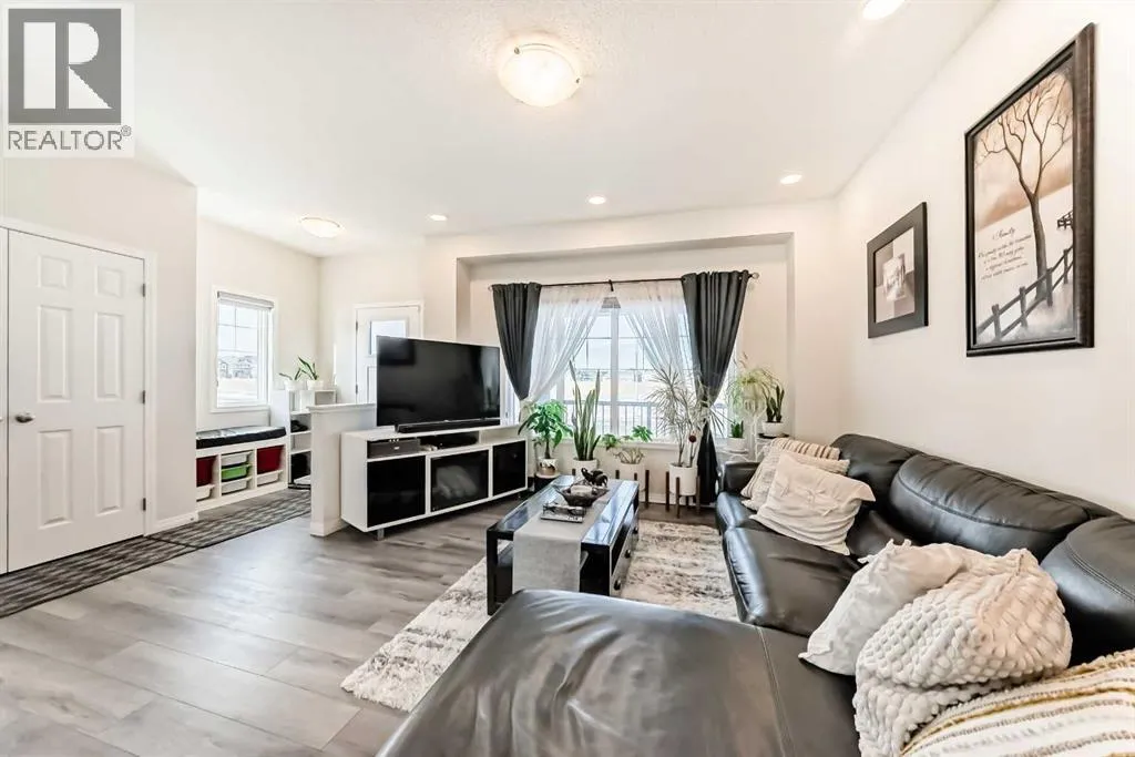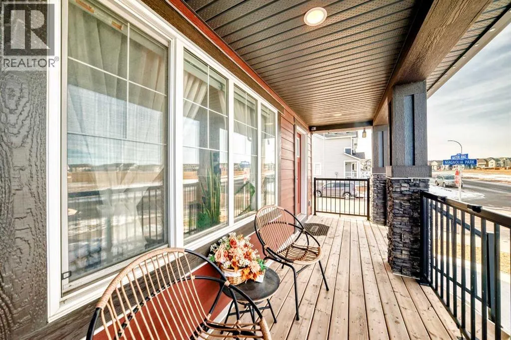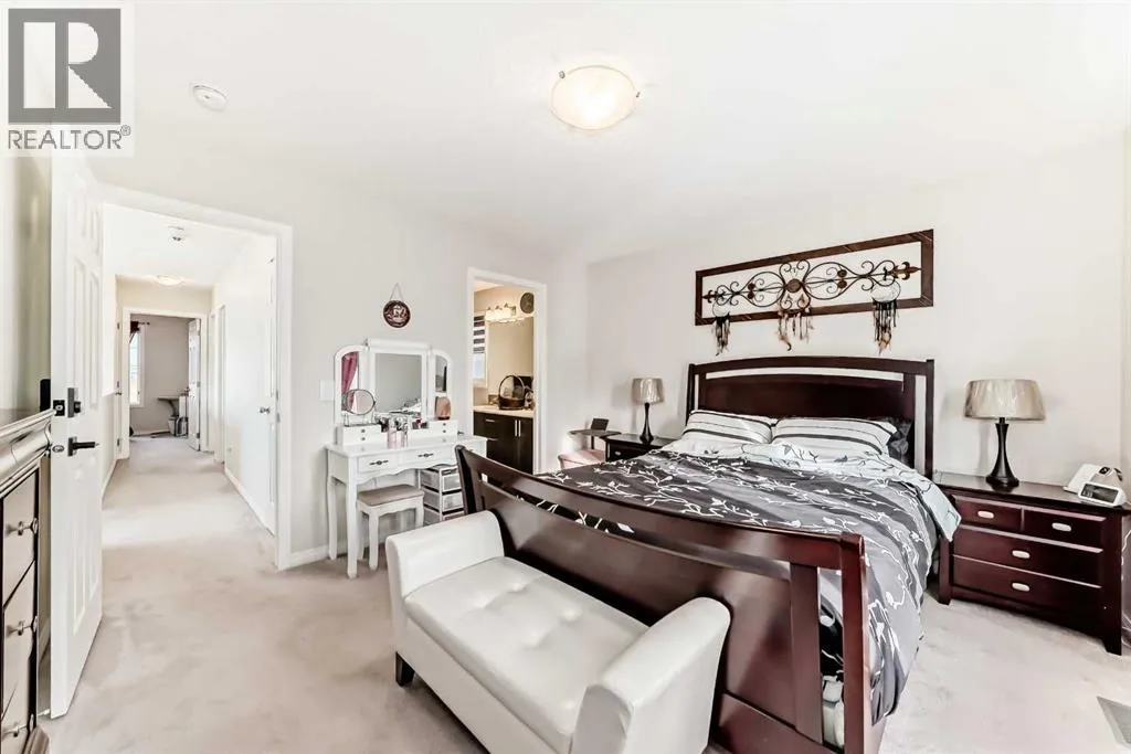 Welcome to this stunning corner lot home with a charming front porch, ideally positioned facing a peaceful green space with no front neighborsâoffering exceptional privacy and tranquilityâin the sought-after Mahogany community. The main floor showcases durable and stylish Luxury Vinyl Plank (LVP) flooring throughout and features a bright, open-concept layout perfect for modern living. At the heart of the home is a chef-inspired kitchen complete with a large island that doubles as a dining table, an electric cooktop with built-in hood fan, refrigerator, microwave, and ample cabinetry. The kitchen flows seamlessly into the dining and living areas, making it ideal for both everyday living and entertaining. The upper level offers a spacious primary retreat with large windows overlooking the green space, a luxurious 4-piece ensuite featuring double undermount sinks, a glass-enclosed shower, and a generous walk-in closet. Two additional bright and well-sized bedrooms, another 4-piece bathroom, and a convenient upper-level laundry room with quartz countertops complete this floor. The fully finished basement with a separate entrance boasts 9-foot ceilings, luxury vinyl plank flooring for easy maintenance, one bedroom, a 4-piece bathroom, a dry bar, and extra storageâperfect for extended family or guests. Enjoy the low-maintenance fenced backyard with concrete throughout, designed for easy outdoor enjoyment. The property also includes a finished, oversized double garageâideal for extra storage or hobby projects. Ideally located close to shopping, schools, playgrounds, tennis courts, parks, and Mahoganyâs renowned beach access, this home offers comfort, functionality, and an unbeatable lifestyle. Donât miss this exceptional opportunityâschedule your private showing today and experience everything this beautiful Mahogany home has to offer. (id:27476)