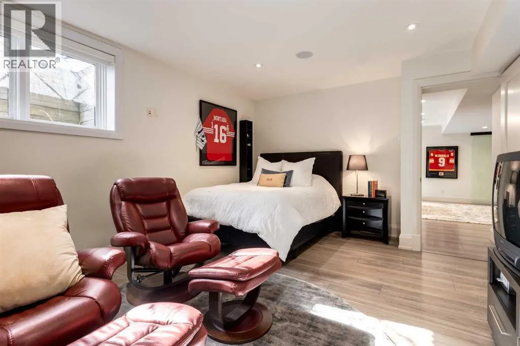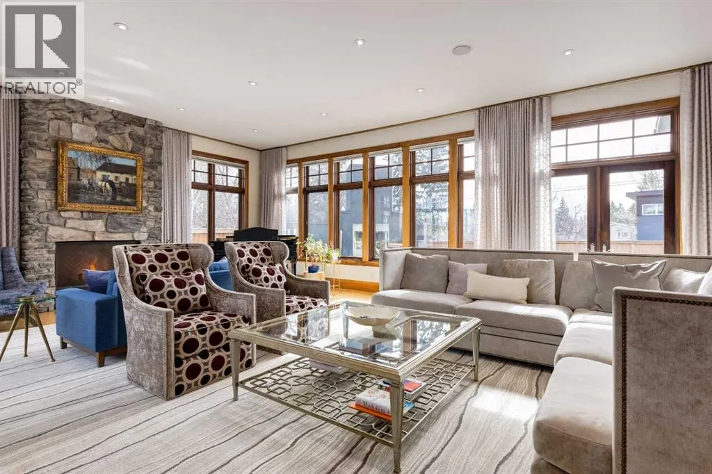Occupying a rare double lot along Madison Avenue in the prestigious community of Elboya, this castle-inspired estate is defined by its striking stone façade and grand scale. Offering over 7,780 square feet of luxury, with six bedrooms, six full and two half bathrooms, the home is thoughtfully designed for elevated family living and exceptional entertaining. A spacious foyer welcomes you inside, while a private office with walnut built-ins and 21â ft vaulted ceilings adds warmth and sophistication. At the heart of the home, the recently refreshed chefâs kitchen features new paint, lighting, and countertops, along with double walk-in pantries, an oversized island, dual dishwashers, wine fridge, and premium appliances including a 6-burner Wolf gas range, integrated Sub-Zero refrigerator, and built-in Miele espresso machine. The kitchen flows seamlessly into the informal dining area and expansive living room, where floor-to-ceiling windows showcase the south-facing backyard and provide direct outdoor access. The main floor is completed by a formal dining room with built-ins, a bedroom with walk-in closet and private ensuite, a thoughtfully designed utility room with skylights, sink, in-floor drain and dedicated A/C - ideal for a dog wash - and a stylish powder room. Upstairs, the primary retreat offers 13â vaulted ceilings, south exposure, a luxurious 5-piece ensuite with steam shower and boutique-style walk-in closet. Two additional bedrooms each have their own ensuites and vaulted ceilings, while a turreted office captures downtown views. A large upper laundry room includes dual washers, dryer, sink, and extensive cabinetry. The recently remodelled lower level is designed for recreation and relaxation, complete with a golf simulator, 6-seater tiered theatre room, wine room, wet bar, and expansive games area. Two additional bedrooms with walk-in closets and private ensuite bathrooms provide ideal accommodations for guests or older children. A wood-panelled elevator sea mlessly connects all three levels. Mechanical features include in-floor heating, dual furnaces, multiple boilers, hot water heaters, and new air-conditioning units. Car enthusiasts will appreciate the rare quad subterranean garage with epoxy flooring and snow-melt driveway. The south-facing backyard is built for year-round enjoyment, featuring a screened patio with built-in BBQ/prep space and overhead heater, wood-burning fireplace, seating area, gated dog run, and raised garden. A heated front walkway ensures seamless winter maintenance. Ideally located near picturesque Elbow River pathways and Stanley Park, this exceptional property offers a truly elevated lifestyle in one of Calgaryâs most sought-after inner-city communities. (id:27476)