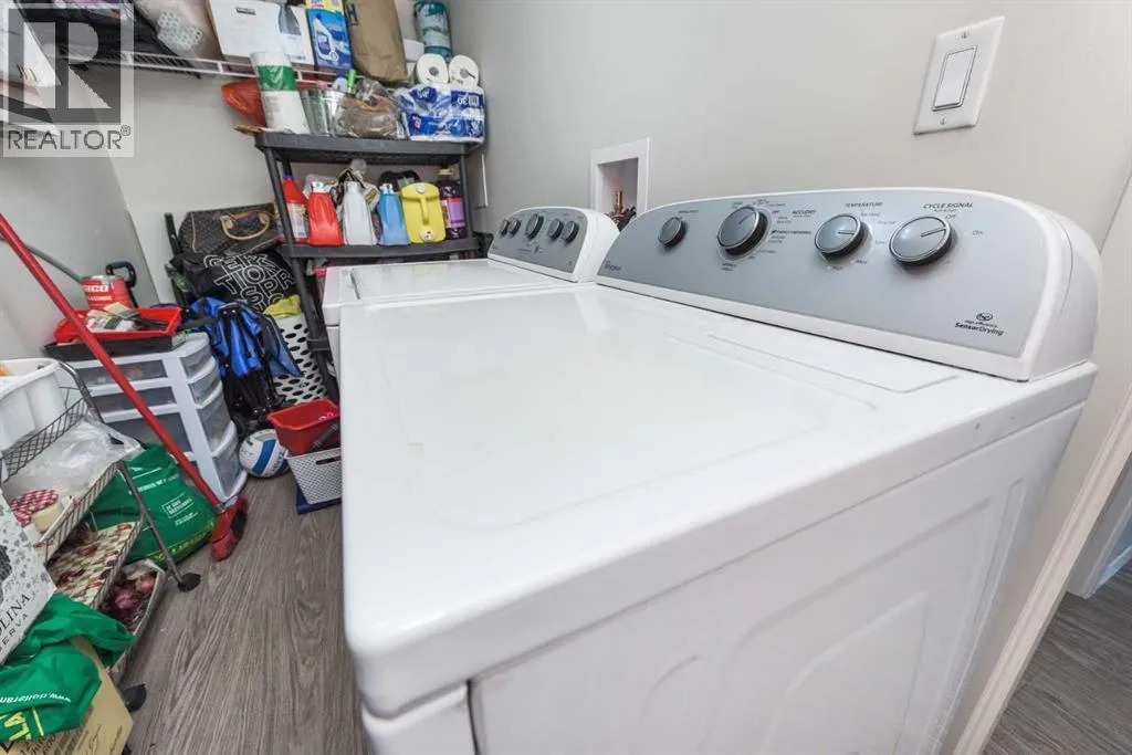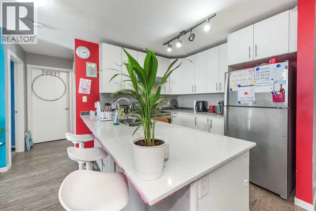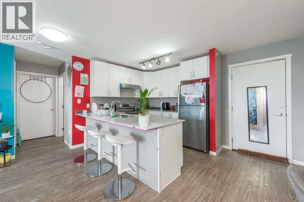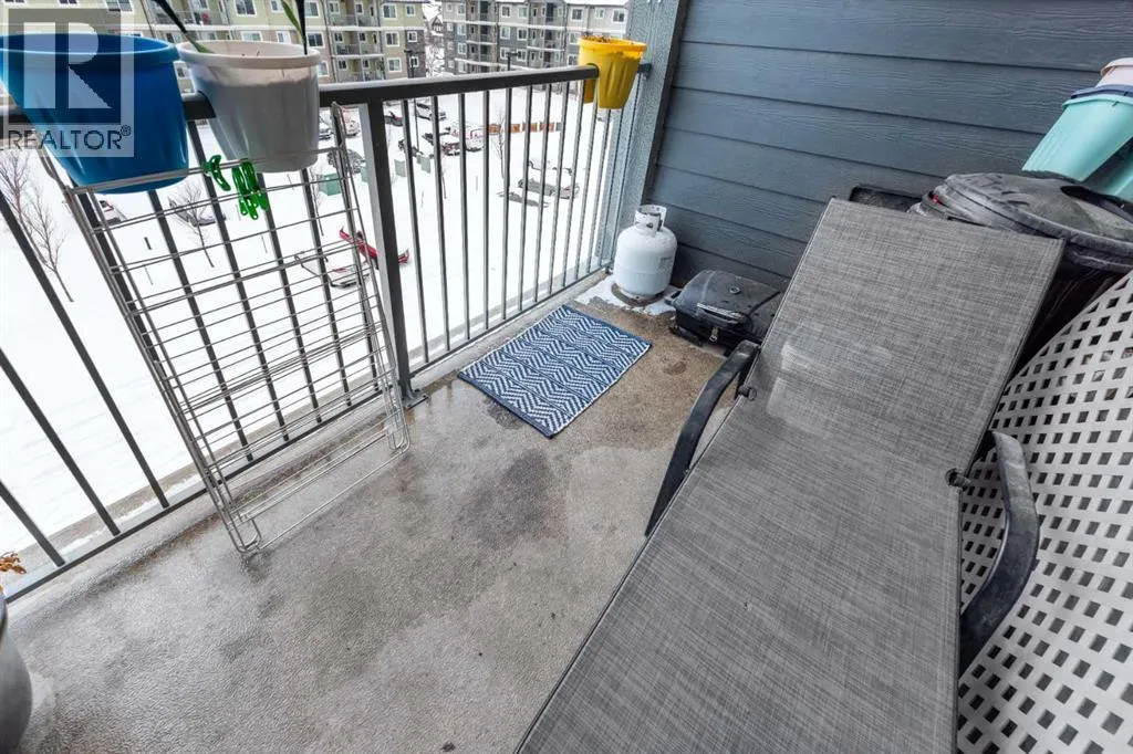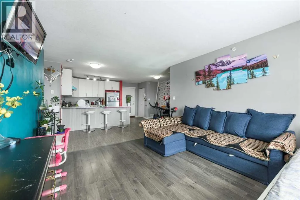 WELCOME to this Top floor 2 bedroom condo in a 4 storey high apartment building. The impressive noise reducing features include triple pane windows and floor & wall assemblies engineered to provide top rated soundproofing. This spacious unit 839 sqft boasts an open floor plan with contemporary island kitchen, with white quartz countertops, stainless steel appliances and laminate flooring. The Dining space is ideal for entertaining family and friends. Abundance of storage including large laundry room with washer and dryer. The garden door opens to the large covered South facing balcony with ample space for relaxing and year round BBQ's. SOUTH FACING BALCONY MEANS SUN LIGHT THE WHOLE DAY. BUILDING COMPLEX FEATURES THE ENTERTAINMENT FACILITY WHICH INCLUDES THE FITNESS GYM AND PARTY HALL WITH FULL KITCHEN THAT HAS A GATHERING CAPACITY UPTO 25 PERSONS . The titled, heated underground parking and 35 plus visitor parking stalls completes this lovely home. Enjoy an affordable carefree lifestyle. Near by Amenities Includes various shopping plazas including restaurants, Dollar store, and Gas stations, Combined Primary and secondary School is at the walking distance, Calgary International Airport is 10 minutes away. Building complex also features Bicycle storage, fenced pet play area and vegetable grow garden which includes elevated grow beds. (id:27476)