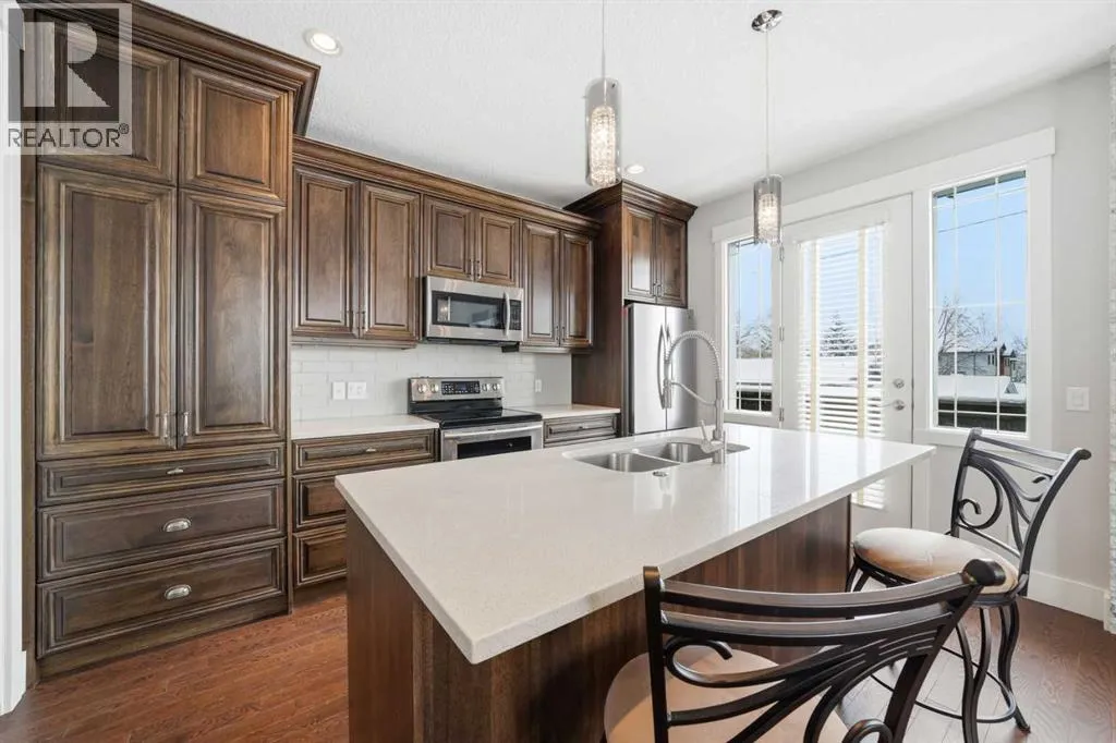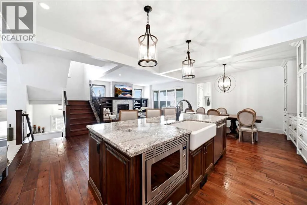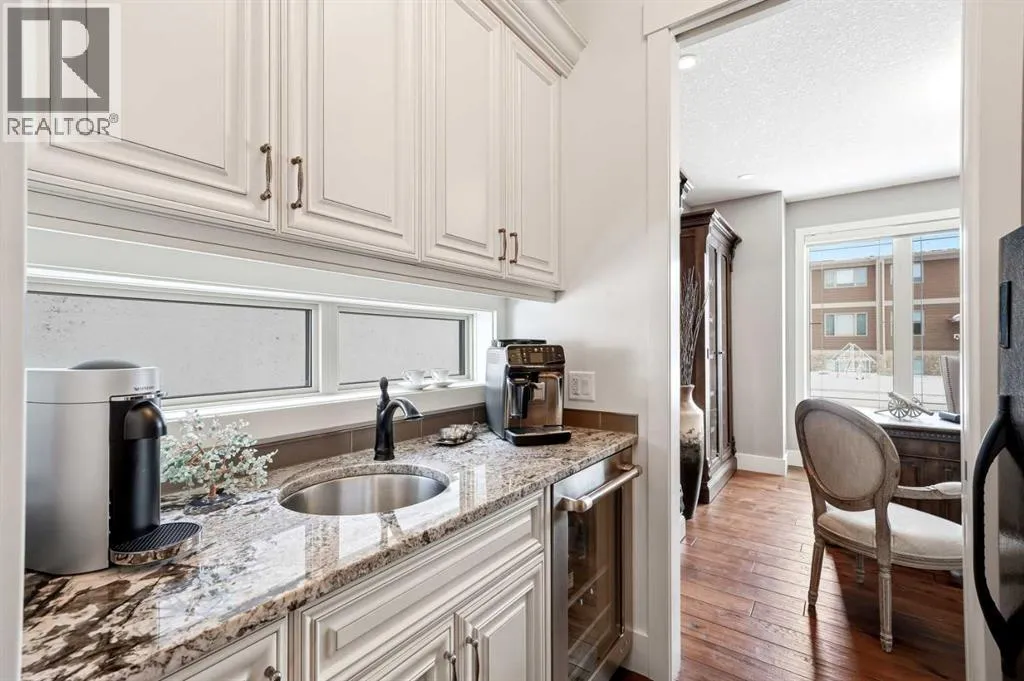 Welcome to this exceptional, one-of-a-kind custom residence in Bridgeland, one of Calgaryâs most sought-after inner-city communities. This remarkable property immediately stands out with its LEGAL 832SQFT EXECUTIVE SUITE ABOVE THE OVERSIZED TRIPLE CAR GARAGE & an impressive 4200SFT+ OF TOTAL LIVING SPACE, offering unmatched luxury & income potential. Complemented by 9ft ceilings & hand-scraped hickory floors, you will be blown away by the elegance of the main floor with its grand living room with stone-facing fireplace accented by built-in cabinets, open concept formal dining room with built-in hutch & showpiece chefâs kitchen with granite counters, island with cast iron farmhouse sink, butlerâs pantry & the stainless steel appliances include an Electrolux fridge/freezer (36â each) & double convection ovens, 36â gas cooktop & wine fridgeâ¦ALL FROM JENN-AIR. The hickory floors continue up to the 2nd floor & into the 3 big bedrooms; the private West-facing ownersâ retreat has a large walk-in closet & luxurious ensuite with free-standing soaker tub & marble-topped double vanities, glass shower & HEATED FLOORS. Completing this level is the family bath with double sinks & laundry room with chute & LG washer/dryer. A 4th bedroom & full bath are in the beautifully finished lower level, along with a home gym with cork floors, another set of laundry hook-ups & rec room with fireplace & 5.1 surround sound, built-in cabinets & wet bar with 150+ bottle capacity wine room with solid maple racks. Main floor also has a fantastic home office & mudroom with built-in lockers & walk-in closet. Fully fenced & landscaped West backyard with covered deck with fireplace & gas BBQ line, hot tub with pergola & access into the detached 3 car garageâ¦equipped with workbench & built-in cabinets, 220V & roughed-in for electric heater). And the piece-de-resistance is the SELF-CONTAINED & AIR CONDITIONED 832SQFT 1 BEDROOM LEGAL GARAGE SUITE â with its own separate furnace & hot water tank, onsite ha rdwood floors & quartz counters, living room with fireplace & balcony, maple kitchen with stainless steel appliances (including a new GE dishwasher in 2024) & full bath with adjoining laundry. Additional features of this truly incredible home include HUNTER DOUGLAS blinds & built-in speakers (interior & exterior), new Rinnai tankless water heater (2025), irrigation, 2 vacuflo systems (main house & garage/suite), closet organizers & solid core doors, 6â baseboards, Kohler toilets, triple-pane LUX windows, 9ft ceilings throughout & upgraded insulation. As one of Northwest Calgaryâs most desirable & walkable inner-city neighbourhoods, Bridgeland is home to popular parks & schools, trendy restaurants & cafes, boutiques & just minutes to St. Patrickâs Island & the zoo, LRT, the Bow River & downtown. (id:27476)