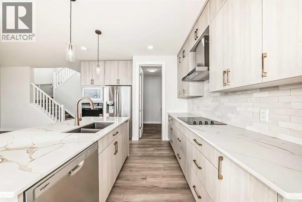 Brand new home built by Shane homes and has many upgrades throughout the whole house, awaiting you and your family. The home starts with a bedroom attached to the full washroom on the main floor. The open kitchen/living room area has a spice kitchen off the side, hosting a gas range. The main kitchen has stainless steel appliances, a hidden garbage/recycle drawer, an electric cooktop and amazing views of the green space and lake out the back deck. The backyard has 15 meters to the back fence, quite a large lot!! Beyond the fence is a conservation pond. The upstairs contains a primary bedroom with walk in closet, an ensuite bathroom and large windows that allow natural light to flow through with stunning views. Three additional bedrooms, a bonus room, and a laundry room are also located on the second floor. The undeveloped basement is spacious with lots of natural light and a walk out to the backyard. (id:27476)