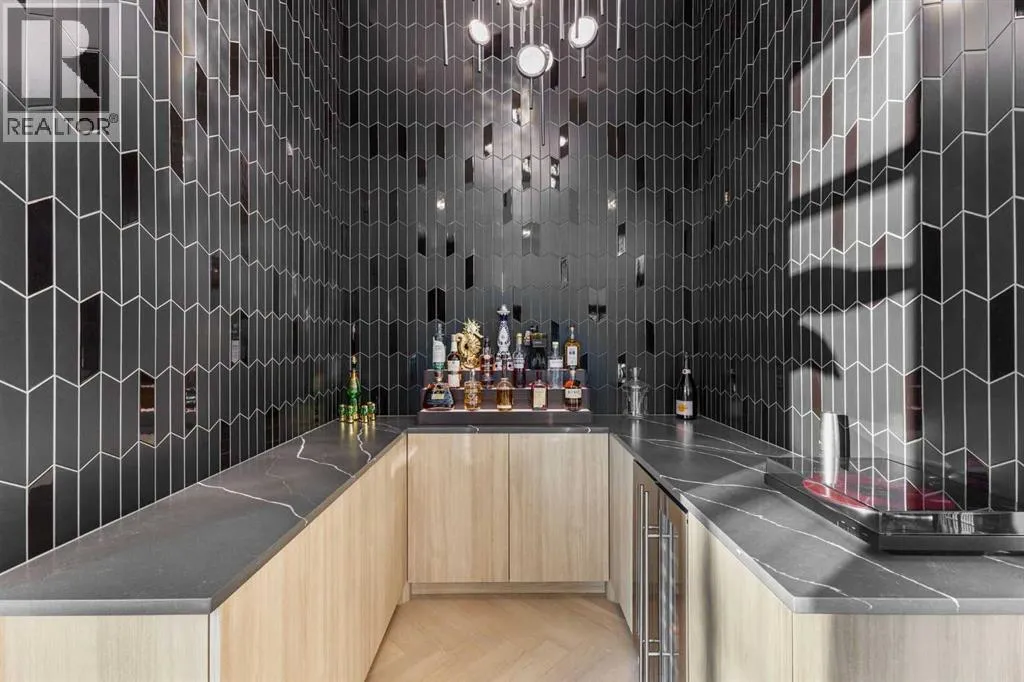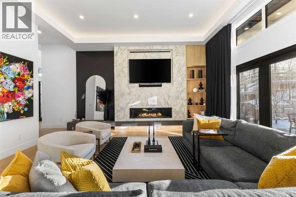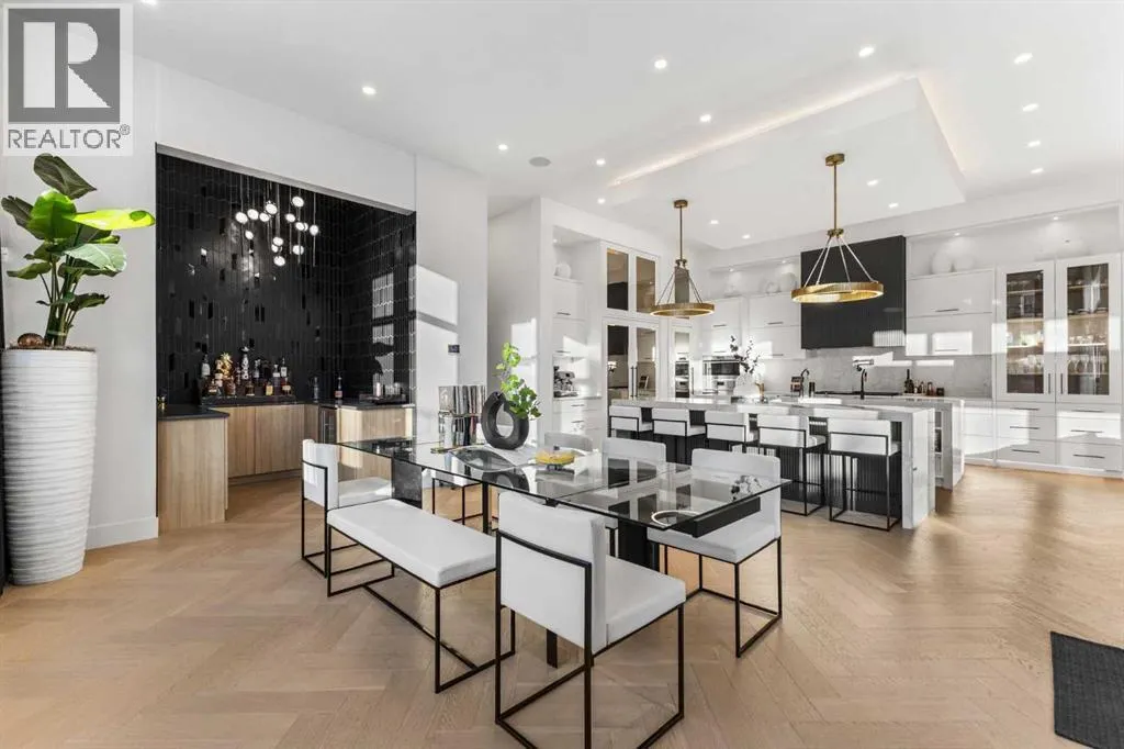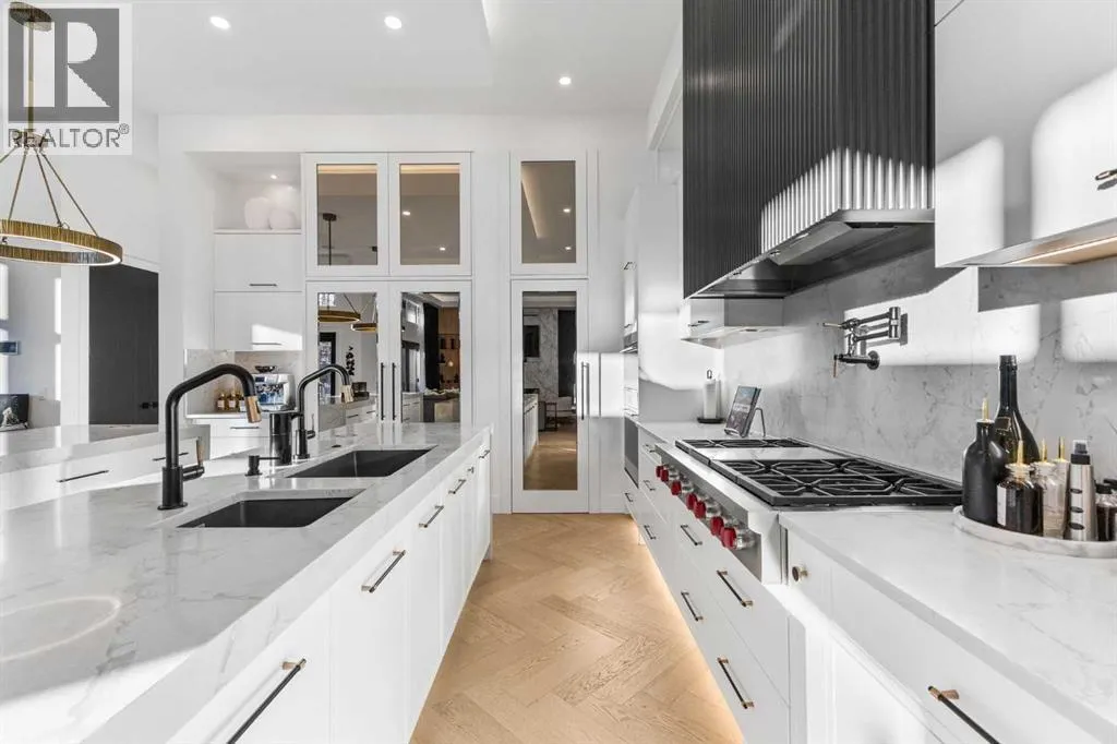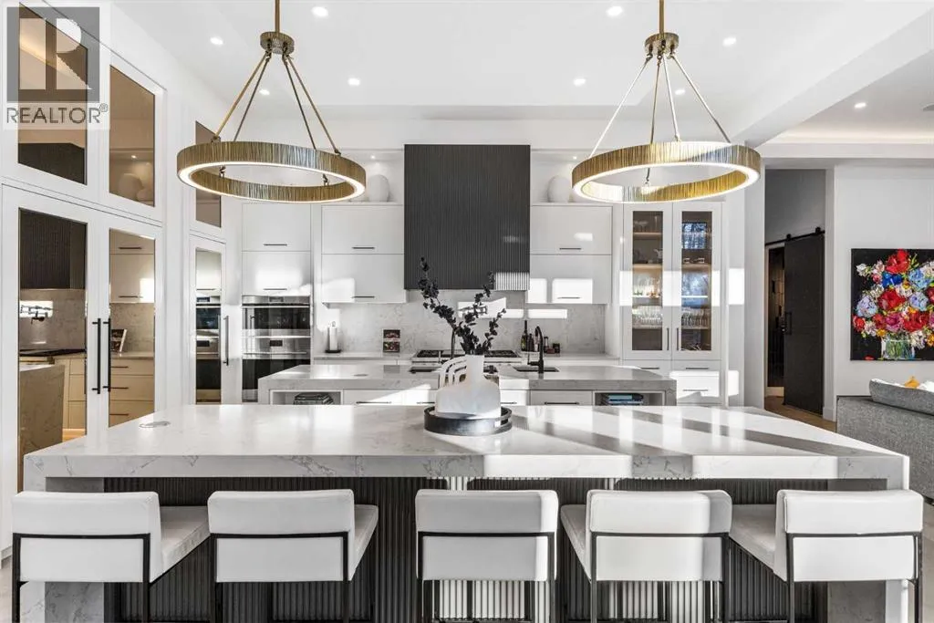 Homes like this don't come up often. Almost 7,000 sq ft of total living space, soaring 12-foot open-concept ceilings on the main floor, Sub-Zero and Wolf appliances, full Control4 automation, triple pane windows, motorized blinds and custom drapes throughout, and the kind of finishes that make it clear no corners were cut this is the kind of property that stops you the moment you walk through the door.The main floor is built for real life and serious entertaining. The kitchen is expansive with a walk-in pantry and a servery right beside the dining room, making hosting seamless from start to finish. Two accordion doors open wide from the main living area directly to the deck and yard, making the transition from indoor to outdoor entertaining completely seamless. The living room is generous without feeling cavernous, and there's a proper main-floor office for those who work from home and need a space that feels like one. A main-floor bedroom with its own ensuite rounds things out beautifully ideal for guests, in-laws, or a nanny suite.Upstairs, the 9-foot ceilings keep things feeling spacious without the grandeur of the main floor just the right scale for a private retreat. The primary suite is the kind of space you don't want to leave. His closet is massive and hers is something else entirely, the kind of boutique-style dressing room that makes getting ready feel like an occasion. A spa-calibre 5-piece ensuite w Steam Shower completes the retreat. Two more bedrooms and a 4-piece bath complete the upper floor, along with a dedicated laundry room right where you need it. The lower level is a genuine surprise and at 10-foot ceilings, it never feels like a basement. A dedicated gym, a wet bar, a private office, and a fifth bedroom it functions as a home within a home. The first rec room is a true home theatre, originally roughed in for a golf simulator with the infrastructure still in place. The second is a perfect billiards room that connects to the bar exactly as it should. This level handles movie nights, teenagers, and out-of-town guests without anyone feeling on top of each other.Then there's the garage - over 1,100 sq ft with a 10-foot door for the boat, the sled, or whatever oversized toys are in the mix. With the footprint to accommodate car stackers, serious collectors will immediately see the potential here.The outdoor space is something you don't expect until you see it. One of the largest lots in the community at a third of an acre, professionally landscaped and thoughtfully designed for how people actually spend their summers. Underground irrigation keeps everything lush without the effort. Gemstone lighting sets the mood after dark. A gazebo and dedicated firepit area give you every reason to stay outside long after dinner. The upper deck is gas-wired and ready for those evenings that stretch well past sunset. The yard is roughed in for a pool, and backing onto a treed community park means the privacy and greenery extend well beyond your property line. (id:27476)