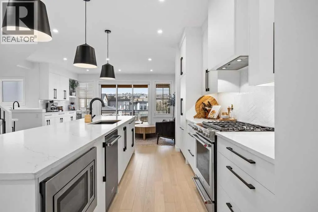 **OPEN HOUSE - Fri Apr 3 (12-2pm) Sat Apr 4 (11-1pm)**Thoughtfully designed and extensively upgraded, this Truman-built home offers over 2,300 sq ft above grade across multiple levels, blending clean, modern design with everyday functionality.From the moment you step inside, the level of finish is evident. Soaring 9â ceilings and 8â doors on the main floor and at the entry create an immediate sense of space, while engineered hardwood floors, designer lighting, and elevated hardware selections carry throughout. Soft-close cabinetry and a cohesive, well-executed palette tie everything together seamlessly.The kitchen is both striking and highly functional, anchored by an impressive 12â quartz island that becomes the natural gathering point of the home. An upgraded appliance package includes a seamlessly integrated Fisher & Paykel refrigerator, along with upgraded laundry appliances, delivering both style and performance.The main living level is bright and open, with generous dining and living areas that flow effortlessly around the kitchen. Whether hosting or enjoying a quiet evening at home, the layout feels connected, comfortable, and intentionally designed. A standout feature is the dedicated wine room, adding a unique and elevated touch for those who love to entertain.Upstairs, the primary retreat is spacious and refined, complete with a fully customized walk-in closet featuring built-in cabinetry and shelving. The ensuite is a true highlight, featuring a beautiful standalone tub that adds a spa-like element to the space. Additional bedrooms, a central family room, and upper-level laundry create a practical and well-balanced upper floor for everyday living.The lower level continues the homeâs versatility, offering a fully developed recreation space ideal for a home gym, along with a 4-piece bathroom. Notably, several areas of the home, including the lower level, garage, and portions of the upper floor, have seen minimal use, contributing to the homeâs exc eptionally well-kept condition.Comfort features include central air conditioning and custom window coverings throughout, with a mix of electronic and manual blinds and shutters.Outside, the backyard is fenced and private with light landscaping, while the patio is equipped with a natural gas BBQ hookup. The oversized double attached garage is finished and heated.Set in a highly desirable location overlooking a cul-de-sac and open space, this home offers a sense of openness and separation that is rarely found in newer construction.A meticulously maintained, thoughtfully upgraded home in a setting that truly stands out. (id:27476)