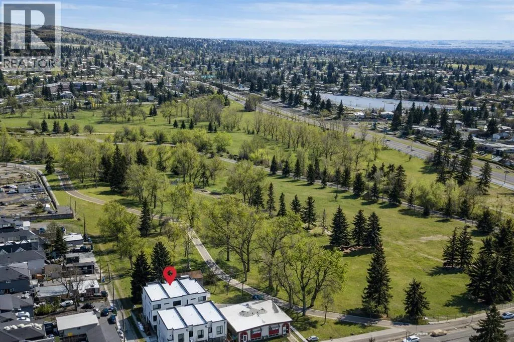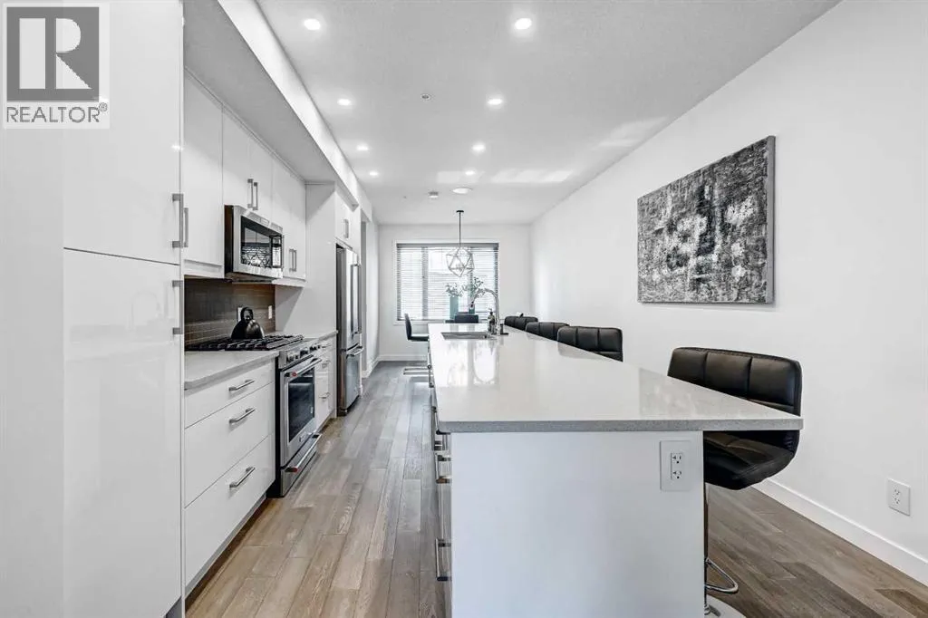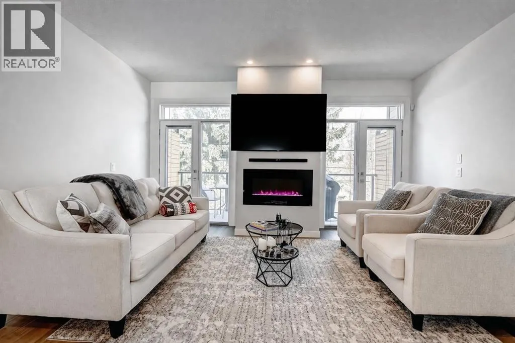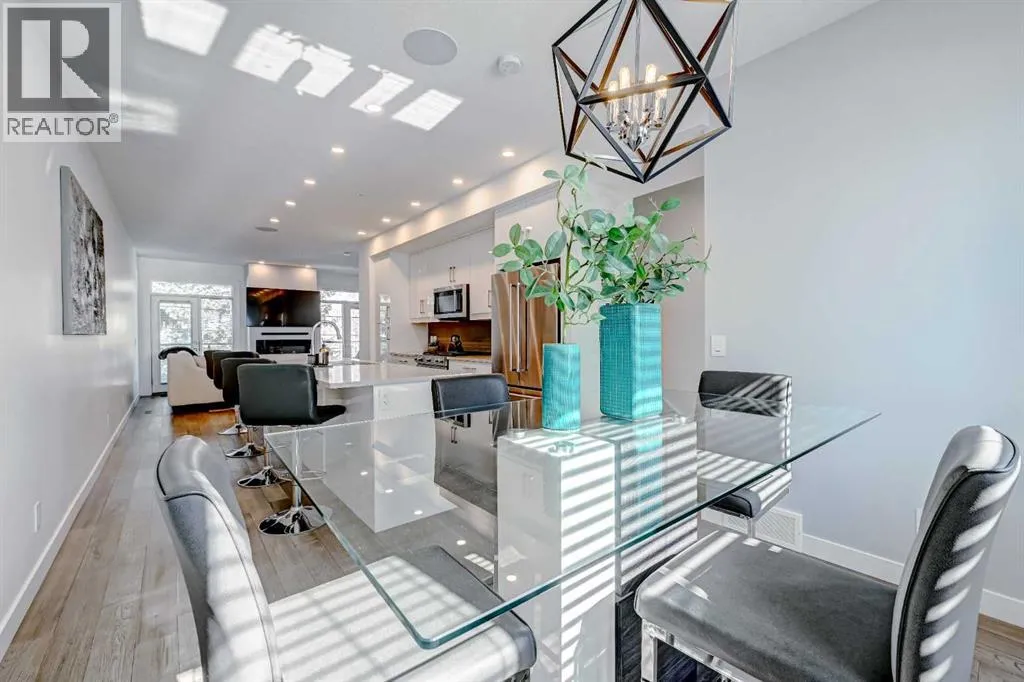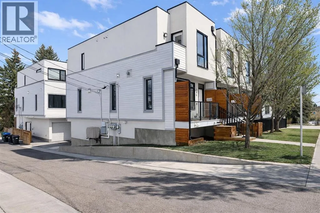 Backing directly onto Confederation Park, this immaculate 3 storey townhouse offers a rare combination of space, privacy, and an unbeatable inner city location in the heart of Capitol Hill. As the largest unit in the complex, with all three levels above grade, pride of ownership is evident throughout.The main level features a private bedroom with a 3 piece ensuite, ideal for guests or a home office along with convenient access to the attached garage. Upstairs, the bright and inviting second level is designed for everyday living and entertaining, showcasing a cozy living room with an electric fireplace and direct access to a park facing deck complete with a gas line for your BBQ. The stunning kitchen is the centerpiece of the home, featuring high-end stainless steel appliances, a huge quartz island with seating for six, generous cabinetry, a built-in speaker system, and a spacious dining area, complemented by a convenient 2-piece bathroom.The top floor is a true retreat, offering a spacious primary bedroom with a Juliet balcony overlooking the park, a luxurious 5-piece ensuite with heated flooring, and a huge walk-in closet. A speaker system is also included in the primary bedroom. An additional well-sized bedroom, a 4-piece bathroom, and convenient upper-level laundry on the same floor as the bedrooms complete this level. The home also includes rough-ins in all other rooms for future speaker installation, with the A/V receiver included by the seller, allowing for easy expansion to a whole-home audio system.Enjoy year-round comfort with air conditioning and the unparalleled lifestyle of stepping directly from your home into Confederation Park. A rare opportunity in one of Calgaryâs most desirable inner-city communities. (id:27476)