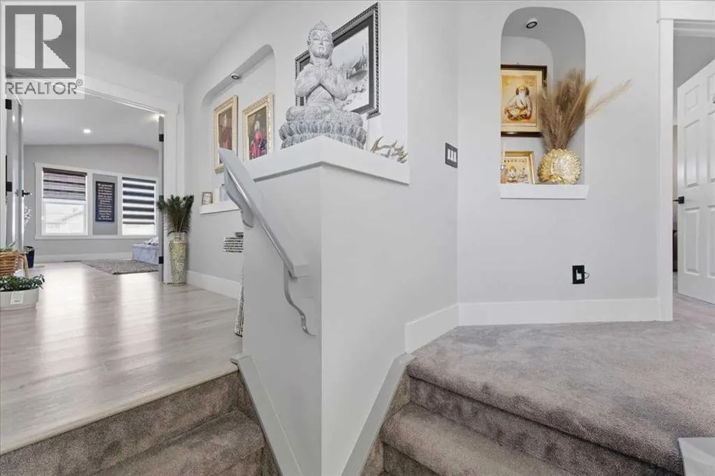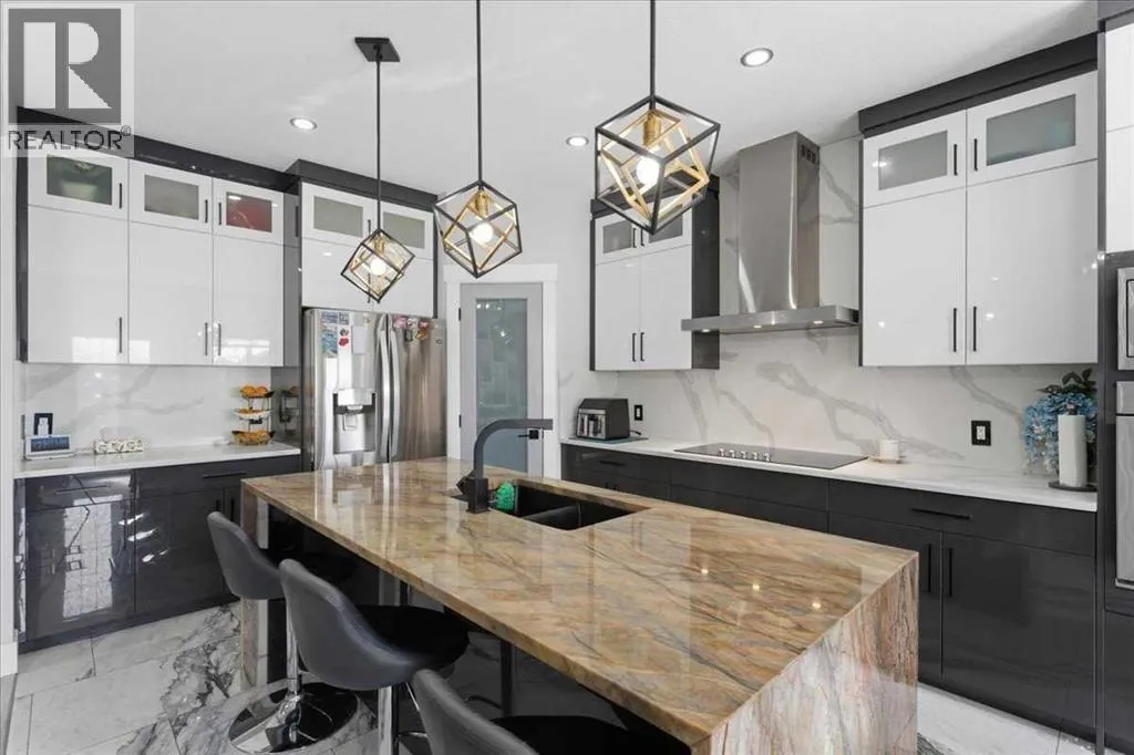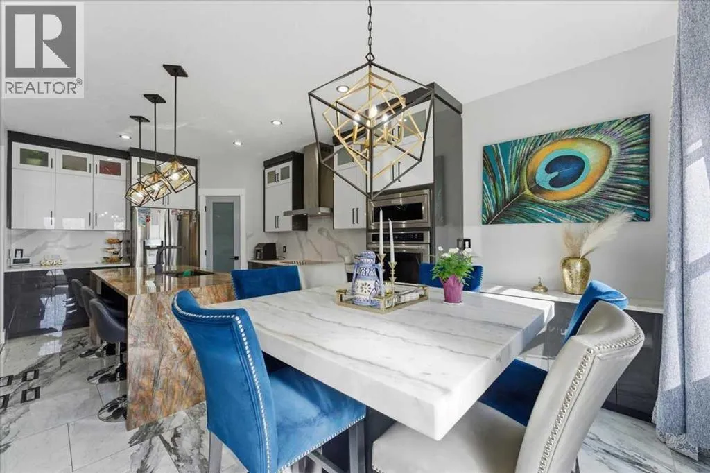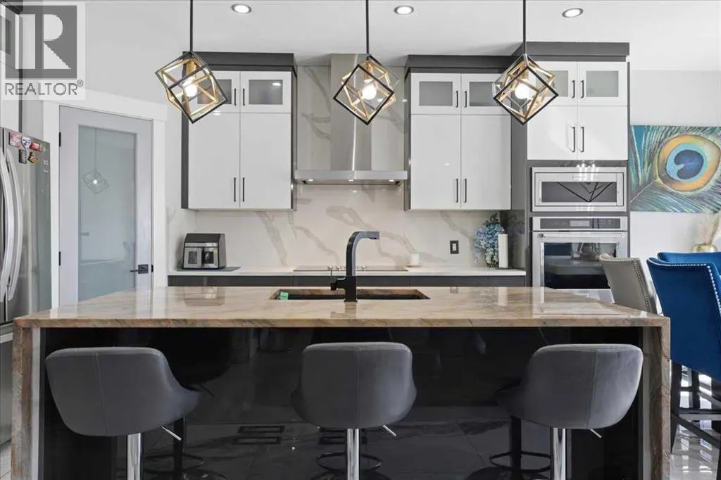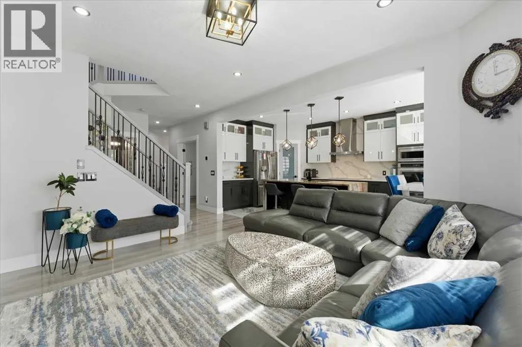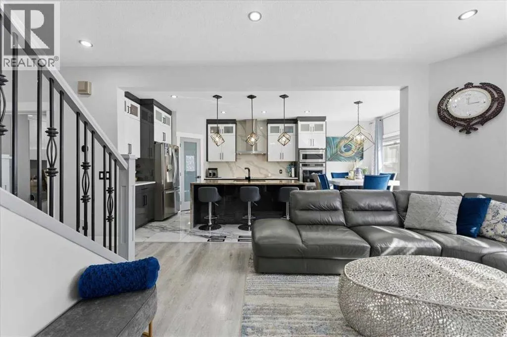 2 BEDROOM ILLEGAL BASEMENT SUITE WITH SEPARATE ENTRANCE & LAUNDRY | OVER 2,200 SQ FT ABOVE GRADE | CORNER LOT | SOUTH BACKYARD | FULLY UPDATED THROUGHOUT. Thoughtful design and extensive updates come together in this beautifully maintained home delivering flexibility for large or multi-generational living. Positioned on a corner lot, added privacy and extra yard space elevate everyday enjoyment while the south-facing backyard draws in sunlight throughout the day. An open-concept main level establishes a natural flow for both daily routines and entertaining, grounded by updated laminate flooring and elevated by designer lighting. Gather comfortably in the inviting living room where a gas fireplace with full-height stone and built-in shelving introduces warmth and practical storage. Culinary creativity unfolds in the stunningly updated kitchen featuring granite countertops, stainless steel appliances, a waterfall-edge island for casual seating, full-height two-toned cabinetry and a pantry that keeps everything organized. Seamless access from the dining area to the rear deck encourages effortless indoor-outdoor living, ideal for barbeques and relaxed evenings. The flexibility carries through with a main floor den that adapts easily to a home office or additional family space, complete with built-ins to keep clutter neatly tucked away, while a stylish 3-piece bathroom with an oversized shower delivers added convenience. Upstairs, French doors reveal a vaulted bonus room that functions equally well as a media area, playroom or potential 4th bedroom. Retreat at the end of the day to the primary sanctuary boasting a walk-in closet and a modern ensuite for ultimate privacy. Two additional spacious and bright bedrooms are complemented by a sleek main bathroom, keeping busy households running smoothly. Downstairs, the self-contained illegal suite expands the homeâs versatility with 2 bedrooms, a full kitchen, a spacious living area and its own laundry, creating separation and for extended family or independent living. The outdoor areas are equally well planned with an expansive rear deck that sets the stage for gatherings, while the low-maintenance yard provides space for kids and pets without added upkeep. A double attached garage brings everyday practicality. Located within walking distance to Saddle Ridge Plaza, nearby parks, schools, transit and scenic pathways around the wetland, this home also maintains convenient access to the Genesis Centre for recreation and community programming. Comfort, versatility and convenience come together in this thoughtfully updated home. (id:27476)