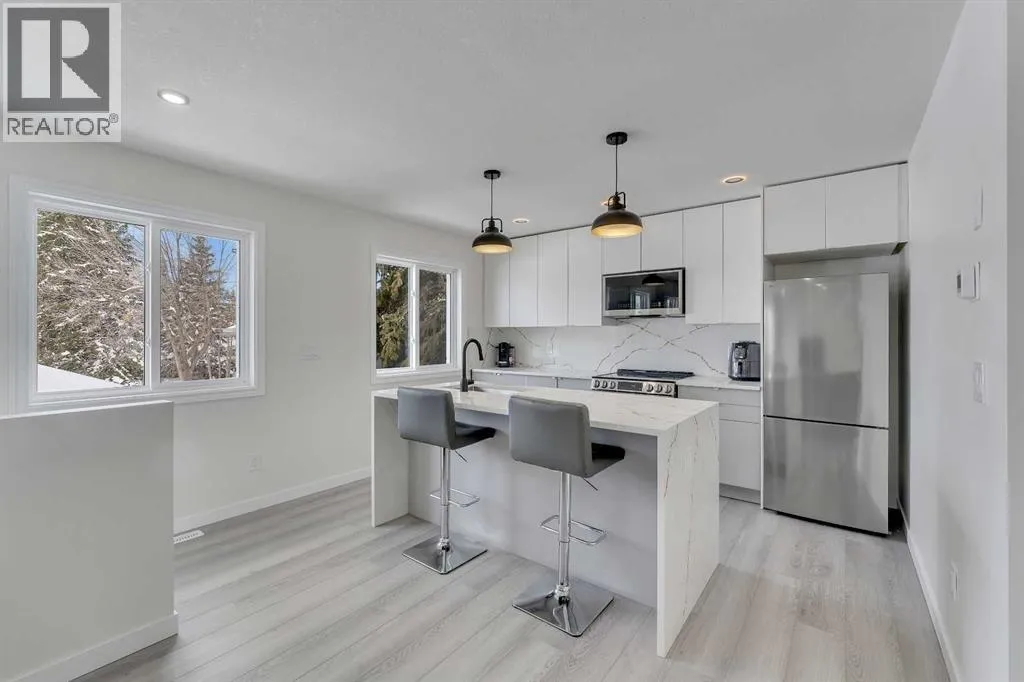 ***RARE BRAND NEW CARRIAGE HOUSE +TRIPLE GARAGE****Welcome to 4824 Claret Street NW, a rare offering in the established community of Charleswood! This fully renovated bungalow pairs timeless curb appeal with a complete, modern style and the added benefit of a new constructed CARRIAGE HOUSE on top of the TRIPLE CAR GARAGE. The main home showcases a classic brick exterior with a charming front archway, while inside, nearly every element has been updated. The bright, open main floor features gleaming laminated flooring, new triple-glazed windows, updated lighting with all electrical outlets/switches, fresh paint, and new interior doors throughout. The kitchen is both stylish and functional, granite/quartz countertops with cooktop element, a stone/tile backsplash, and modern appliances, seamlessly connecting to the living and dining areas. This bungalow offers a total of FIVE bedrooms, with three on the main level and two additional bedrooms with egress windows in the newly developed basement. The home includes three fully renovated bathrooms, designed with clean, contemporary finishes. The lower level, new LVP/carpet flooring, expands your living space with a large family room with lots of potlights, and added flexibility for growing families or multi-generational living. Significant mechanical upgrades provide long-term confidence and comfort, including TWO new furnaces, a new hot water tank, and central AC. The attic has been remediated to be asbestos-free and reinsulated to current code standards .New PVC sewer, water, gas lines and underground power line--adding efficiency and peace of mind. The backyard is where this property truly sets itself apart. A newly built, legal and registered secondary suite finished with durable Hardie Board siding, sits above a brand new triple detached garage, offering ~800 sqft of additional living space! The suite features its own open-concept kitchen, large waterfall island with breakfast bar, bright living and dining area with a bundant lighting, granite countertops & backsplash , two bedrooms, and a full 4-piece bathroom , triple-glazed window . A separate 100-amp electrical panel in the garage supports EV charging, adding future-ready functionality. Outdoor living is equally impressive, with a SOUTHWEST-facing composite deck, RV parking, and a fully fenced yard, All infrastructure for the suite is newly installed, including dedicated sewer, water, gas, and power lines, along with its own furnace system. Located in northwest Calgary, Charleswood is known for its mature tree-lined streets, proximity to Nose Hill Park, multiple green spaces and parks in the vicinity, the University of Calgary, and convenient access to major routes (John Laurie Blvd, Capri Avenue, Charleswood Drive), shopping, and schools. This is a unique opportunity to own a turn-key renovated home with a high-quality legal suite, offering flexibility for extended family, rental income, or long-term investment potential,.Book a showing TODAY! (id:27476)